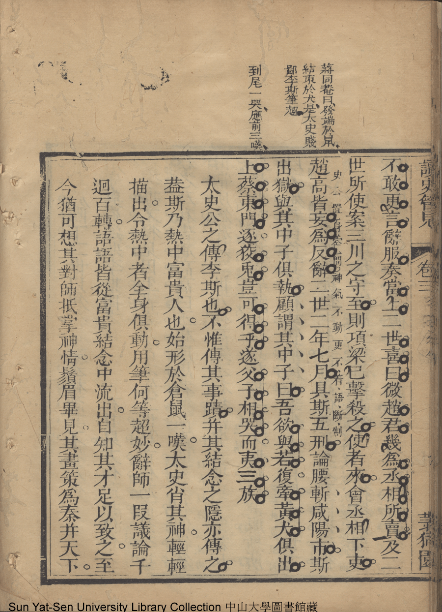 | 李斯列傳 Li Si lie zhuan 文﹕案語 Wen: An yu 李晚芳﹐號菉猗 Li Wanfang, hao: Luyi 讀史管見:三卷(清李晚芳撰) Du shi guan jian: 3 juan (by Li Wanfang, Qing dynasty) , pp. 卷三10a,卷三10b,卷三11a,卷三11b,卷三12a,卷三12b,卷三1a,卷三1b,卷三2a,卷三2b,卷三3a,卷三3b,卷三4a,卷三4b,卷三5a,卷三5b,卷三6a,卷三6b,卷三7a,卷三7b,卷三8a,卷三8b,卷三9a,卷三9b. |