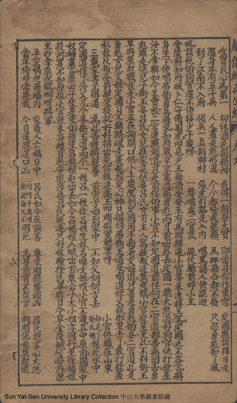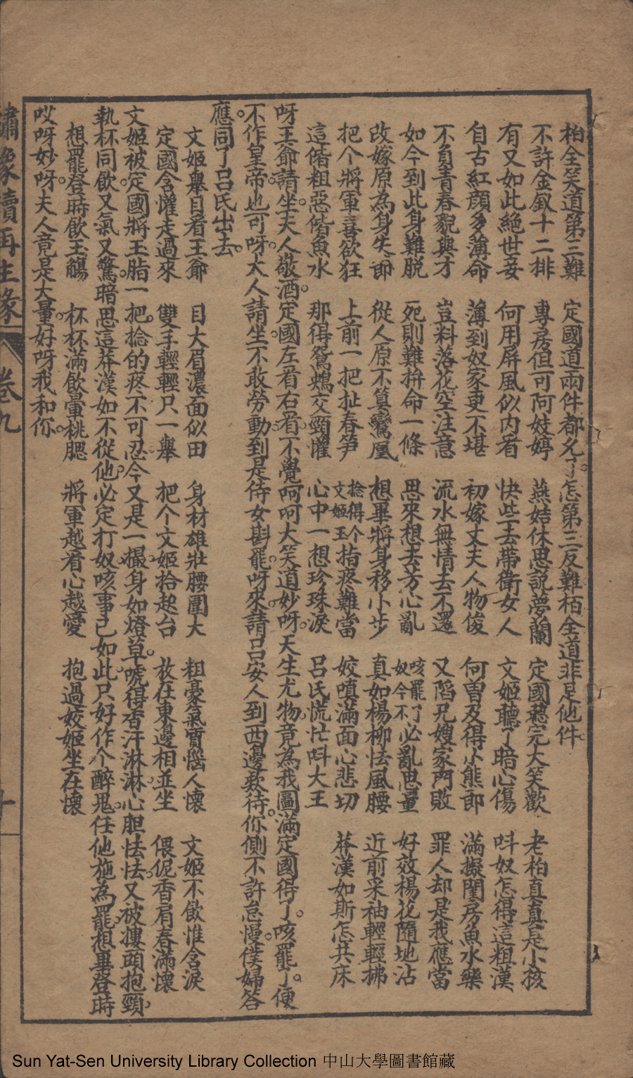 | 第九回 全節義簉室投河 貪財寶虔婆飼虎 Di jiu hui Quan jie yi zao shi tou he Tan cai bao qian po si hu 文﹕彈詞 Wen: Tan ci 侯芝﹐字香葉 Hou Zhi, zi: Xiangye 繪圖續再生緣: 十六卷十六回(清侯芝改訂) Hui tu Xu Zai sheng yuan: 16 juan 16 hui (by Hou Zhi, Qing Dynasty) , pp. 卷九10a,卷九10b,卷九11a,卷九11b,卷九12a,卷九12b,卷九13a,卷九13b,卷九1a,卷九1b,卷九2a,卷九2b,卷九3a,卷九3b,卷九4a,卷九4b,卷九5a,卷九5b,卷九6a,卷九6b,卷九7a,卷九7b,卷九8a,卷九8b,卷九9a,卷九9b. |