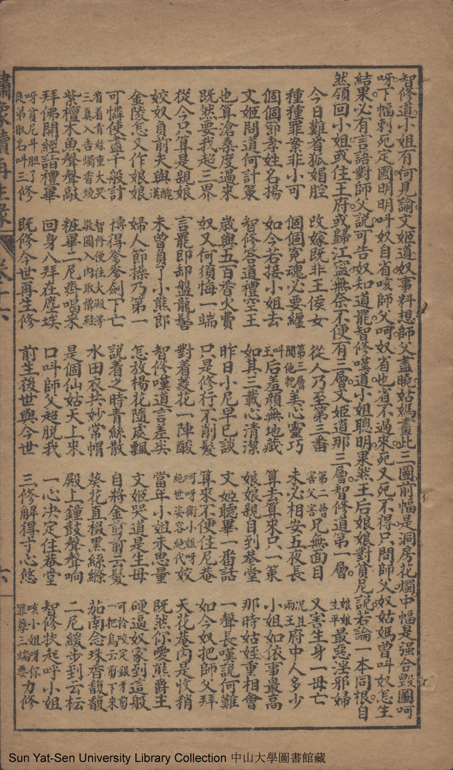 | 第十六回 斬情關一心清淨界 慶南宮重描百美圖 Di shi liu hui Zhan qing guan yi xin qing jing jie Qing nan gong chong miao bai mei tu 文﹕彈詞 Wen: Tan ci 侯芝﹐字香葉 Hou Zhi, zi: Xiangye 繪圖續再生緣: 十六卷十六回(清侯芝改訂) Hui tu Xu Zai sheng yuan: 16 juan 16 hui (by Hou Zhi, Qing Dynasty) , pp. 卷十六10a,卷十六10b,卷十六11a,卷十六11b,卷十六12a,卷十六12b,卷十六13a,卷十六13b,卷十六14a,卷十六14b,卷十六15a,卷十六15b,卷十六1a,卷十六1b,卷十六2a,卷十六2b,卷十六3a,卷十六3b,卷十六4a,卷十六4b,卷十六5a,卷十六5b,卷十六6a,卷十六6b,卷十六7a,卷十六7b,卷十六8a,卷十六8b,卷十六9a,卷十六9b. |