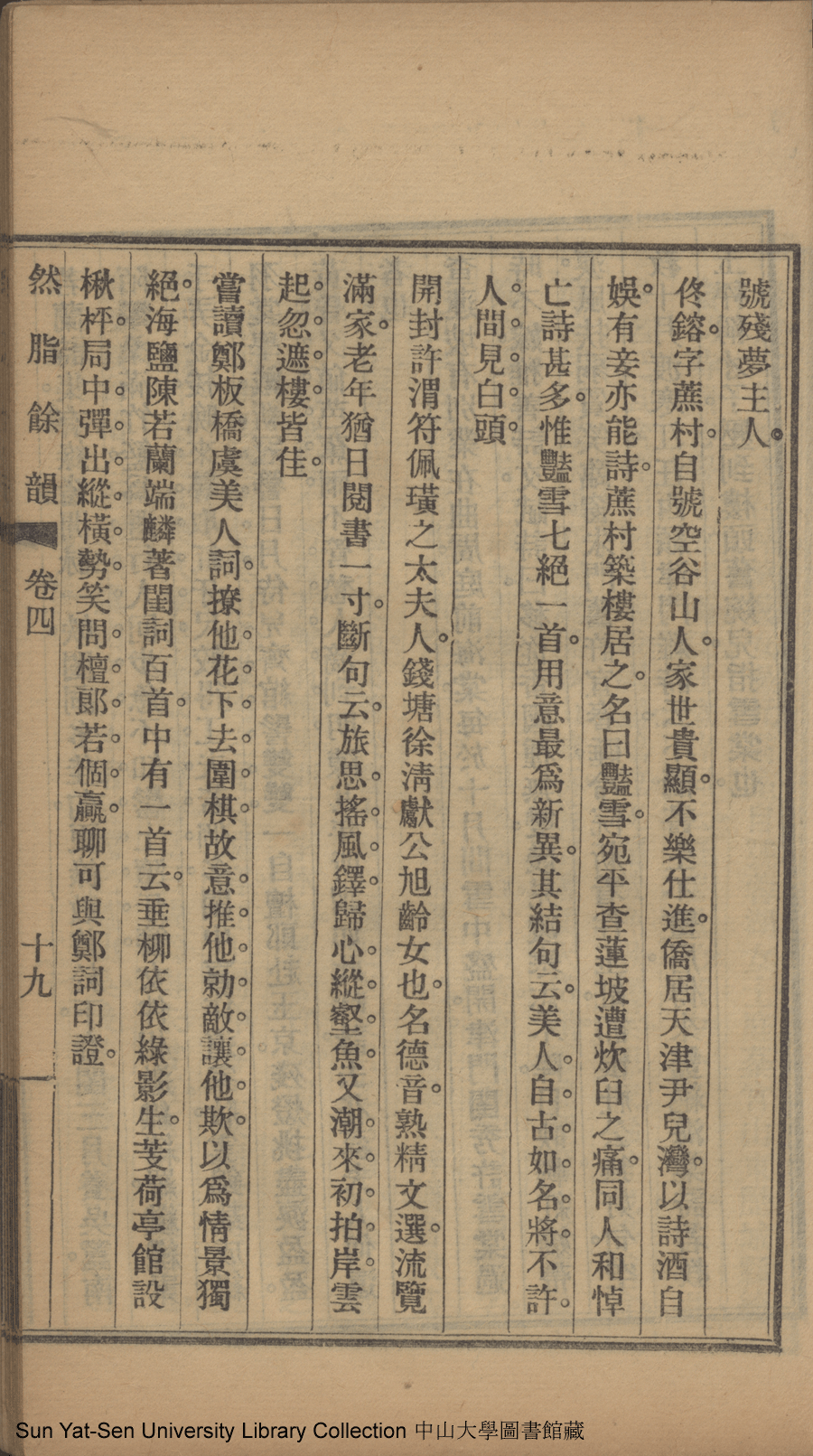 然脂餘韻: 六卷(清王蘊章撰) Ran zhi yu yun: 6 juan (by Wang Yunzhang, Qing dynasty) , pp. 卷四19a.