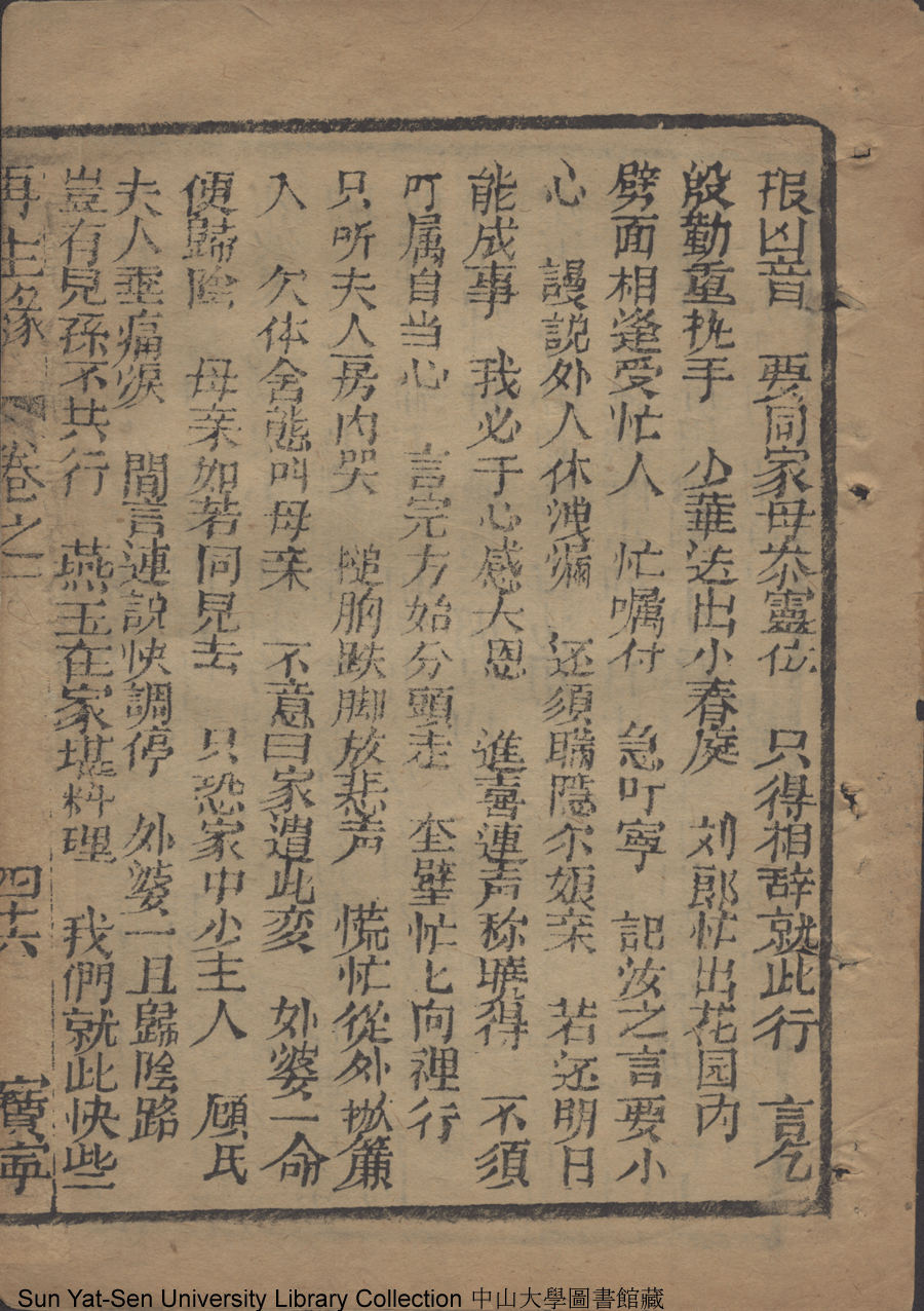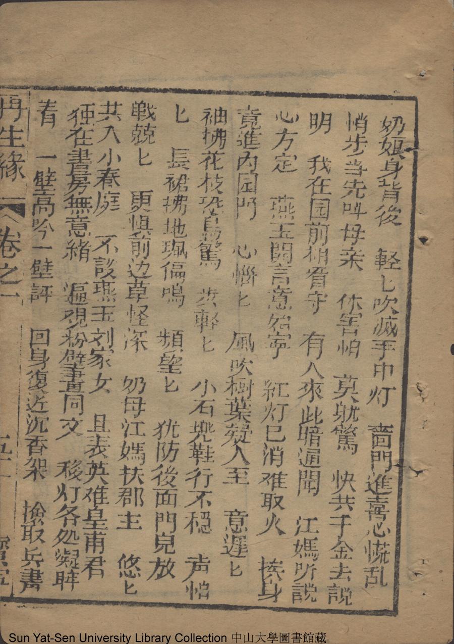 | 第三回 為求婚挾嫌構禍 Di san hui Wei qiu hun xie xian gou huo 文﹕彈詞 Wen: Tan ci 侯芝﹐字香葉 Hou Zhi, zi: Xiangye 再生緣全傳: 二十卷八十回(清侯芝改訂) Zai sheng yuan quan zhuan: 20 juan 80 hui (by Hou Zhi, Qing Dynasty) , pp. 卷一37a,卷一37b,卷一38a,卷一38b,卷一39a,卷一39b,卷一40a,卷一40b,卷一41a,卷一41b,卷一42a,卷一42b,卷一43a,卷一43b,卷一44a,卷一44b,卷一45a,卷一45b,卷一46a,卷一46b,卷一47a,卷一47b,卷一48a,卷一48b,卷一49a,卷一49b,卷一50a,卷一50b,卷一51a,卷一51b. |
