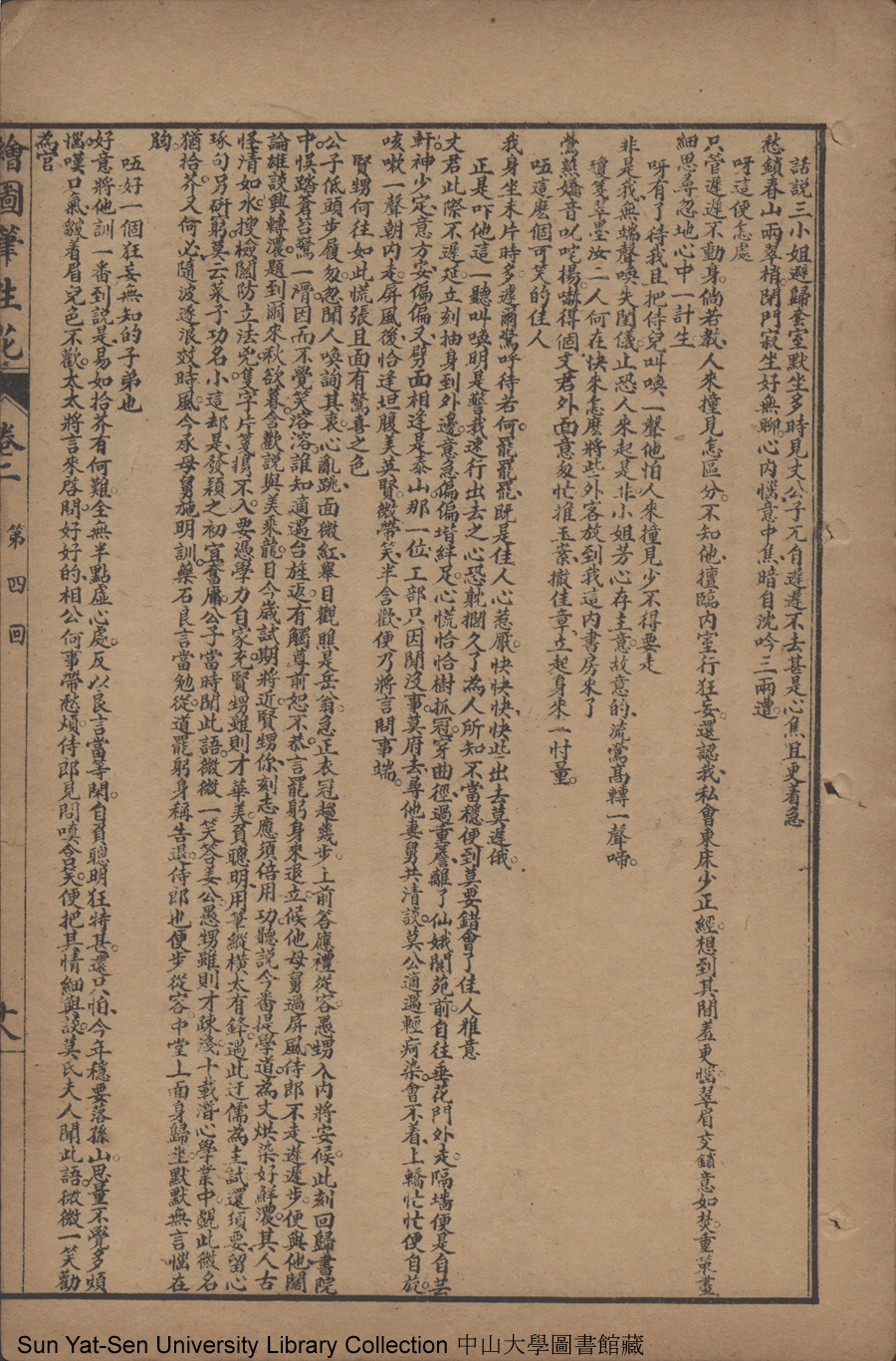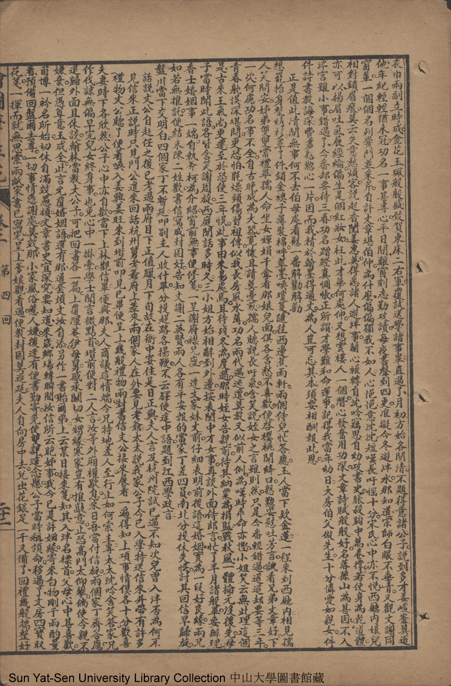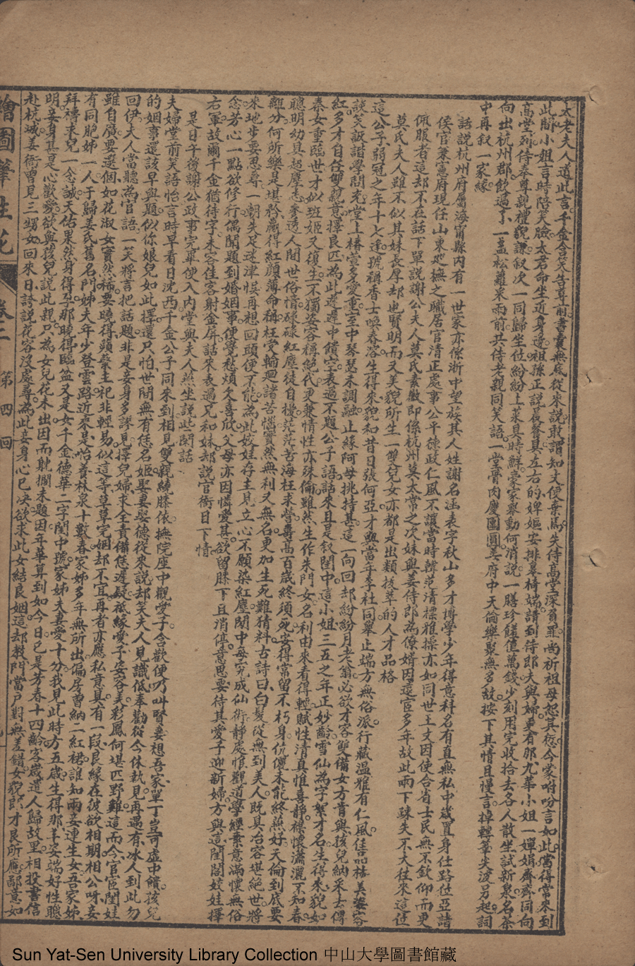 | 第四回 肆悖逆醉鬧高堂 涉嫌疑私窺月窟 謝公子冒昧求親 姜侍郎殷勤作伐 Di si hui Si bei ni zui nao gao tang She xian yi si kui yue ku Xie gongzi mao mei qiu qin Jiang shi lang yin qin zuo fa 文﹕彈詞 Wen: Tan ci 邱心如 Qiu Xinru 繪圖筆生花: 十六卷三十二回(清邱心如撰) Hui tu Bi sheng hua: 16 juan 32 hui (by Qiu Xinru, Qing Dynasty) , pp. 卷二13a,卷二13b,卷二14a,卷二14b,卷二15a,卷二15b,卷二16a,卷二16b,卷二17a,卷二17b,卷二18a,卷二18b,卷二19a,卷二19b,卷二20a,卷二20b,卷二21a,卷二21b,卷二22a,卷二22b. |