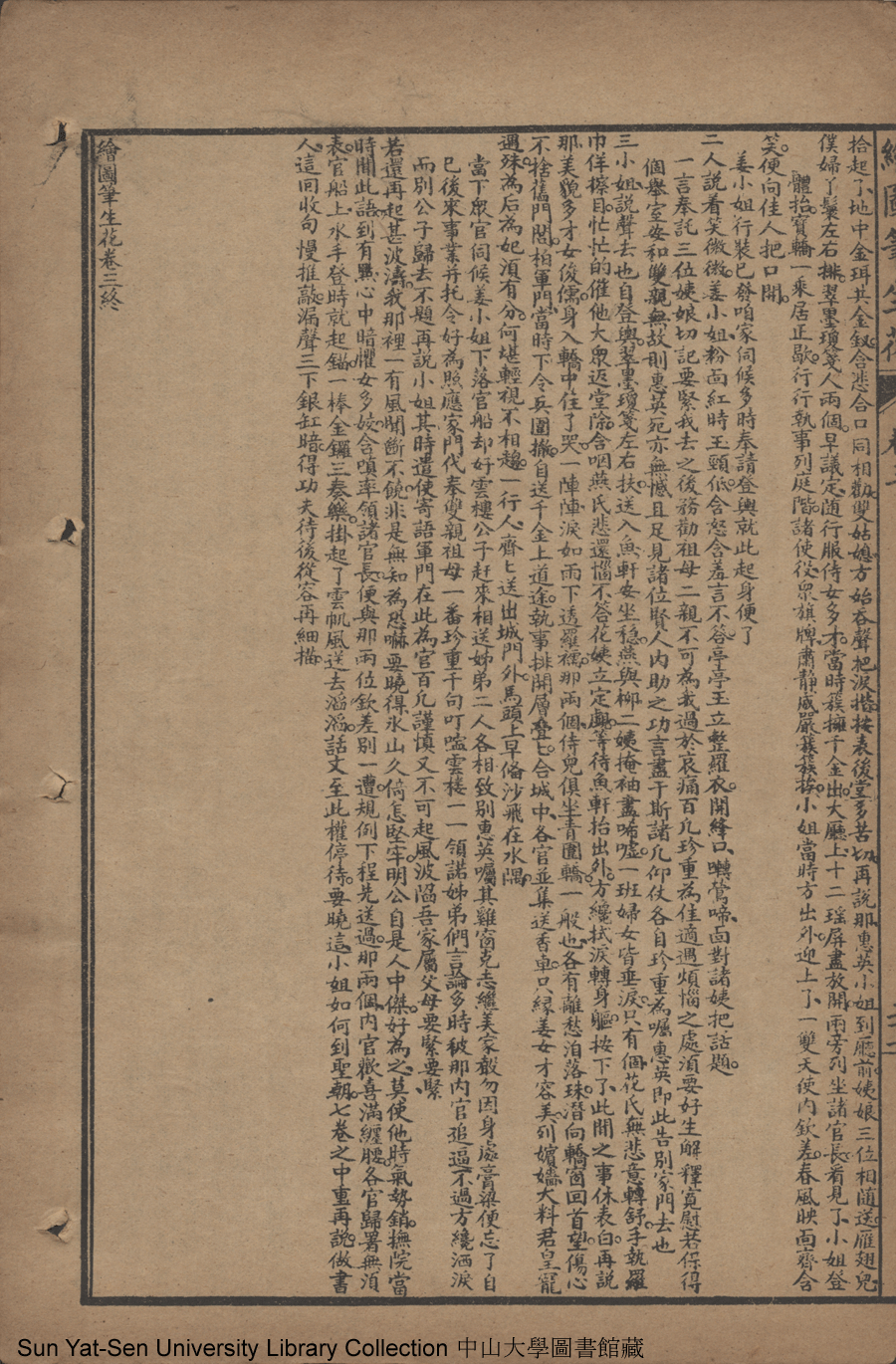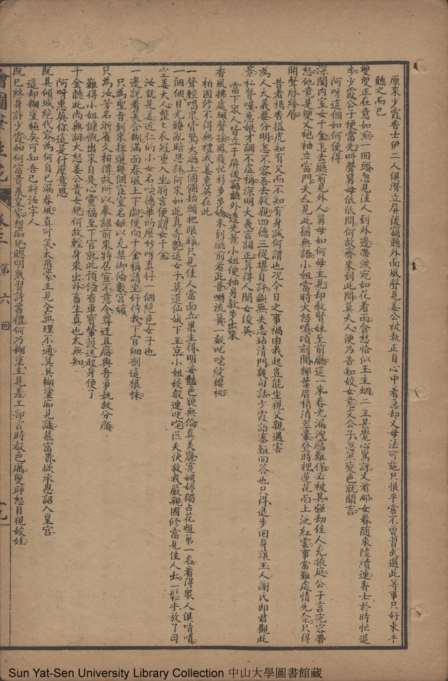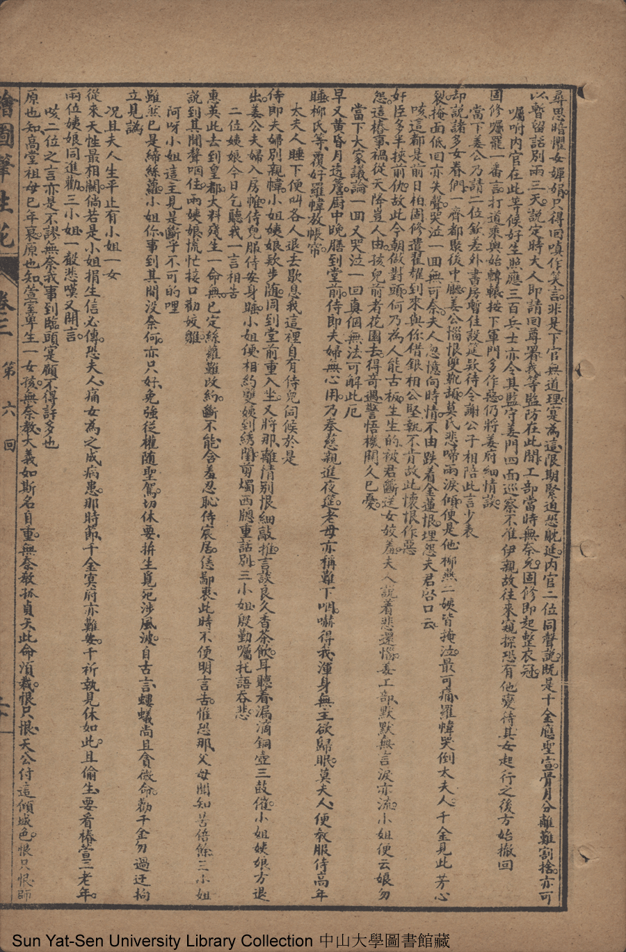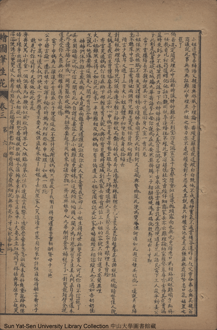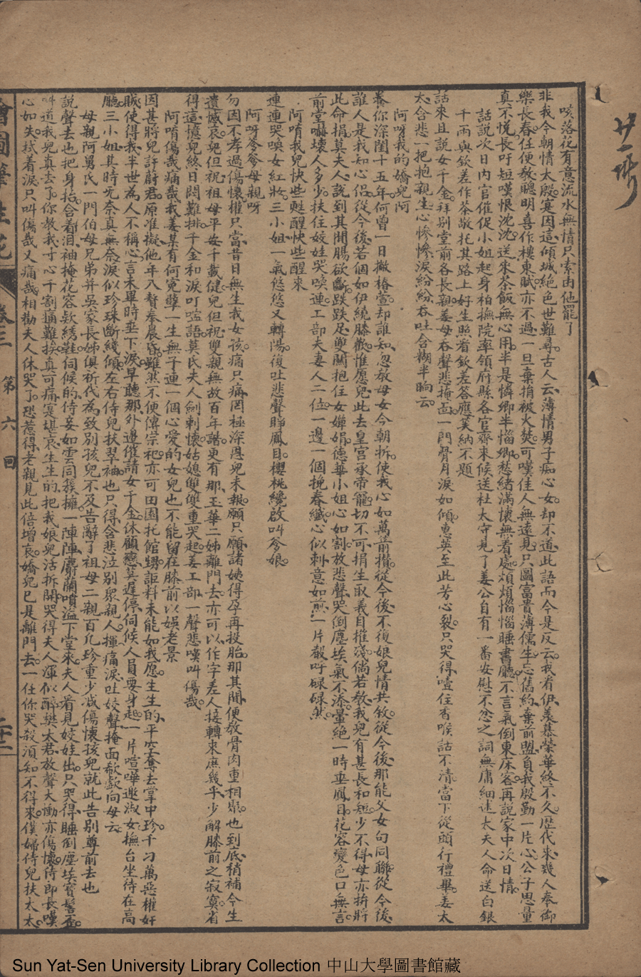 | 第六回 矢冰心依然復合 懷毒意另作侵漁 明大義佳人應詔 重私情才子貽書 Di liu hui Shi bing xin yi ran fu he Huai du yi ling zuo qin yu Ming da yi jia ren ying zhao Zhong si qing cai zi yi shu 文﹕彈詞 Wen: Tan ci 邱心如 Qiu Xinru 繪圖筆生花: 十六卷三十二回(清邱心如撰) Hui tu Bi sheng hua: 16 juan 32 hui (by Qiu Xinru, Qing Dynasty) , pp. 卷三11b,卷三12a,卷三12b,卷三13a,卷三13b,卷三14a,卷三14b,卷三15a,卷三15b,卷三16a,卷三16b,卷三17a,卷三17b,卷三18a,卷三18b,卷三19a,卷三19b,卷三20a,卷三20b,卷三21a,卷三21b,卷三22a,卷三22b. |