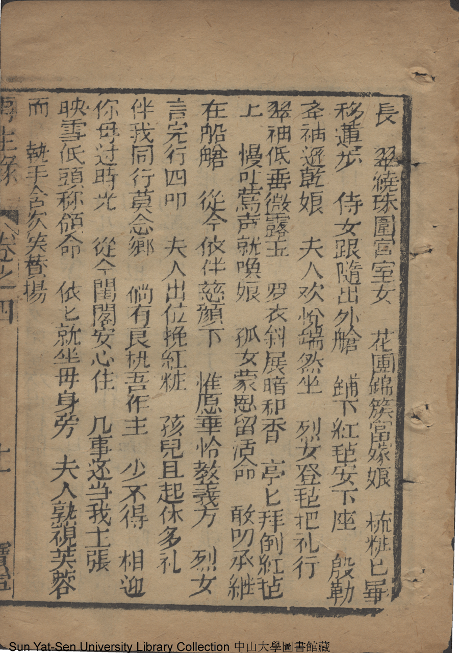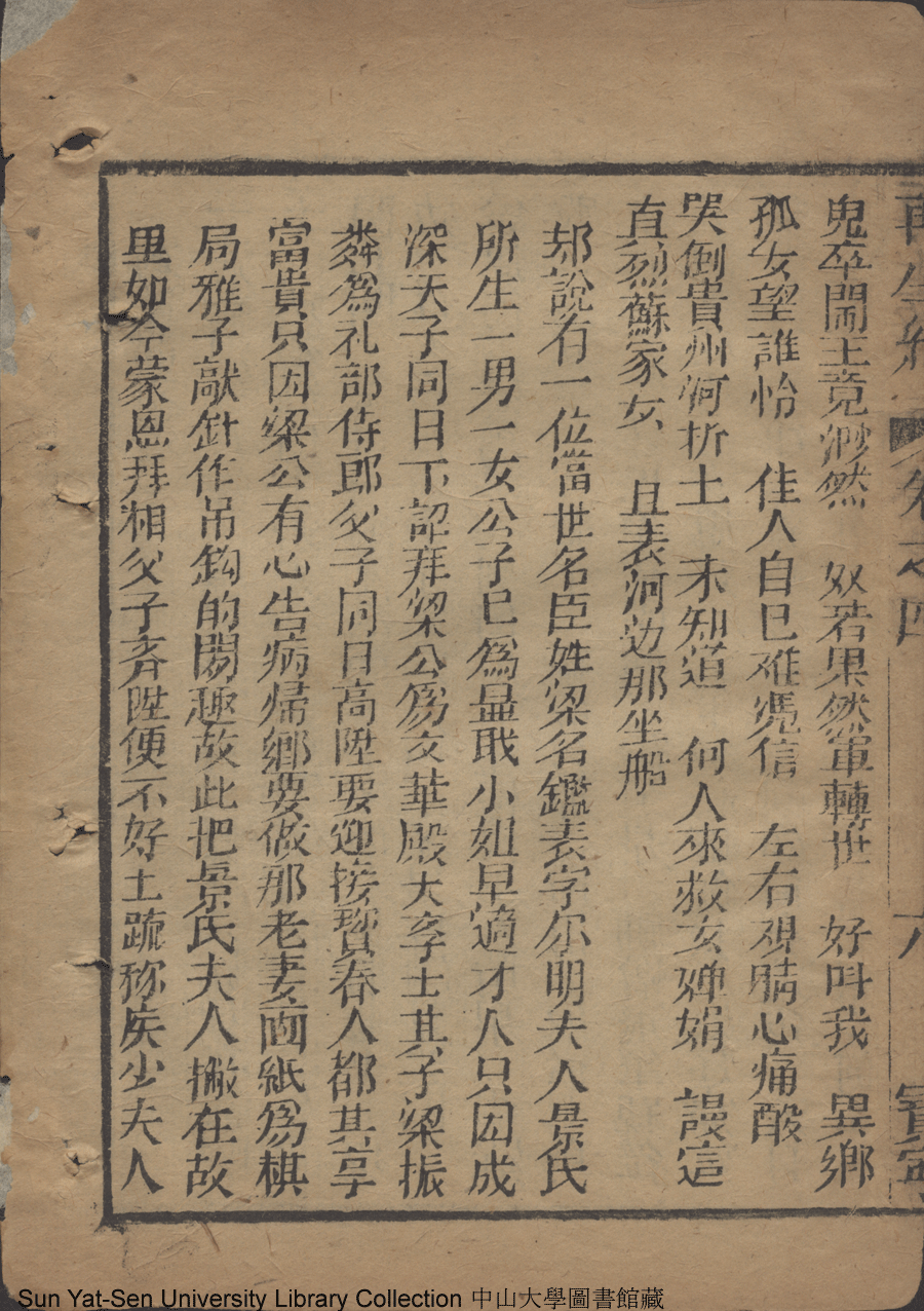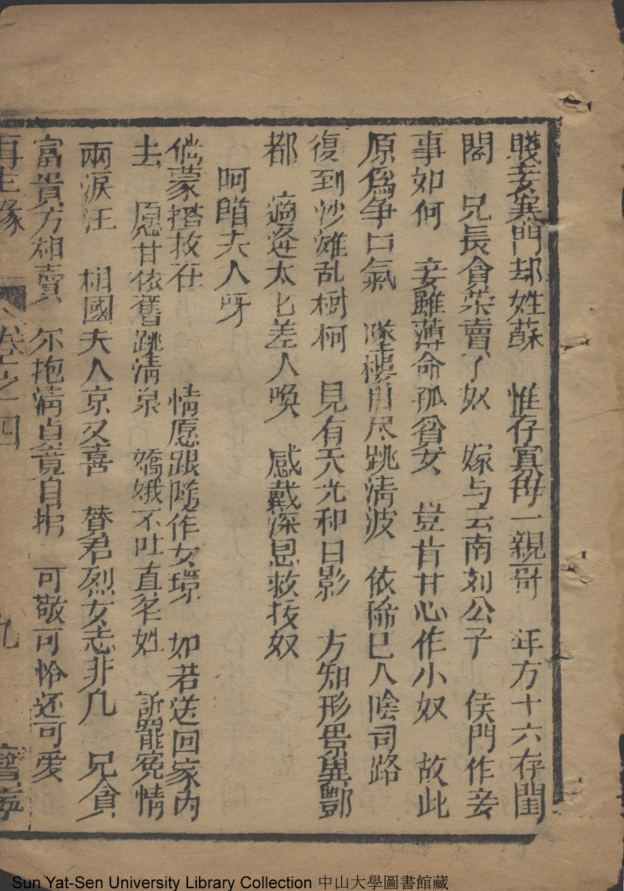 | 第十三回 官船內情收義女 Di shi san hui Guan chuan nei qing shou yi nü 文﹕彈詞 Wen: Tan ci 侯芝﹐字香葉 Hou Zhi, zi: Xiangye 再生緣全傳: 二十卷八十回(清侯芝改訂) Zai sheng yuan quan zhuan: 20 juan 80 hui (by Hou Zhi, Qing Dynasty) , pp. 卷四10a,卷四10b,卷四11a,卷四11b,卷四12a,卷四12b,卷四13a,卷四13b,卷四14a,卷四14b,卷四1a,卷四1b,卷四2a,卷四2b,卷四3a,卷四3b,卷四4a,卷四4b,卷四5a,卷四5b,卷四6a,卷四6b,卷四7a,卷四7b,卷四8a,卷四8b,卷四9a,卷四9b. |