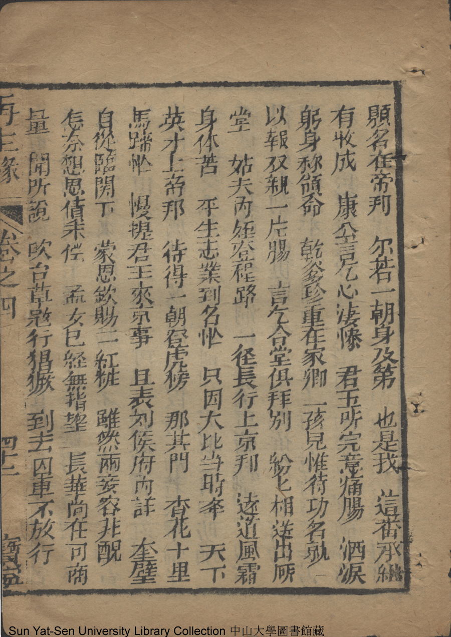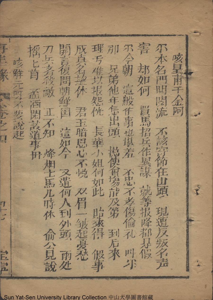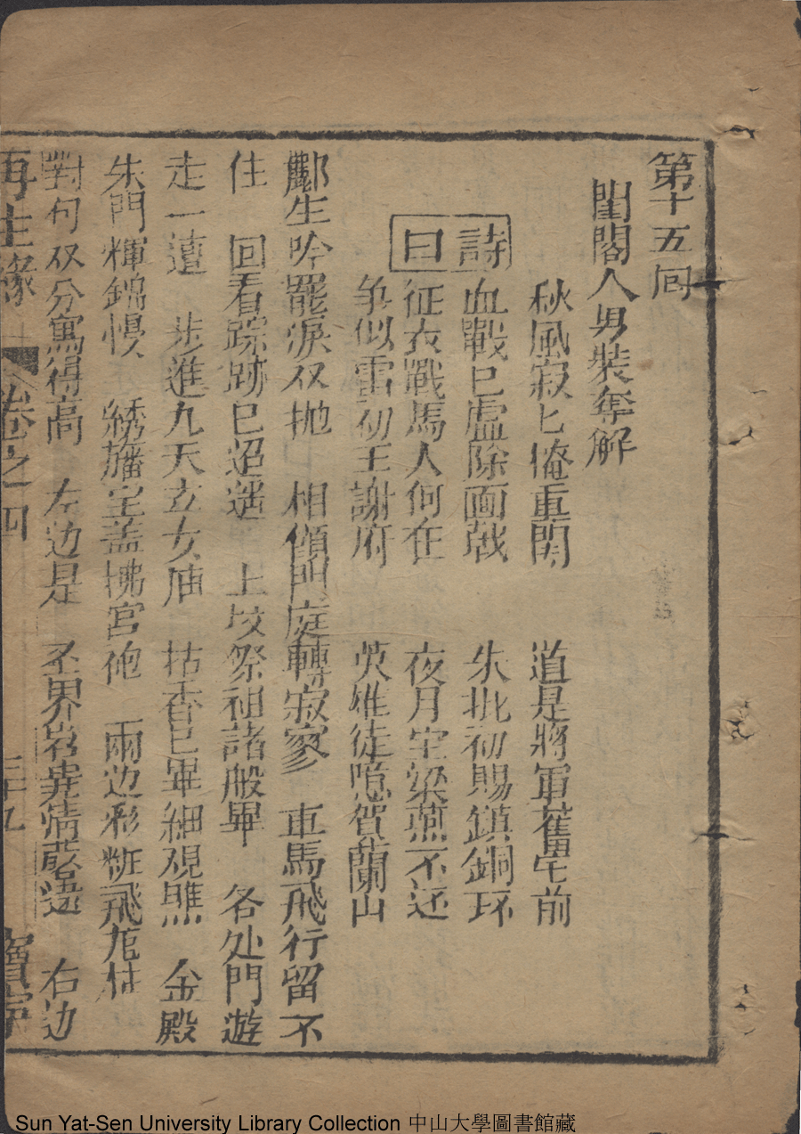 | 第十五回 閨閣人男裝奪解 Di shi wu hui Gui ge ren nan zhuang duo jie 文﹕彈詞 Wen: Tan ci 侯芝﹐字香葉 Hou Zhi, zi: Xiangye 再生緣全傳: 二十卷八十回(清侯芝改訂) Zai sheng yuan quan zhuan: 20 juan 80 hui (by Hou Zhi, Qing Dynasty) , pp. 卷四39a,卷四39b,卷四40a,卷四40b,卷四41a,卷四41b,卷四42a,卷四42b,卷四43a,卷四43b,卷四44a,卷四44b,卷四45a,卷四45b,卷四46a,卷四46b,卷四47a,卷四47b,卷四48a,卷四48b,卷四49a,卷四49b,卷四50a,卷四50b,卷四51a,卷四51b,卷四52a,卷四52b,卷四53a,卷四53b,卷四54a,卷四54b,卷四55a,卷四55b,卷四56a,卷四56b,卷四57a,卷四57b,卷四58a,卷四58b,卷四59a,卷四59b,卷四60a,卷四60b,卷四61a,卷四61b,卷四62a,卷四62b,卷四63a,卷四63b,卷四64a,卷四64b,卷四65a,卷四65b,卷四66a,卷四66b,卷四67a,卷四67b. |