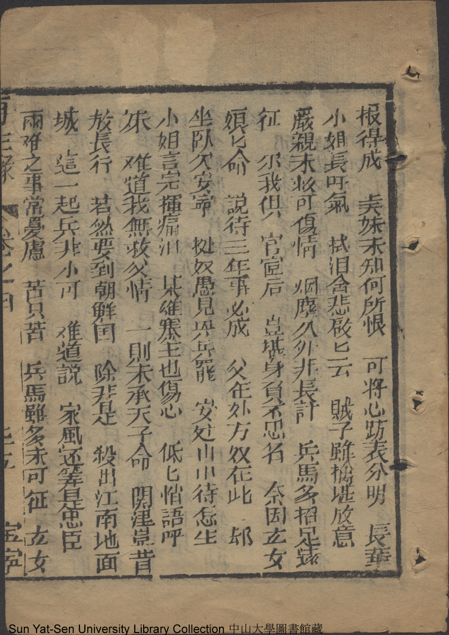 | 第十六回 貔虎師陣敗遭擒 Di shi liu hui Pi hu shi zhen bai zao qin 文﹕彈詞 Wen: Tan ci 侯芝﹐字香葉 Hou Zhi, zi: Xiangye 再生緣全傳: 二十卷八十回(清侯芝改訂) Zai sheng yuan quan zhuan: 20 juan 80 hui (by Hou Zhi, Qing Dynasty) , pp. 卷四68a,卷四68b,卷四69a,卷四69b,卷四70a,卷四70b,卷四71a,卷四71b,卷四72a,卷四72b,卷四73a,卷四73b,卷四74a,卷四74b,卷四75a,卷四75b,卷四76a,卷四76b,卷四77a,卷四77b,卷四78a,卷四78b,卷四79a,卷四79b,卷四80a,卷四80b,卷四81a,卷四81b,卷四82a,卷四82b. |