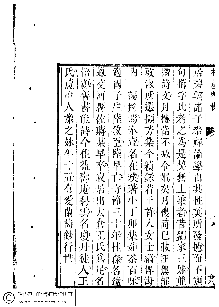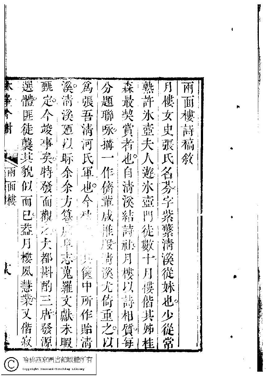 | 兩面樓詩稿序 Liang mian lou shi gao xu 文﹕序 Wen: Xu 任兆麟﹐號林屋山人﹐字文田﹐又名心齋居士 Ren Zhaolin, hao: Linwushanren, zi: Wentian 吳中女士詩鈔(清任兆麟輯,張滋蘭選) 兩面樓詩稿﹕一卷 Wu zhong nü shi shi chao (edited by Ren Zhaolin, Qing dynasty) Liang mian lou shi gao: 1 juan, pp. 兩面樓序.19a,兩面樓序.19b,兩面樓序.20a,兩面樓序.20b. |