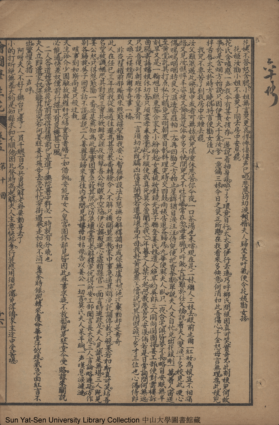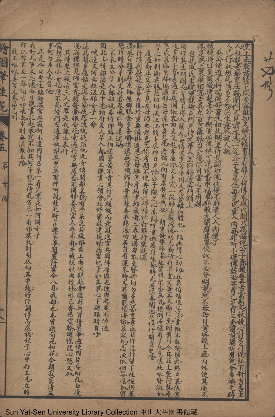 | 第十回 小解元避嫌歛跡 老工部使酒蒙冤 運仙機乘空妙舞 逞素志任性胡言 Di shi hui Xiao xie yuan bi xian lian ji Lao gong bu shi jiu meng yuan Yun xian ji cheng kong miao wu Cheng su zhi ren xing hu yan 文﹕彈詞 Wen: Tan ci 邱心如 Qiu Xinru 繪圖筆生花: 十六卷三十二回(清邱心如撰) Hui tu Bi sheng hua: 16 juan 32 hui (by Qiu Xinru, Qing Dynasty) , pp. 卷五12a,卷五12b,卷五13a,卷五13b,卷五14a,卷五14b,卷五15a,卷五15b,卷五16a,卷五16b,卷五17a,卷五17b,卷五18a,卷五18b,卷五19a,卷五19b,卷五20a,卷五20b,卷五21a,卷五21b,卷五22a,卷五22b,卷五23a,卷五23b. |