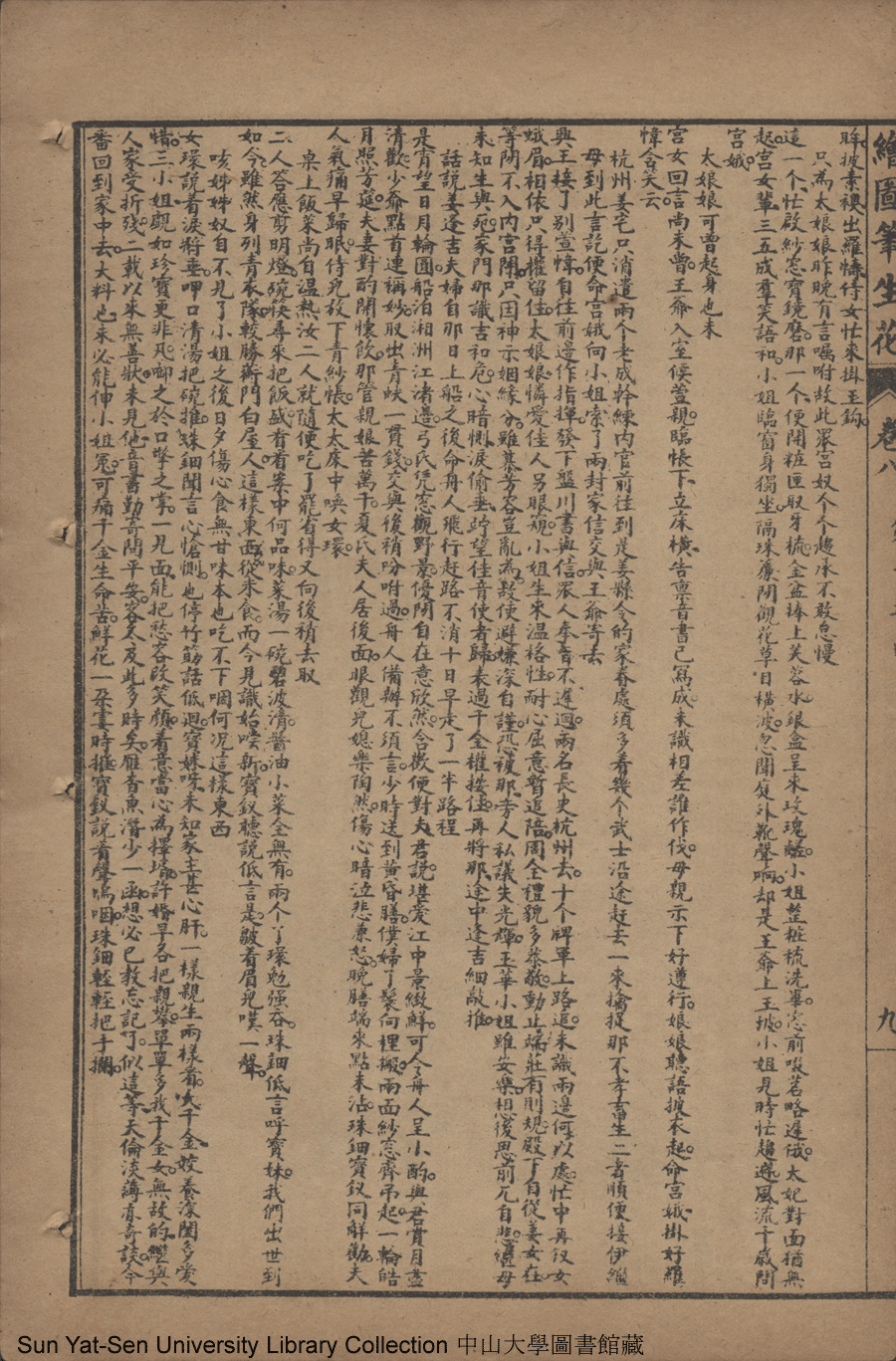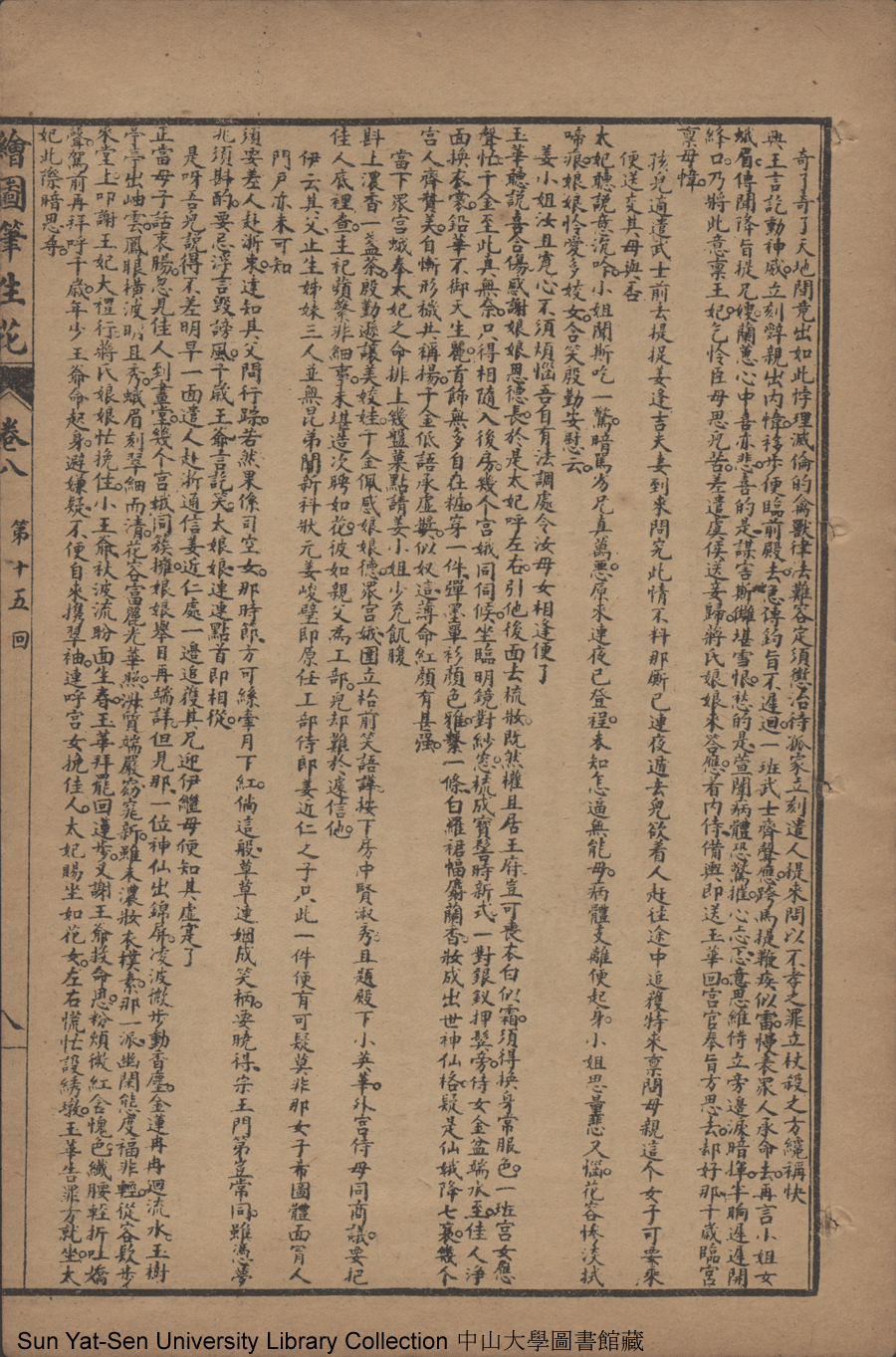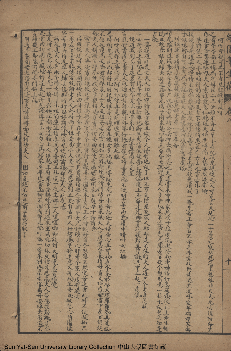 | 第十五回 訝私胎防傷女操 捐老命端為兒曹 逞毒謀禍生雁序 徵異夢巧合鸞交 Di shi wu hui Ya si tai fang shang nü cao Juan lao ming duan wei er cao Cheng du mou huo sheng yan xu Zheng yi meng qiao he luan jiao 文﹕彈詞 Wen: Tan ci 邱心如 Qiu Xinru 繪圖筆生花: 十六卷三十二回(清邱心如撰) Hui tu Bi sheng hua: 16 juan 32 hui (by Qiu Xinru, Qing Dynasty) , pp. 卷八10a,卷八10b,卷八11a,卷八11b,卷八12a,卷八12b,卷八1a,卷八1b,卷八2a,卷八2b,卷八3a,卷八3b,卷八4a,卷八4b,卷八5a,卷八5b,卷八6a,卷八6b,卷八7a,卷八7b,卷八8a,卷八8b,卷八9a,卷八9b. |