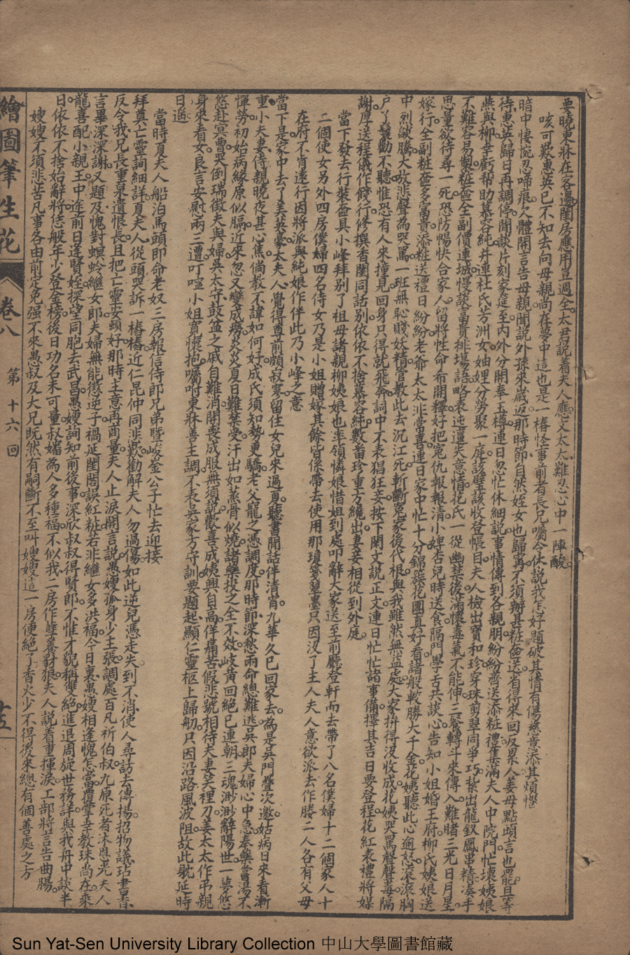 | 第十六回 娶賢妃欣聯美眷 婚妬女悔遇凶魔 老司徒哀詞誌憾 小學士幻夢知戈 Di shi liu hui Qu xian fei xin lian mei juan Hun du nü hui yu xiong mo Lao si tu ai ci zhi han Xiao xue shi huan meng zhi ge 文﹕彈詞 Wen: Tan ci 邱心如 Qiu Xinru 繪圖筆生花: 十六卷三十二回(清邱心如撰) Hui tu Bi sheng hua: 16 juan 32 hui (by Qiu Xinru, Qing Dynasty) , pp. 卷八12b,卷八13a,卷八13b,卷八14a,卷八14b,卷八15a,卷八15b,卷八16a,卷八16b,卷八17a,卷八17b,卷八18a,卷八18b,卷八19a,卷八19b,卷八20a,卷八20b,卷八21a,卷八21b,卷八22a,卷八22b,卷八23a,卷八23b,卷八24a,卷八24b,卷八25a,卷八25b. |