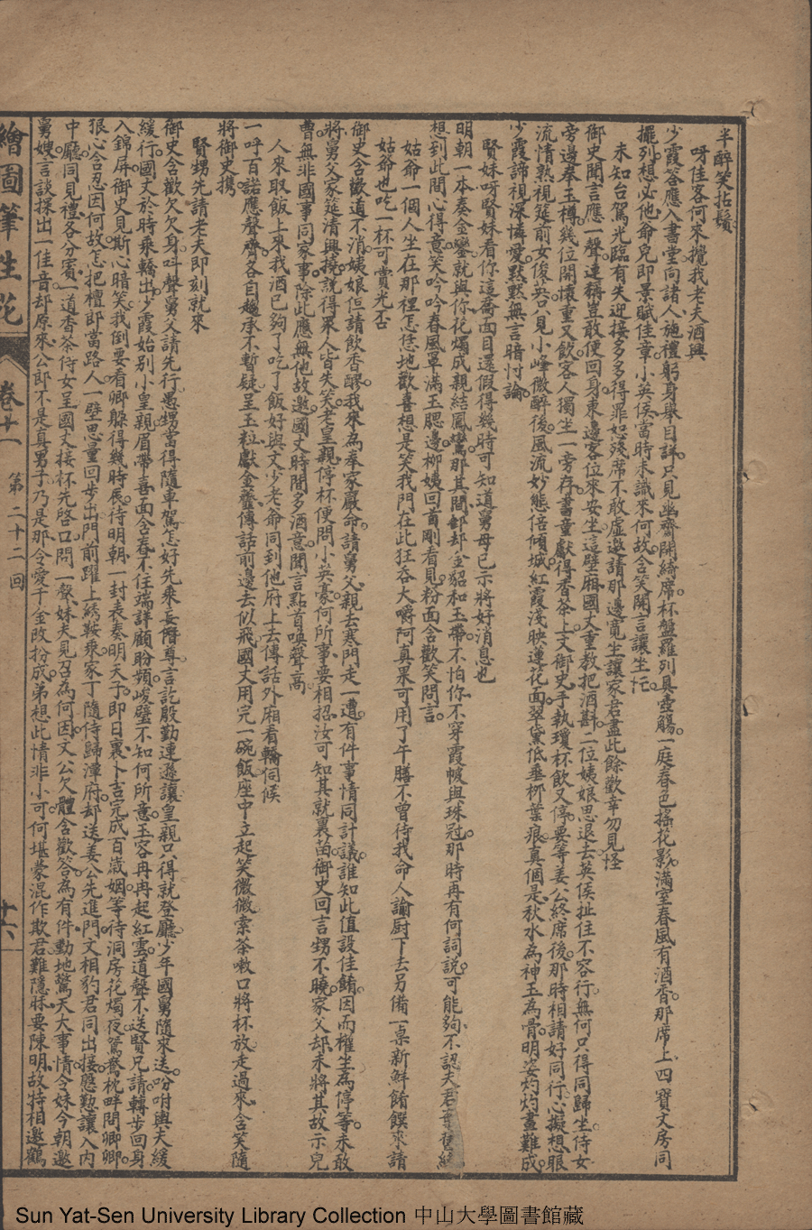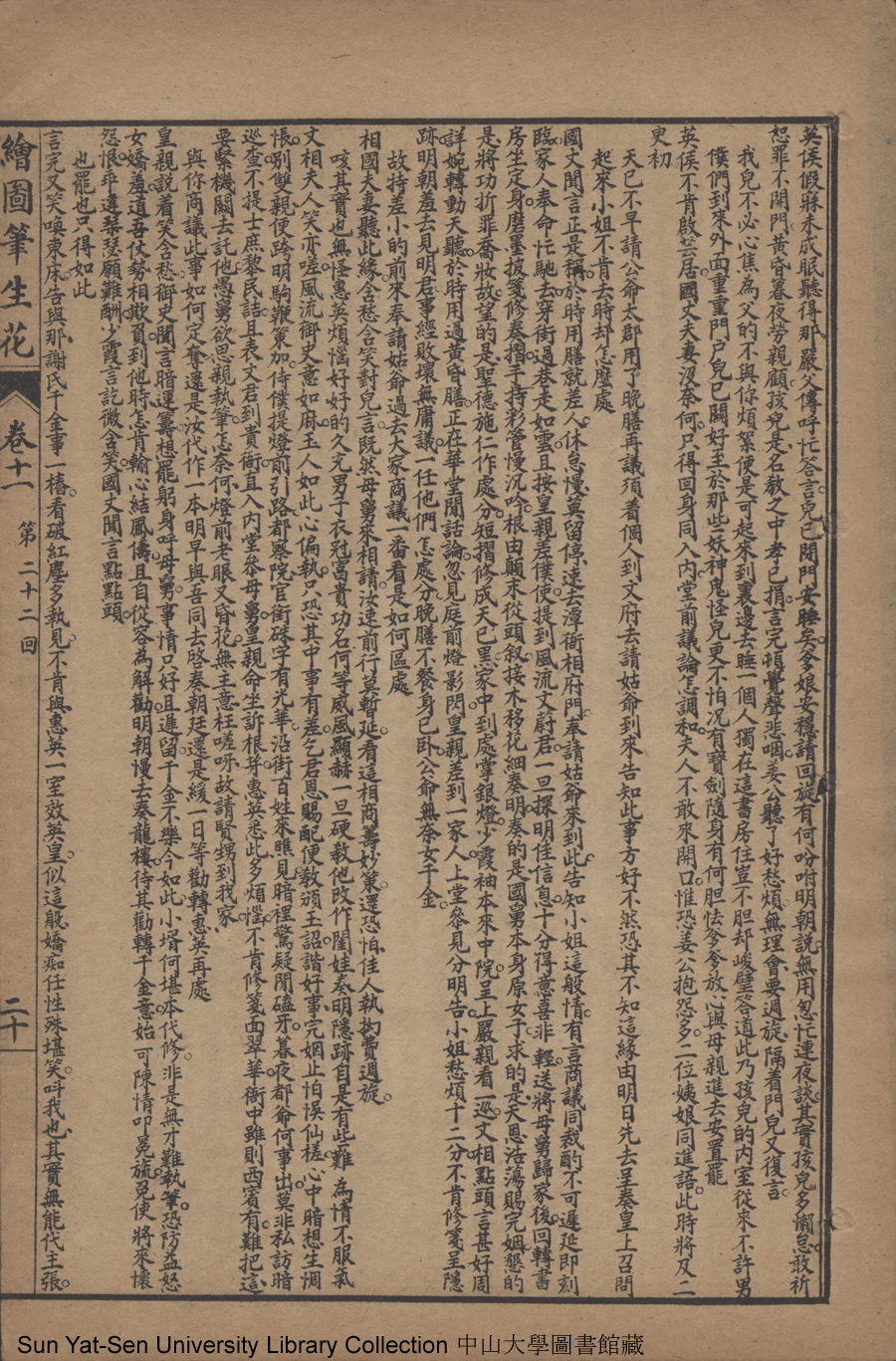 | 第二十二回 逞風情蓋增醜語 明往跡頓釋憂疑 習清修豈甘再醮 邀盛典依舊封侯 Di er shi er hui Cheng feng qing yi zeng chou yu Ming wang ji dun shi you yi Xi qing xiu qi gan zai jiao Yao sheng dian yi jiu feng hou 文﹕彈詞 Wen: Tan ci 邱心如 Qiu Xinru 繪圖筆生花: 十六卷三十二回(清邱心如撰) Hui tu Bi sheng hua: 16 juan 32 hui (by Qiu Xinru, Qing Dynasty) , pp. 卷十一10b,卷十一11a,卷十一11b,卷十一12a,卷十一12b,卷十一13a,卷十一13b,卷十一14a,卷十一14b,卷十一15a,卷十一15b,卷十一16a,卷十一16b,卷十一17a,卷十一17b,卷十一18a,卷十一18b,卷十一19a,卷十一19b,卷十一20a,卷十一20b,卷十一21a,卷十一21b,卷十一22a,卷十一22b,卷十一23a,卷十一23b. |