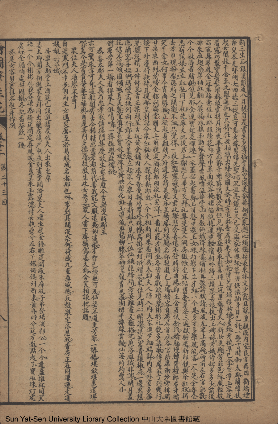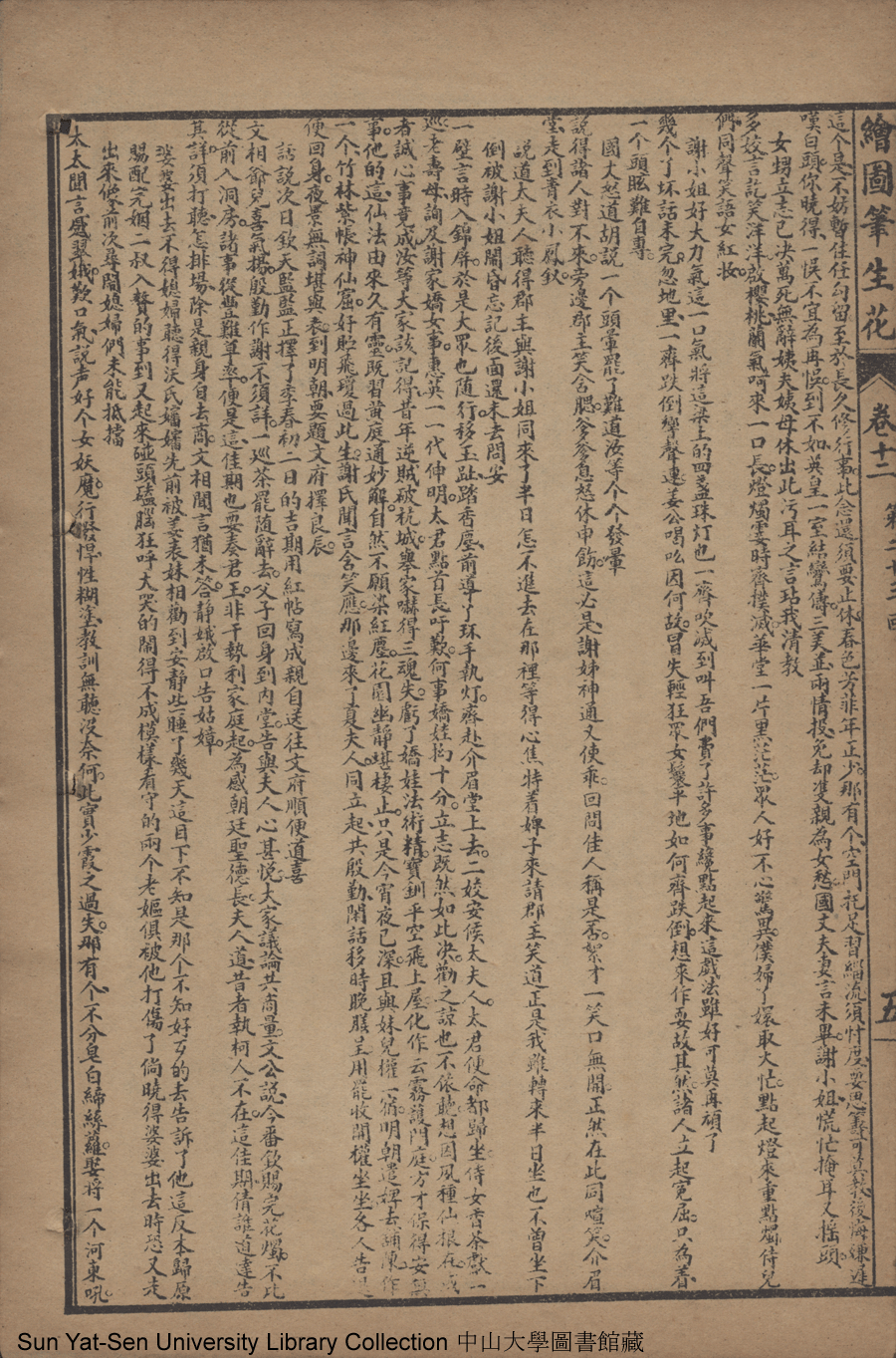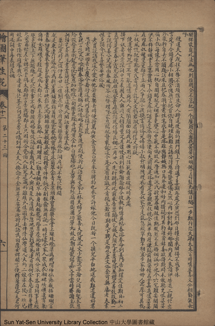| 第二十三回 參聖母重邀雨澤 勸佳人共返雲軿 續前盟才郎遂願 懷往事淑女寒心 Di er shi san hui Can sheng mu chong yao yu ze Quan jia ren gong fan yun ping Xu qian meng cai lang sui yuan Huai wang shi shu nü han xin 文﹕彈詞 Wen: Tan ci 邱心如 Qiu Xinru 繪圖筆生花: 十六卷三十二回(清邱心如撰) Hui tu Bi sheng hua: 16 juan 32 hui (by Qiu Xinru, Qing Dynasty) , pp. 卷十二10a,卷十二10b,卷十二11a,卷十二11b,卷十二12a,卷十二1a,卷十二1b,卷十二2a,卷十二2b,卷十二3a,卷十二3b,卷十二4a,卷十二4b,卷十二5a,卷十二5b,卷十二6a,卷十二6b,卷十二7a,卷十二7b,卷十二8a,卷十二8b,卷十二9a,卷十二9b. |