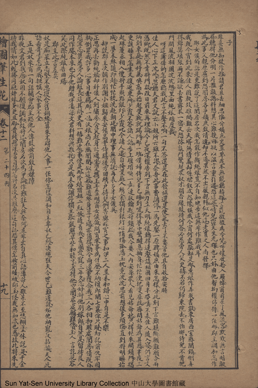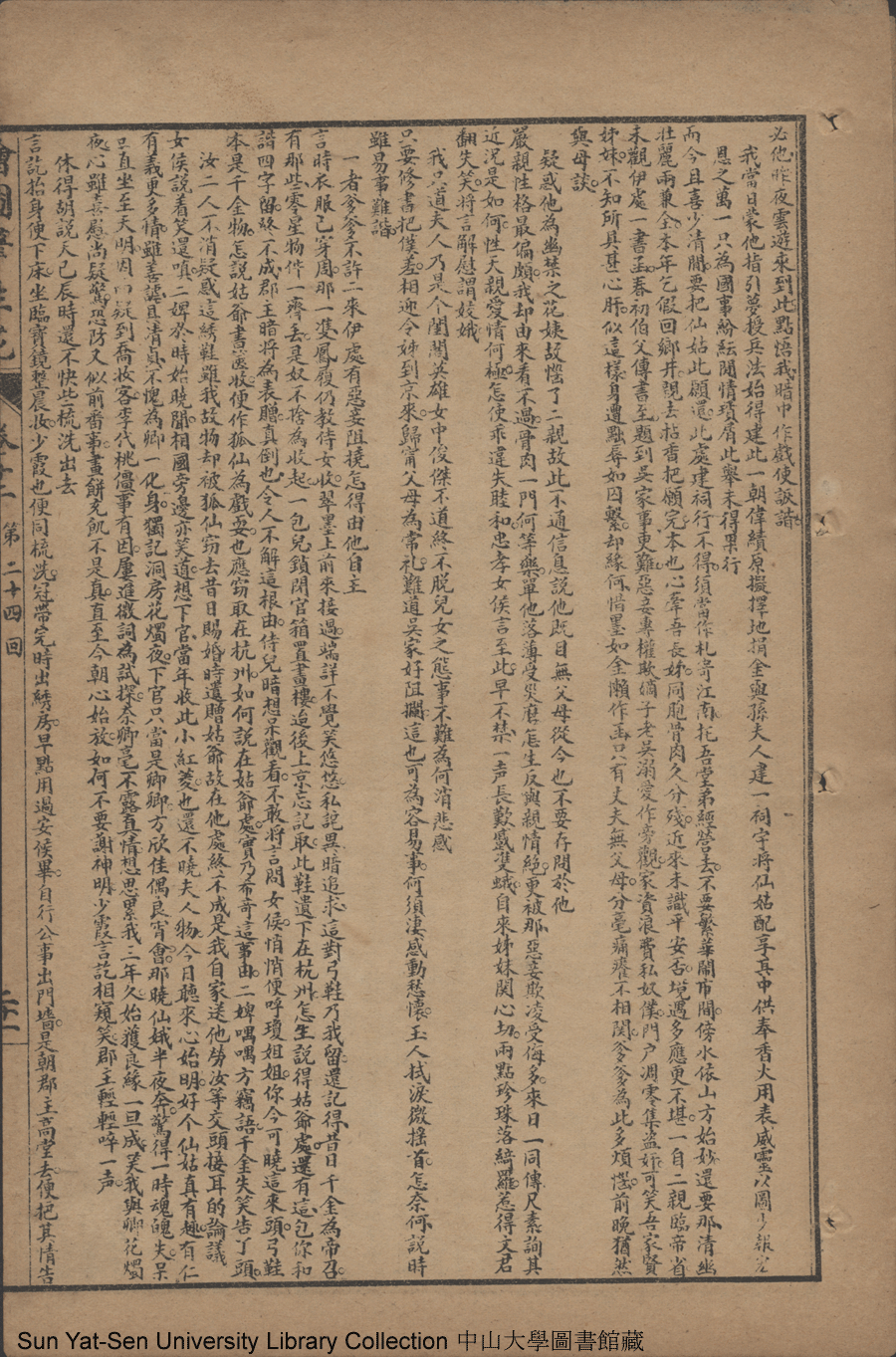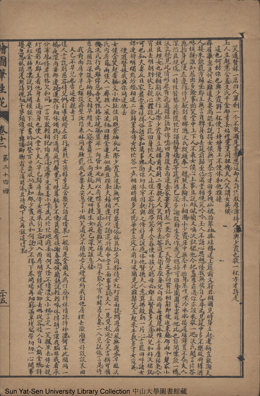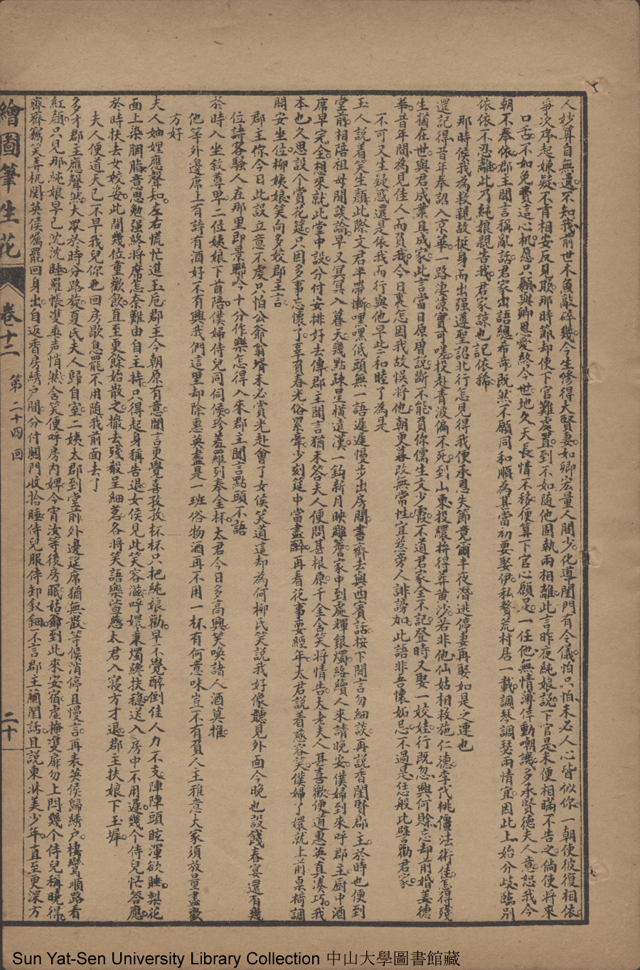 | 第二十四回 憐弱質代呈隱跡 責賢妻因聽讒言 薄倖郎重伸繾綣 頑劣女實費周旋 Di er shi si hui Lian ruo zhi dai cheng yin ji Ze xian qi yin ting chan yan Bo xing lang chong shen qian quan Wan lie nü shi fei zhou xuan 文﹕彈詞 Wen: Tan ci 邱心如 Qiu Xinru 繪圖筆生花: 十六卷三十二回(清邱心如撰) Hui tu Bi sheng hua: 16 juan 32 hui (by Qiu Xinru, Qing Dynasty) , pp. 卷十二12a,卷十二12b,卷十二13a,卷十二13b,卷十二14a,卷十二14b,卷十二15a,卷十二15b,卷十二16a,卷十二16b,卷十二17a,卷十二17b,卷十二18a,卷十二18b,卷十二19a,卷十二19b,卷十二20a,卷十二20b,卷十二21a,卷十二21b,卷十二22a,卷十二22b,卷十二23a,卷十二23b,卷十二24a,卷十二24b,卷十二25a,卷十二25b. |