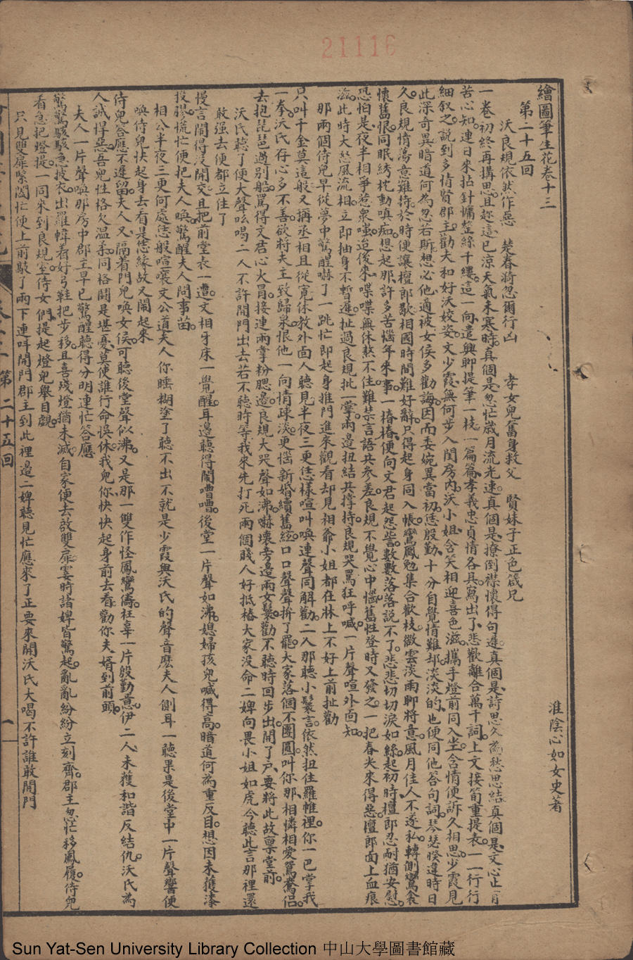 | 第二十五回 沃良規依然作惡 楚春漪忽爾行凶 孝女兒奮身救父 賢妹子正色箴兄 Di er shi wu hui Wo Lianggui yi ran zuo e Chu Chunyi hu er xing xiong Xiao nü er fen shen jiu fu Xian mei zi zheng se zhen xiong 文﹕彈詞 Wen: Tan ci 邱心如 Qiu Xinru 繪圖筆生花: 十六卷三十二回(清邱心如撰) Hui tu Bi sheng hua: 16 juan 32 hui (by Qiu Xinru, Qing Dynasty) , pp. 卷十三10a,卷十三10b,卷十三11a,卷十三11b,卷十三1a,卷十三1b,卷十三2a,卷十三2b,卷十三3a,卷十三3b,卷十三4a,卷十三4b,卷十三5a,卷十三5b,卷十三6a,卷十三6b,卷十三7a,卷十三7b,卷十三8a,卷十三8b,卷十三9a,卷十三9b. |