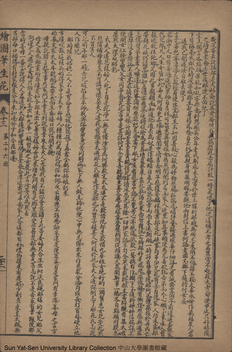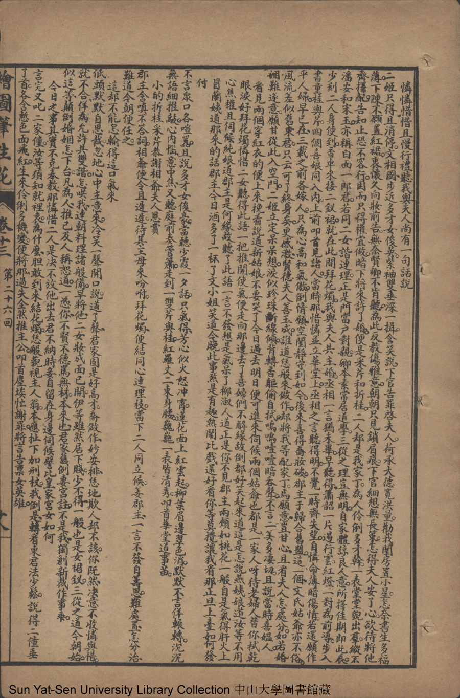 | 第二十六回 語詼諧情爭夫婦 言委婉善睦君親 強週旋雙收愛寵 真苦惱共嘆佳人 Di er shi liu hui Yu hui xie qing zheng fu fu Yan wei wan shan mu jun qin Qiang zhou xuan shuang shou ai chong Zhen ku nao gong tan jia ren 文﹕彈詞 Wen: Tan ci 邱心如 Qiu Xinru 繪圖筆生花: 十六卷三十二回(清邱心如撰) Hui tu Bi sheng hua: 16 juan 32 hui (by Qiu Xinru, Qing Dynasty) , pp. 卷十三11b,卷十三12a,卷十三12b,卷十三13a,卷十三13b,卷十三14a,卷十三14b,卷十三15a,卷十三15b,卷十三16a,卷十三16b,卷十三17a,卷十三17b,卷十三18a,卷十三18b,卷十三19a,卷十三19b,卷十三20a,卷十三20b,卷十三21a,卷十三21b,卷十三22a,卷十三22b. |