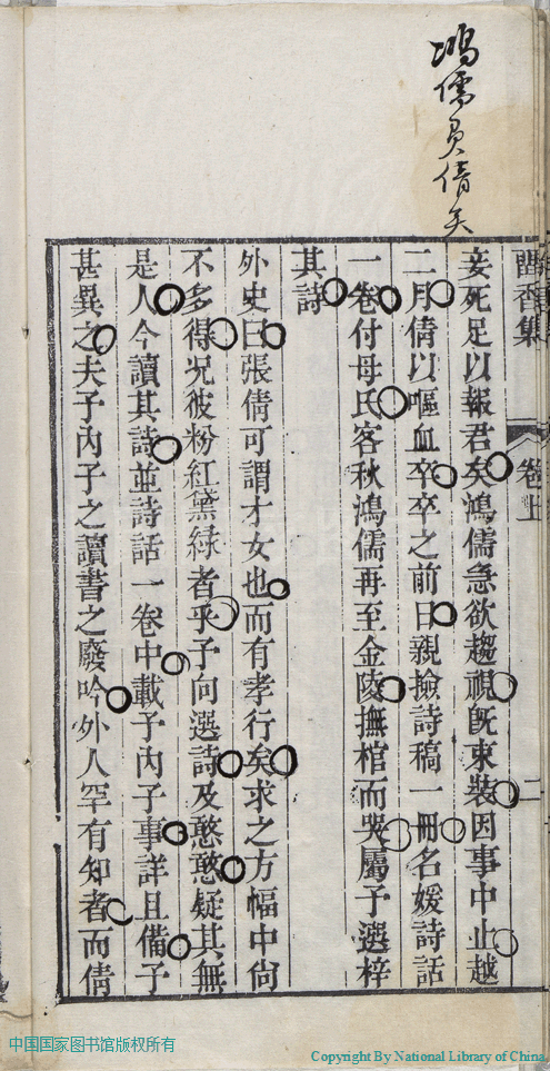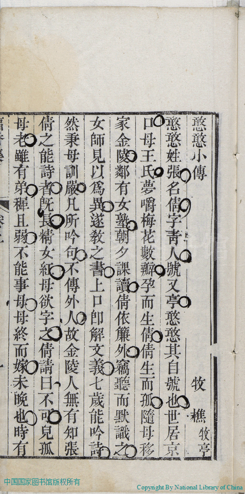 留香集:二卷(清張倩撰) Liu xiang ji:2 juan (by Zhang Qian, Qing Dynasty) , pp. 上卷-憨憨小傳.1a,上卷-憨憨小傳.1b,上卷-憨憨小傳.2a,上卷-憨憨小傳.2b,上卷-憨憨小傳.3a,上卷-憨憨小傳.3b.