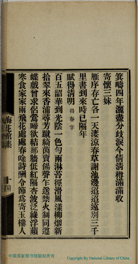 梅花館詩集:一卷;附詩餘(清汪韻梅撰) Mei hua guan shi ji: 1 juan, fu shi yu (by Wang Yunmei, Qing dynasty) , pp. 詩集.14a.