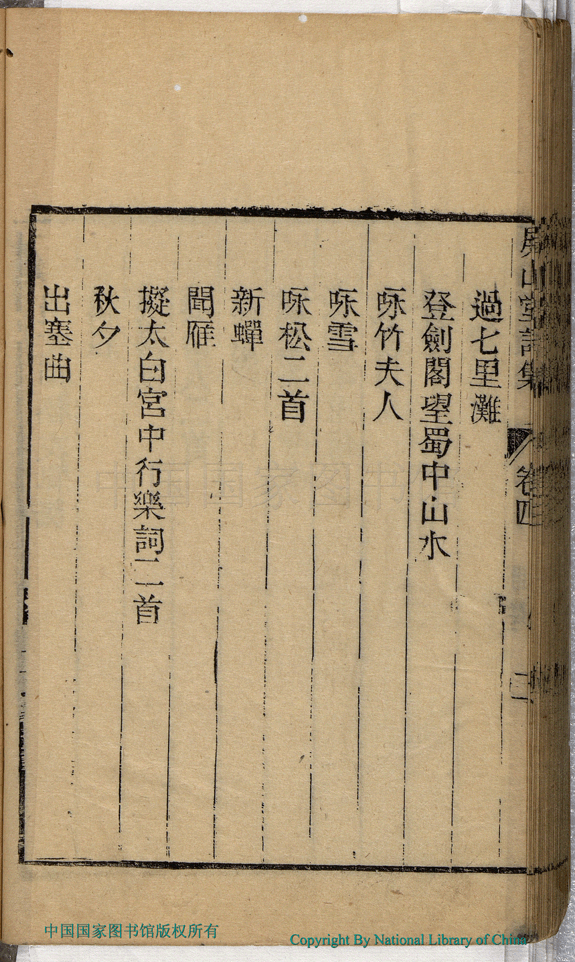 屏山堂詩集:五卷(清方雲卿撰) Ping shan tang shi ji: 5 juan (by Fang Yunqing, Qing dynasty) , pp. 卷四目錄.1a,卷四目錄.1b,卷四目錄.2a,卷四目錄.2b,卷四目錄.3a,卷四目錄.3b.