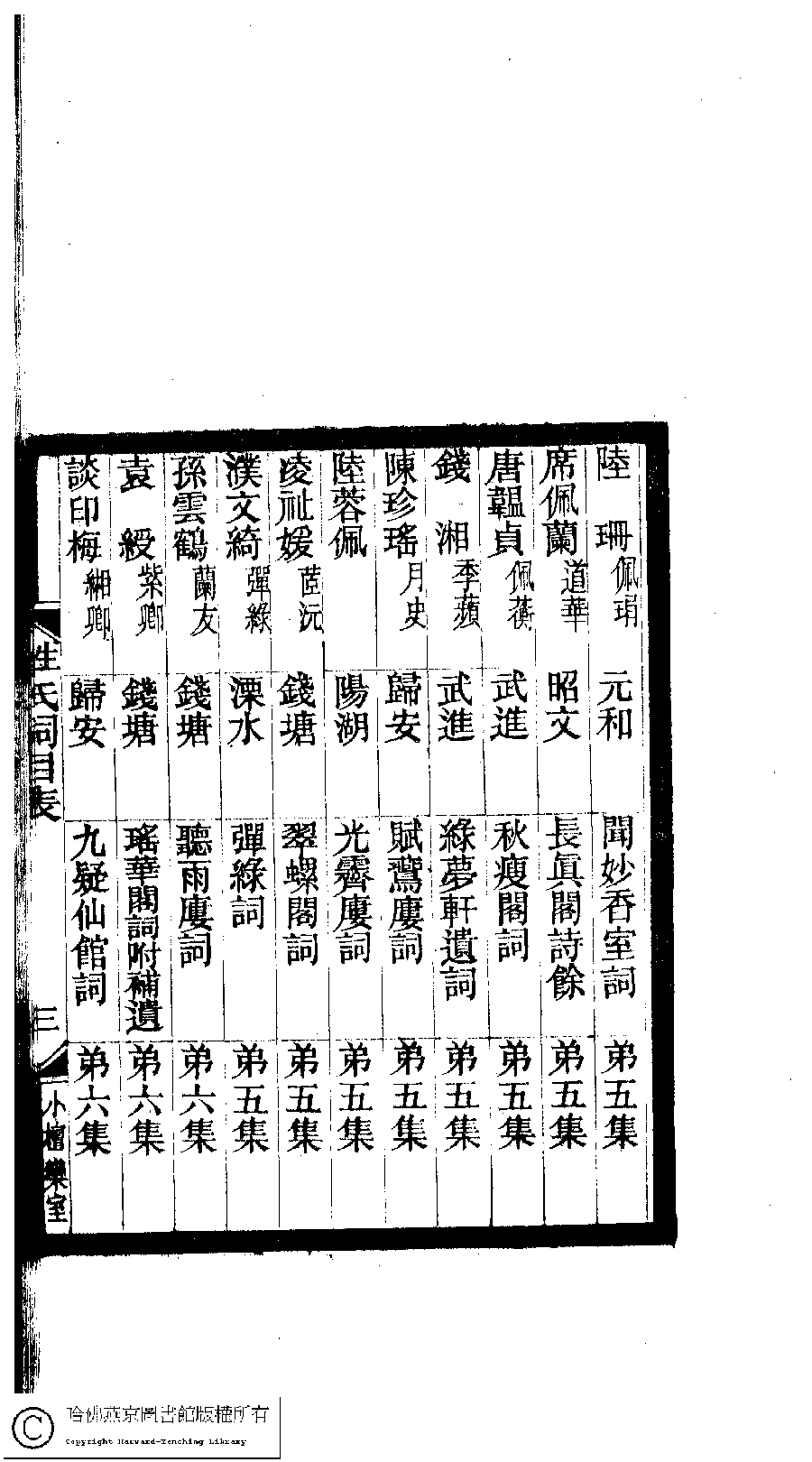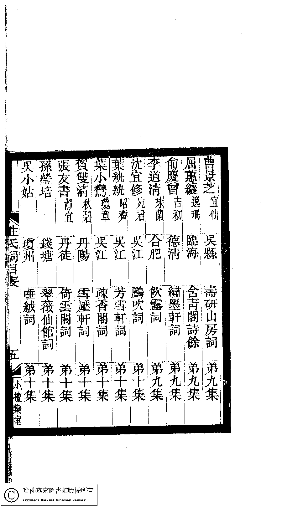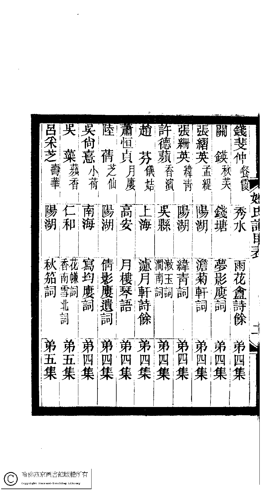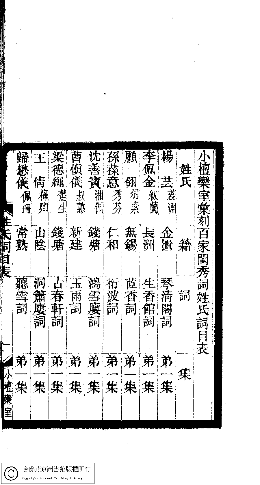 閨秀詞鈔﹕十六卷(清徐乃昌輯) Gui xiu ci chao: 16 juan (edited by Xu Naichang, Qing dynasty) , pp. 詞目.1a,詞目.1b,詞目.2a,詞目.2b,詞目.3a,詞目.3b,詞目.4a,詞目.4b,詞目.5a,詞目.5b.