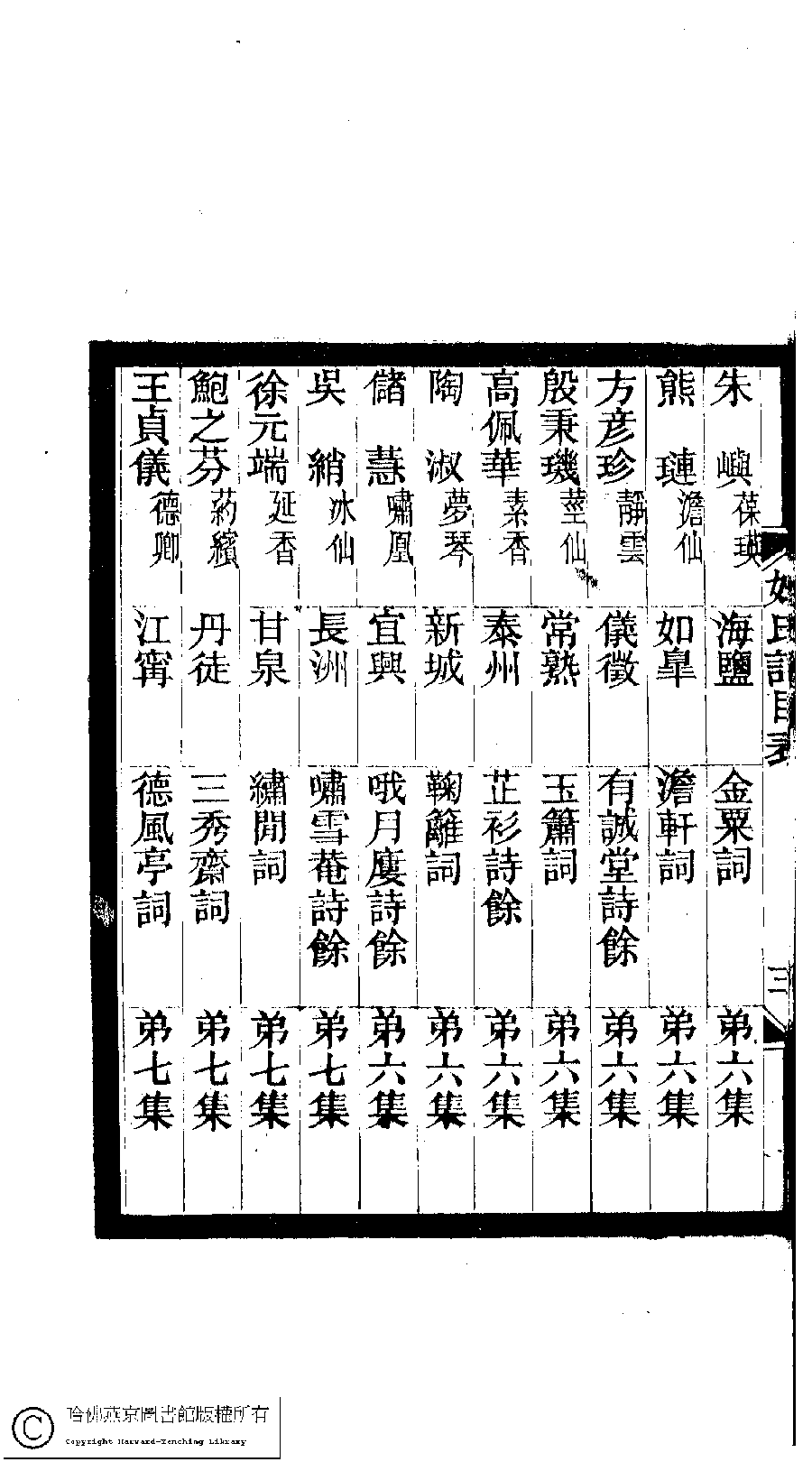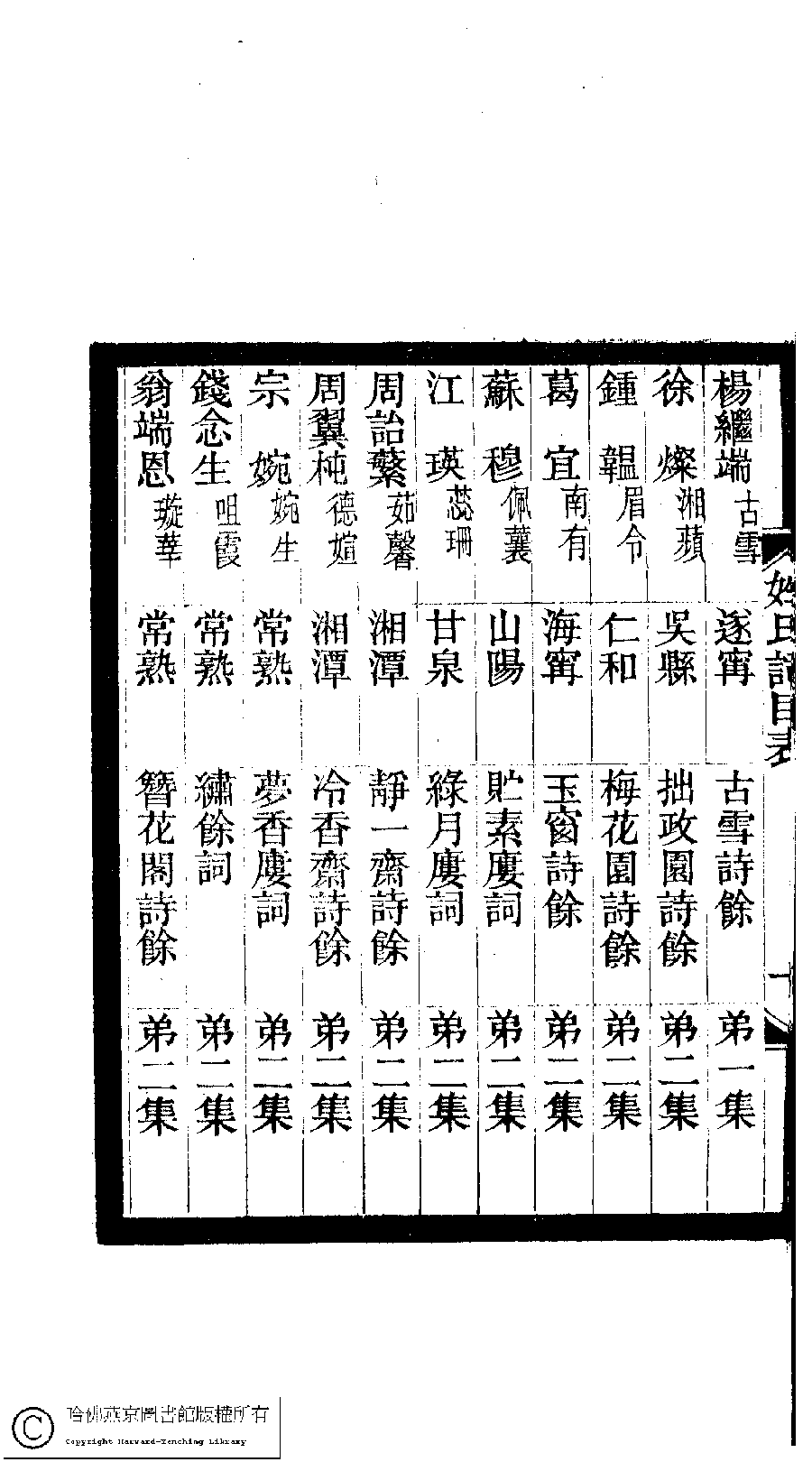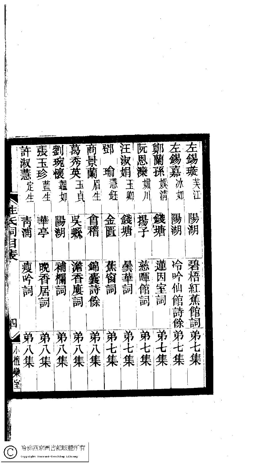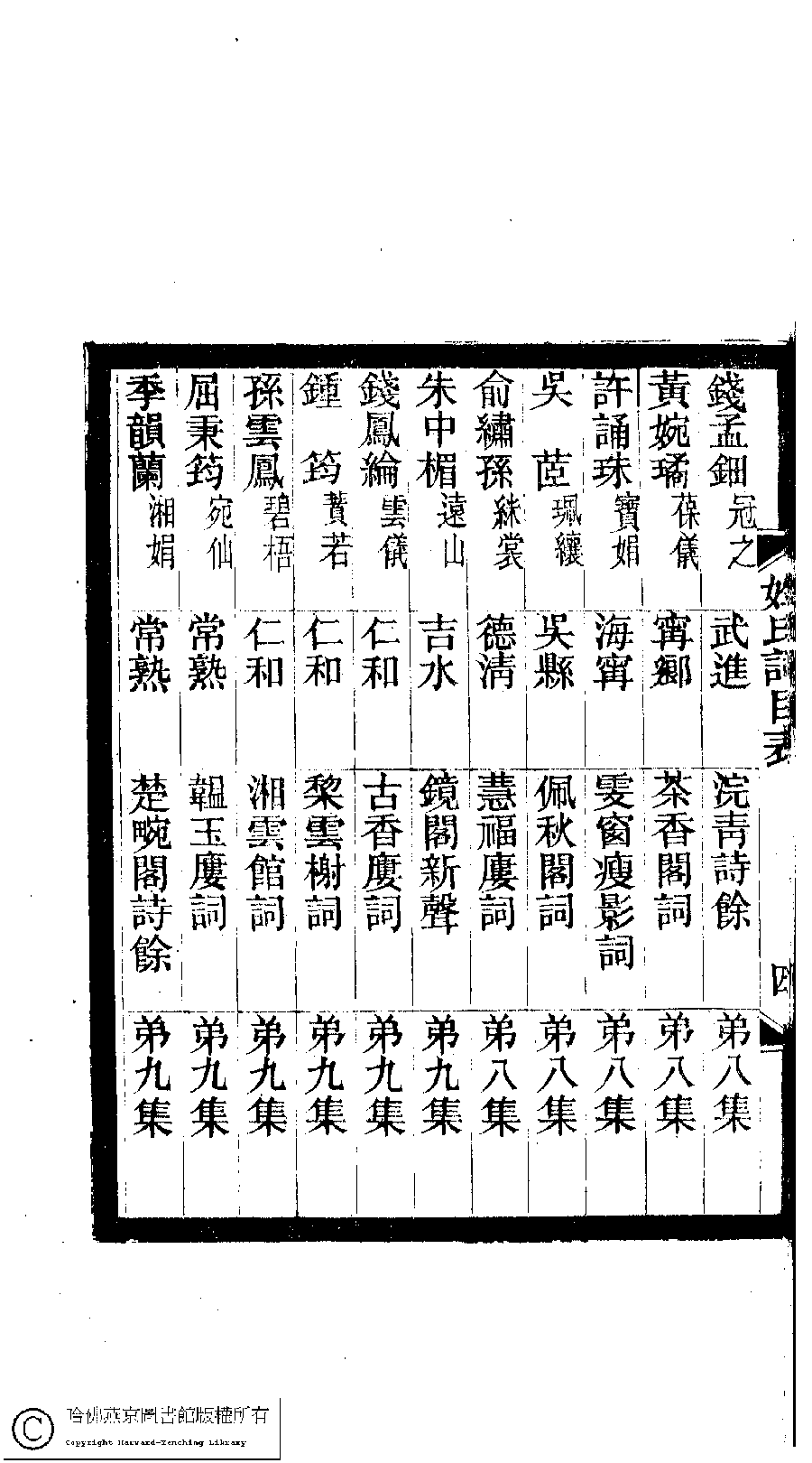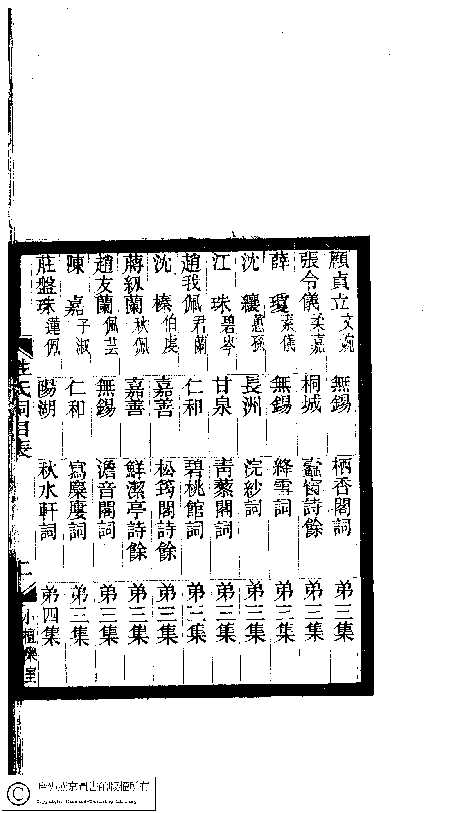 閨秀詞鈔﹕十六卷(清徐乃昌輯) Gui xiu ci chao: 16 juan (edited by Xu Naichang, Qing dynasty) , pp. 詞目.1a,詞目.1b,詞目.2a,詞目.2b,詞目.3a,詞目.3b,詞目.4a,詞目.4b,詞目.5a,詞目.5b.