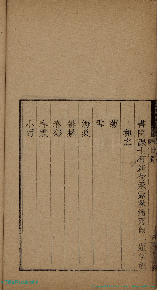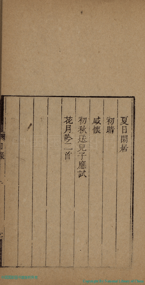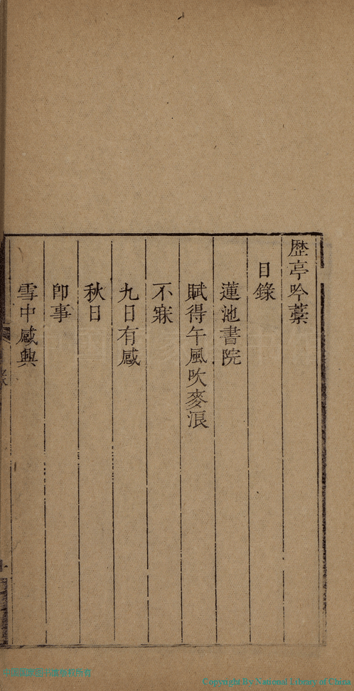 曆亭吟稿:一卷(清何氏撰) Li ting yin gao: 1 juan (by He shi, Qing dynasty) , pp. 目錄.1a,目錄.1b,目錄.2a,目錄.2b.