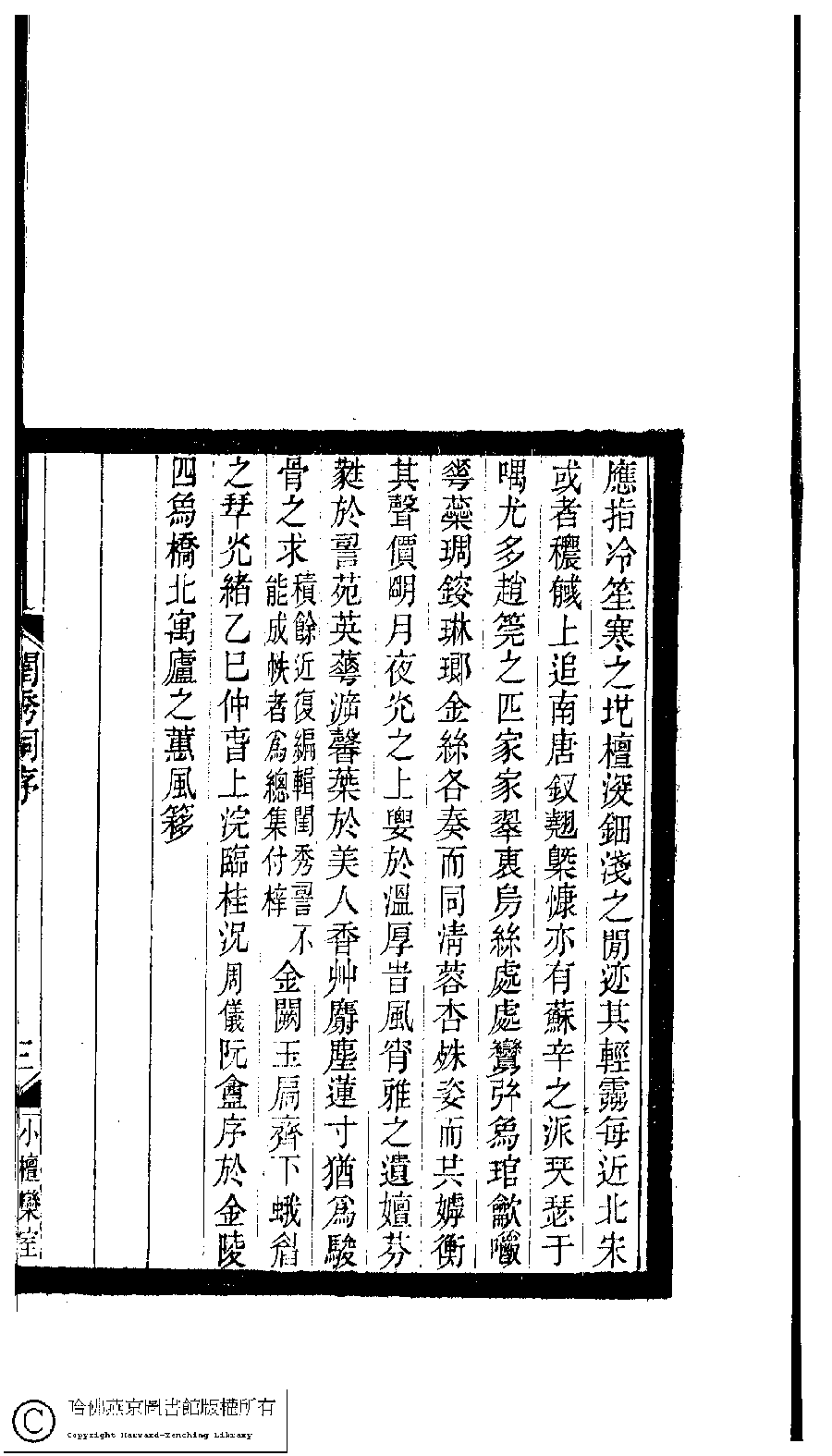 | 況周儀小檀欒室彙刻閨秀詞序 Kuang Zhouyi Xiao tan luan shi hui ke gui xiu ci xu 文﹕序 Wen: Xu 況周頤﹐號蕙風﹐字夔笙﹐又名揆孫﹑阮龕 Kuang Zhouyi, hao: Huifeng, zi: Kuisheng 小檀欒室彙刻閨秀詞﹕十集一百種一百卷(清徐乃昌輯) Xiao tan luan shi hui ke gui xiu ci: 10 ji 100 zhong 100 juan (edited by Xu Naichang, Qing dynasty) , pp. 序.1a,序.1b,序.2a,序.2b,序.3a,序.3b. |