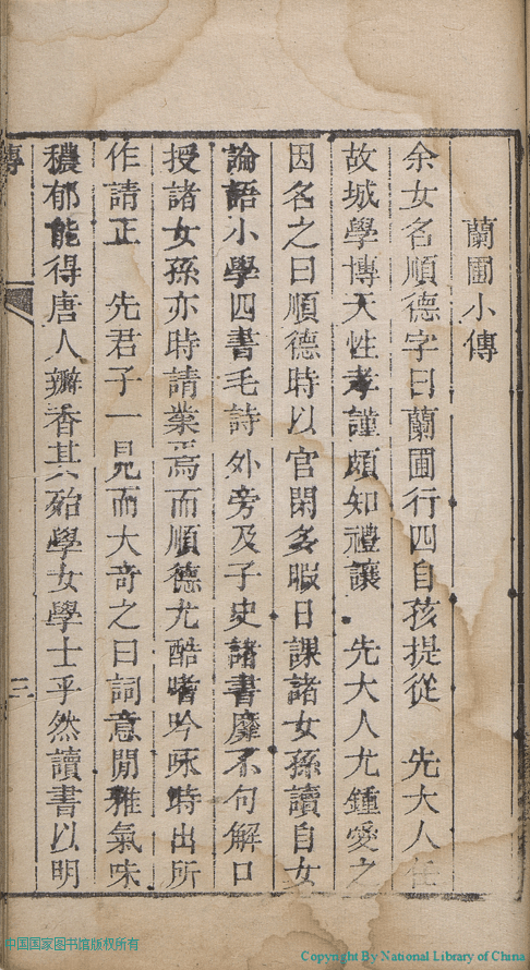 蘭圃遺稿:一卷(清邢順德撰) Lan pu yi gao: 1 juan (by Xing Shunde, Qing dynasty) , pp. 傳.1a,傳.1b,傳.2a,傳.2b.