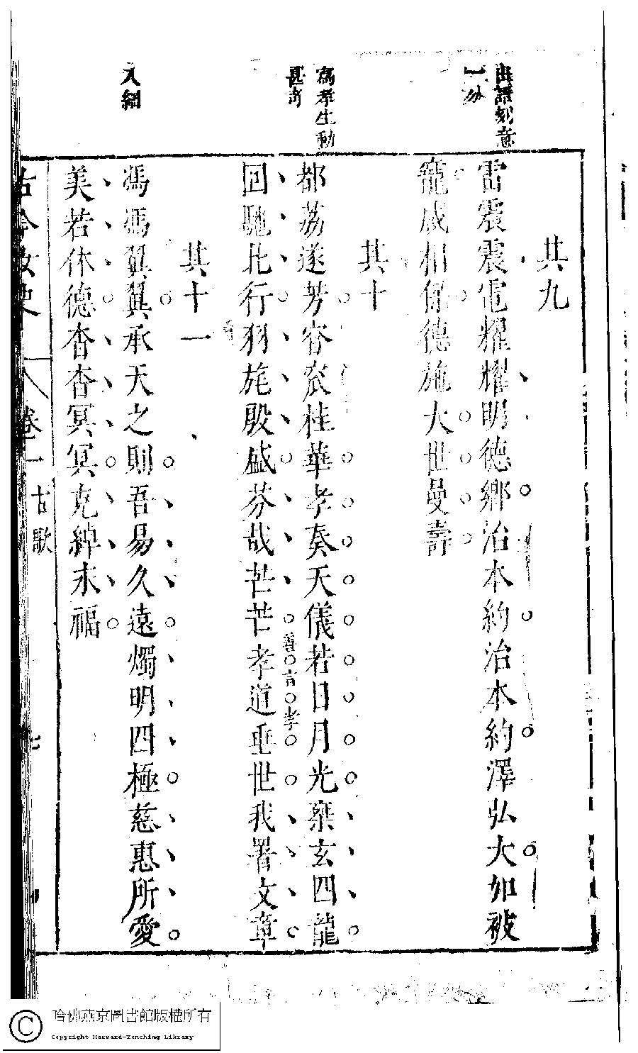 | 安世房中歌(十六首) An shi fang zhong ge 詩 - 樂府 shi - yuefu 唐山夫人 Tangshan Furen 古今女史﹕十二卷﹐詩集﹕八卷﹐附姓氏字里詳節﹕一卷(明趙世杰輯) Gu jin nü shi: 12 juan, shi ji: 8 juan, fu Xing shi zi li xiang jie: 1 juan (edited by Zhao shijie, Ming dynasty) , pp. 1.5b,1.6a,1.6b,1.7a,1.7b,1.8a. |