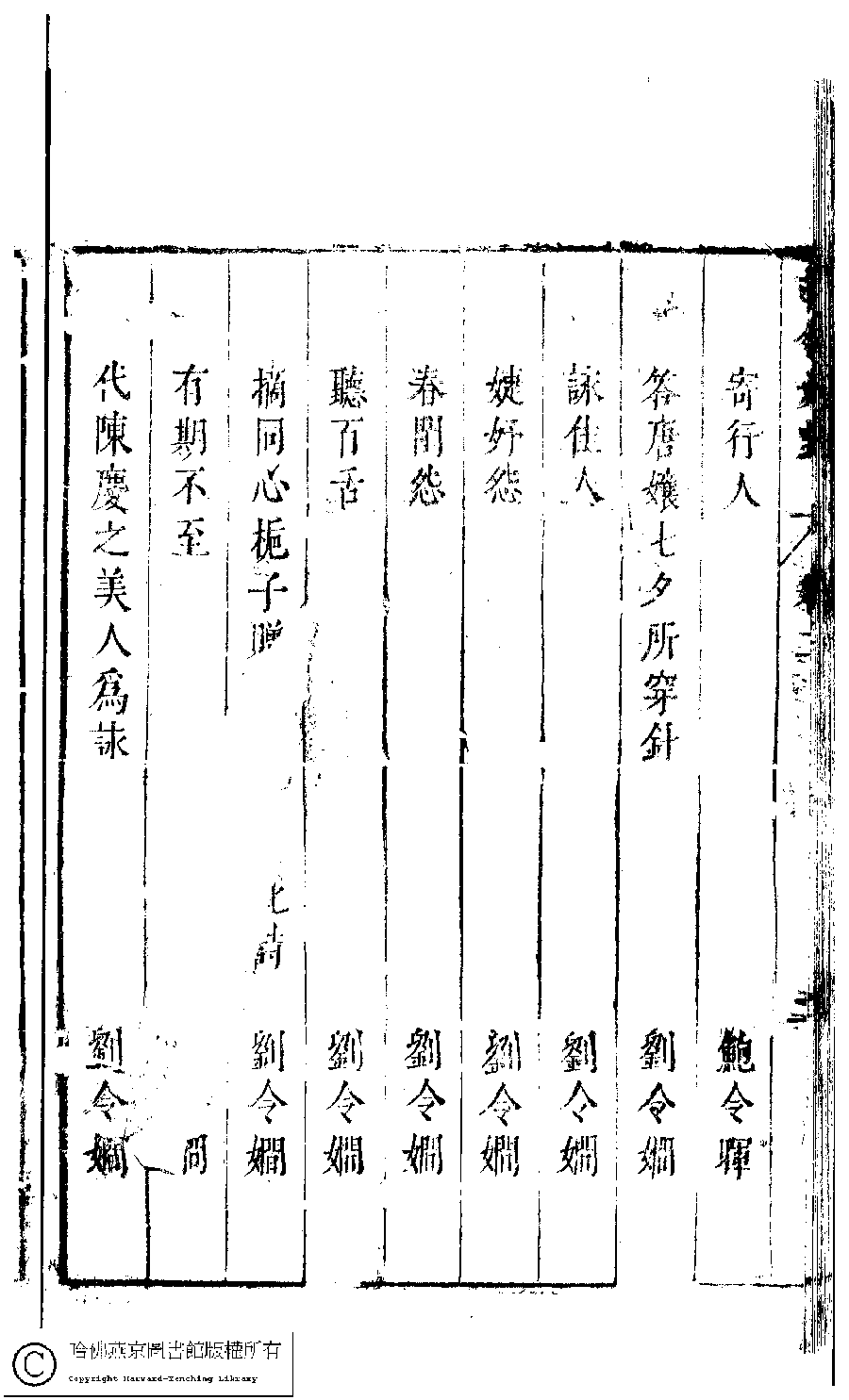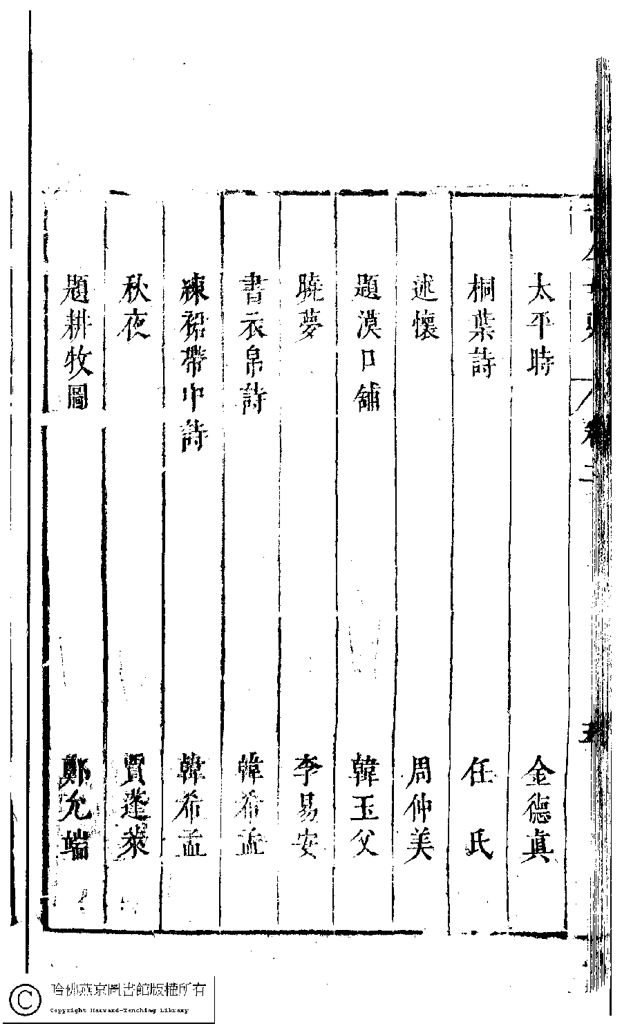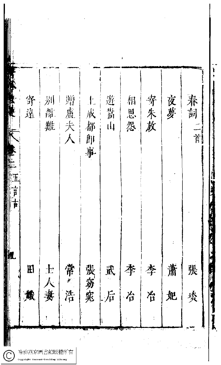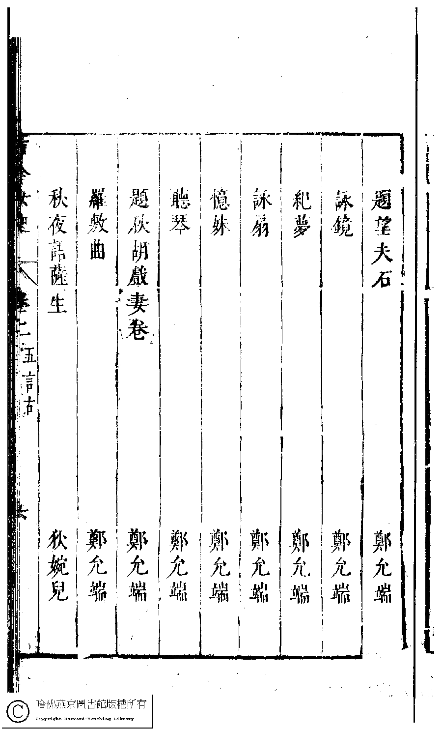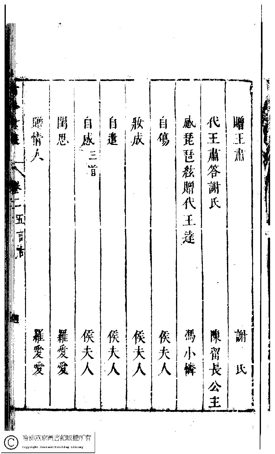 | 古今女史詩集卷二目錄 Gu jin nü shi shi ji juan er mu lu 古今女史﹕十二卷﹐詩集﹕八卷﹐附姓氏字里詳節﹕一卷(明趙世杰輯) Gu jin nü shi: 12 juan, shi ji: 8 juan, fu Xing shi zi li xiang jie: 1 juan (edited by Zhao shijie, Ming dynasty) , pp. 2.目錄.1a,2.目錄.1b,2.目錄.2a,2.目錄.2b,2.目錄.3a,2.目錄.3b,2.目錄.4a,2.目錄.4b,2.目錄.5a,2.目錄.5b,2.目錄.6a,2.目錄.6b,2.目錄.7a,2.目錄.7b. |