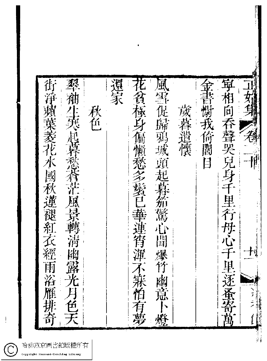 | 次兒宗侃北上作此示之 Ci er Zongkan bei shang zuo ci shi zhi 詩 - 五言古詩 shi - wuyangushi 陸費湘于﹐字季齋 Lufei Xiangyu, zi: Jizhai 國朝閨秀正始集﹕二十卷﹐附錄﹕一卷﹐補遺﹕一卷﹐又附題詞﹕一卷(清惲珠輯) Guo chao gui xiu zheng shi ji: 20 juan, fu lu: 1 juan, bu yi: 1 juan, you fu ti ci: 1 juan (edited by Yun Zhu, Qing dynasty) , pp. 20.10b,20.11a,20.11b. |