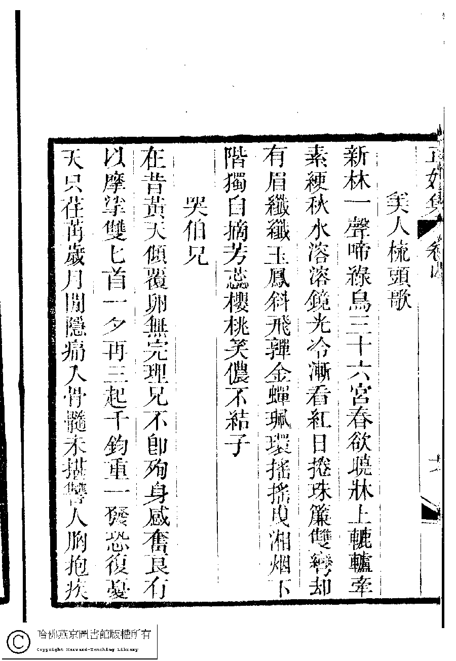 | 美人梳頭歌 Mei ren shu tou ge 詩 - 樂府 shi - yuefu 錢鳳綸﹐字雲儀 Qian Fenglun, zi: Yunyi 國朝閨秀正始集﹕二十卷﹐附錄﹕一卷﹐補遺﹕一卷﹐又附題詞﹕一卷(清惲珠輯) Guo chao gui xiu zheng shi ji: 20 juan, fu lu: 1 juan, bu yi: 1 juan, you fu ti ci: 1 juan (edited by Yun Zhu, Qing dynasty) , pp. 4.6b. |
