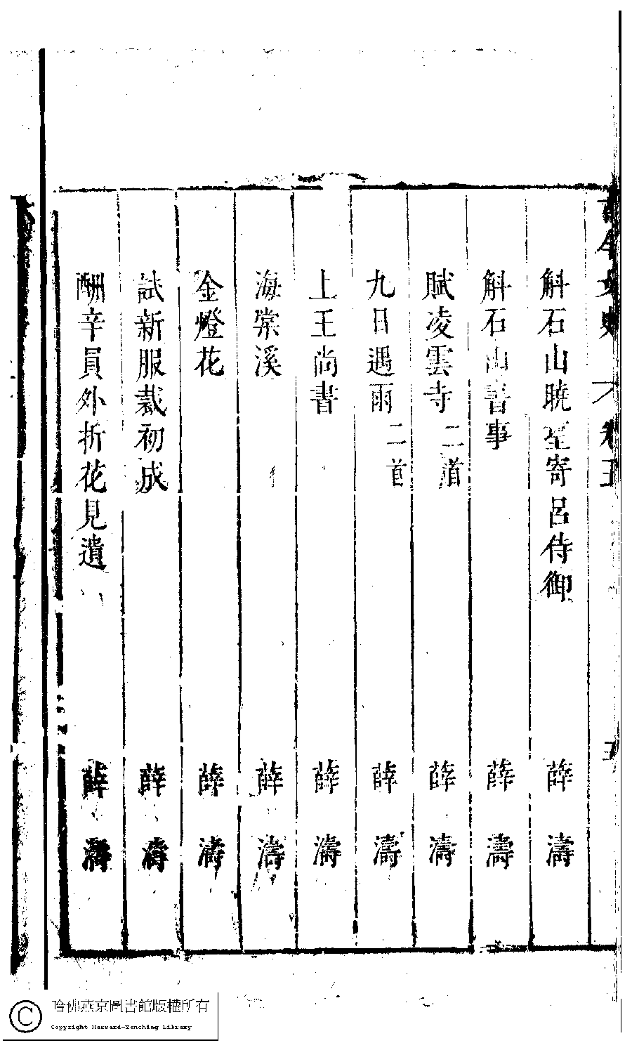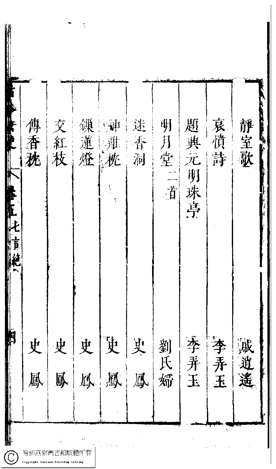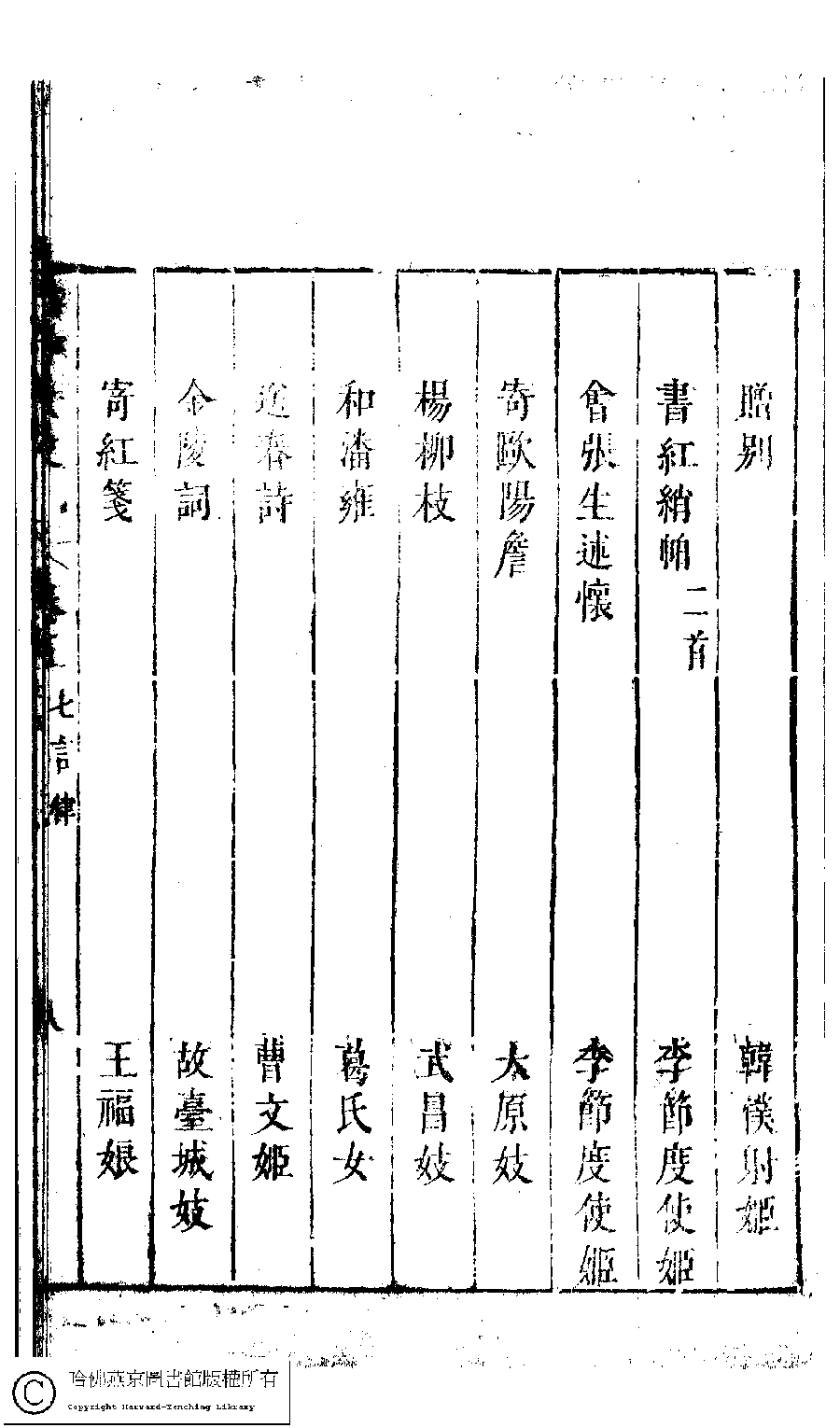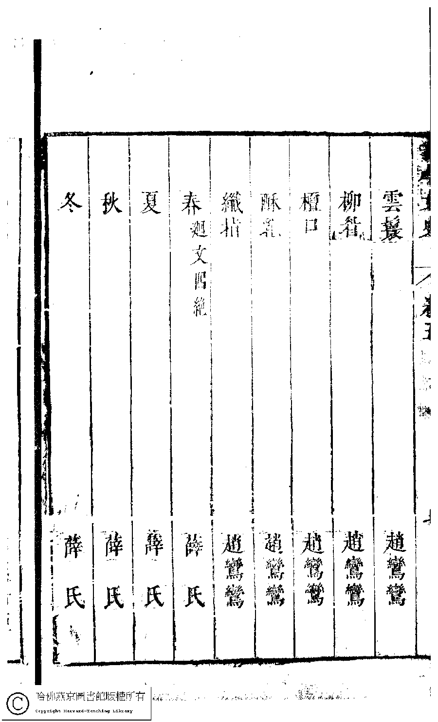 | 古今女史詩集卷五目錄 Gu jin nü shi shi ji juan wu mu lu 古今女史﹕十二卷﹐詩集﹕八卷﹐附姓氏字里詳節﹕一卷(明趙世杰輯) Gu jin nü shi: 12 juan, shi ji: 8 juan, fu Xing shi zi li xiang jie: 1 juan (edited by Zhao shijie, Ming dynasty) , pp. 5.目錄.10a,5.目錄.10b,5.目錄.11b,5.目錄.1a,5.目錄.1b,5.目錄.2a,5.目錄.2b,5.目錄.3a,5.目錄.3b,5.目錄.4a,5.目錄.4b,5.目錄.5a,5.目錄.5b,5.目錄.6a,5.目錄.6b,5.目錄.7a,5.目錄.7b,5.目錄.8a,5.目錄.8b,5.目錄.9a,5.目錄.9b,目錄.5.11a. |