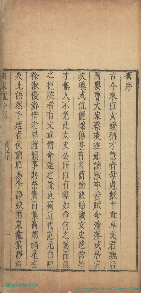 雨泉龕合刻:八卷(清季嫺撰) Yu quan kan he ke: 8 juan (by Ji Xian, Qing dynasty) , pp. 舊序.1a,舊序.1b,舊序.2a,舊序.2b.