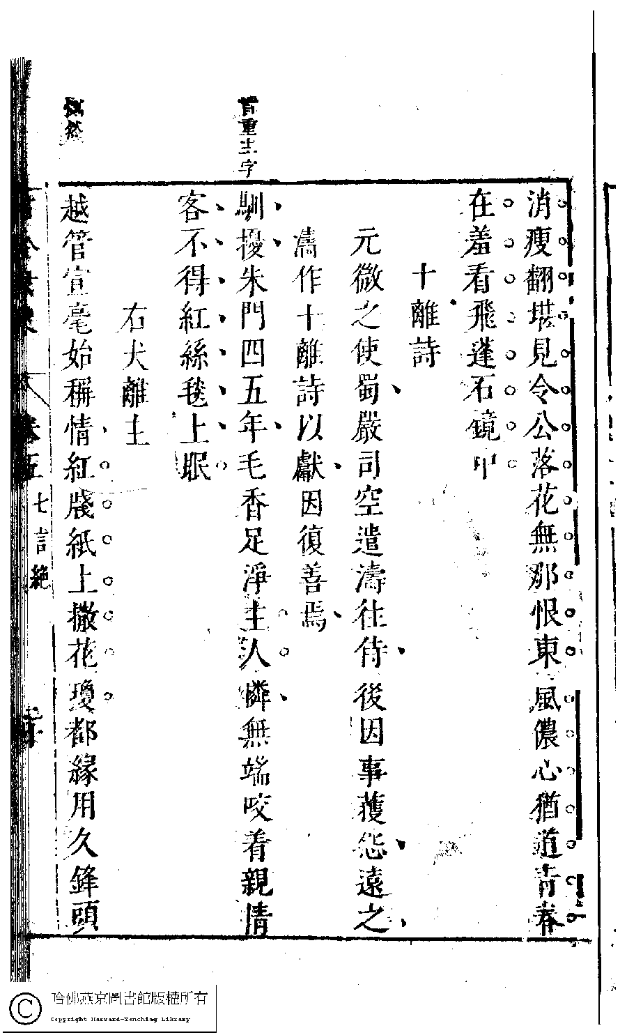| 叚相國遊武擔寺病不能從題寄 Jia xiang guo you Wu dan si bing bu neng cong ti ji 詩 - 七言絕句 shi - qiyanjueju 薛濤﹐字洪度 Xue Tao, zi: Hongdu 古今女史﹕十二卷﹐詩集﹕八卷﹐附姓氏字里詳節﹕一卷(明趙世杰輯) Gu jin nü shi: 12 juan, shi ji: 8 juan, fu Xing shi zi li xiang jie: 1 juan (edited by Zhao shijie, Ming dynasty) , pp. 5.19b,5.20a. |