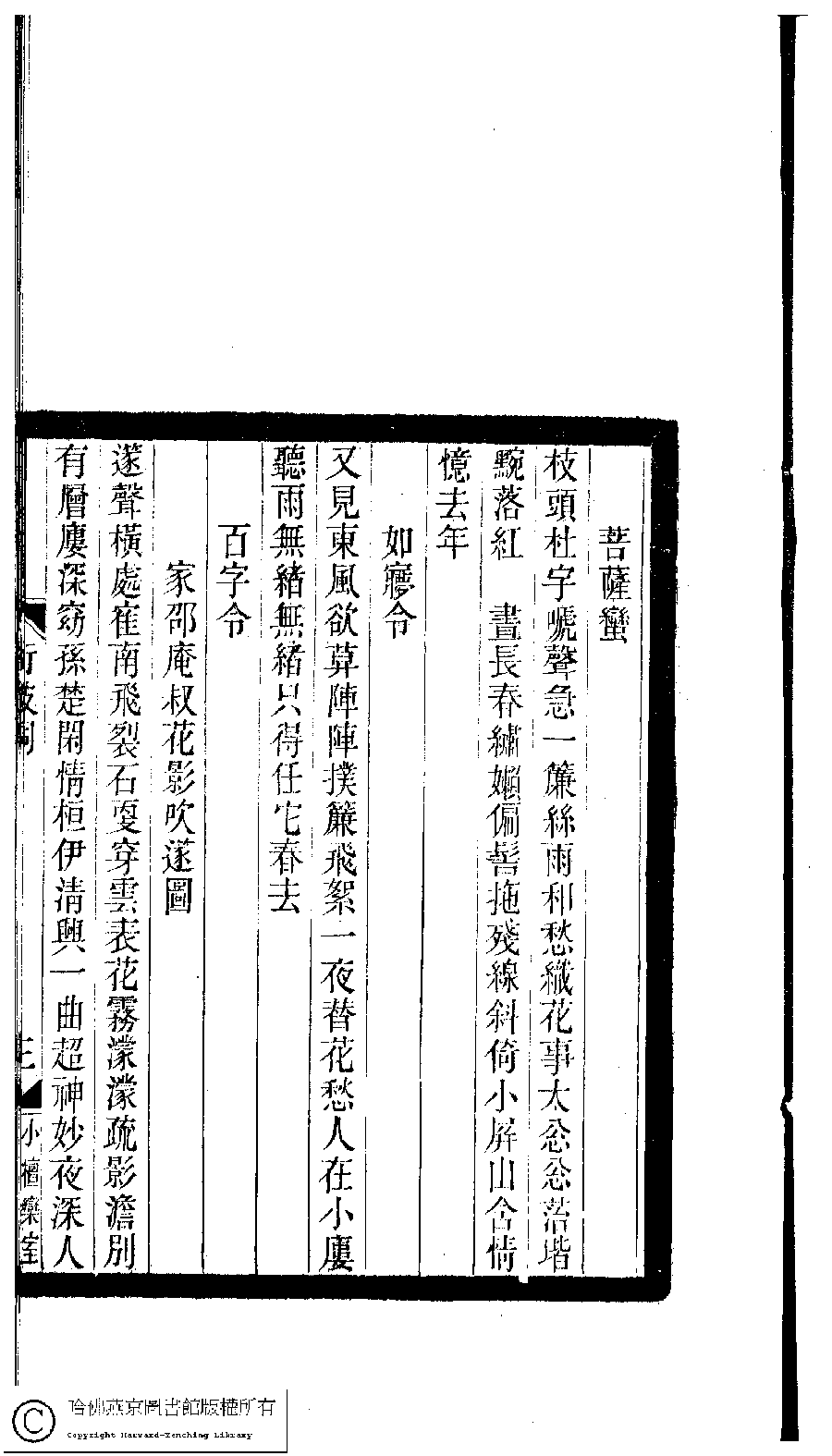 小檀欒室彙刻閨秀詞﹕十集一百種一百卷(清徐乃昌輯) 衍波詞﹕一卷 Xiao tan luan shi hui ke gui xiu ci: 10 ji 100 zhong 100 juan (edited by Xu Naichang, Qing dynasty) Yan bo ci: 1 juan, pp. 衍波詞.3a.