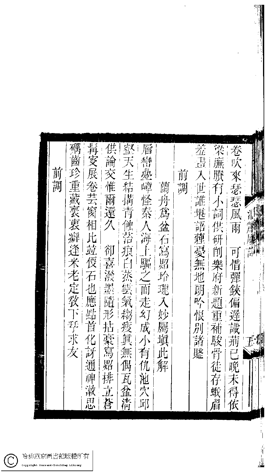 | 前調[百字令] : 蘭舟為盆石寫照玲瓏入妙屬填此解 Qian diao[Bai zi ling] : Lanzhou wei pen shi xie zhao ling long ru miao zhu tian ci jie 詞 ci 王倩﹐字梅卿﹐又名雅三 Wang Qian, zi: Meiqing 小檀欒室彙刻閨秀詞﹕十集一百種一百卷(清徐乃昌輯) 洞簫樓詞﹕一卷 Xiao tan luan shi hui ke gui xiu ci: 10 ji 100 zhong 100 juan (edited by Xu Naichang, Qing dynasty) Dong xiao lou ci: 1 juan, pp. 洞簫樓詞.5b. |