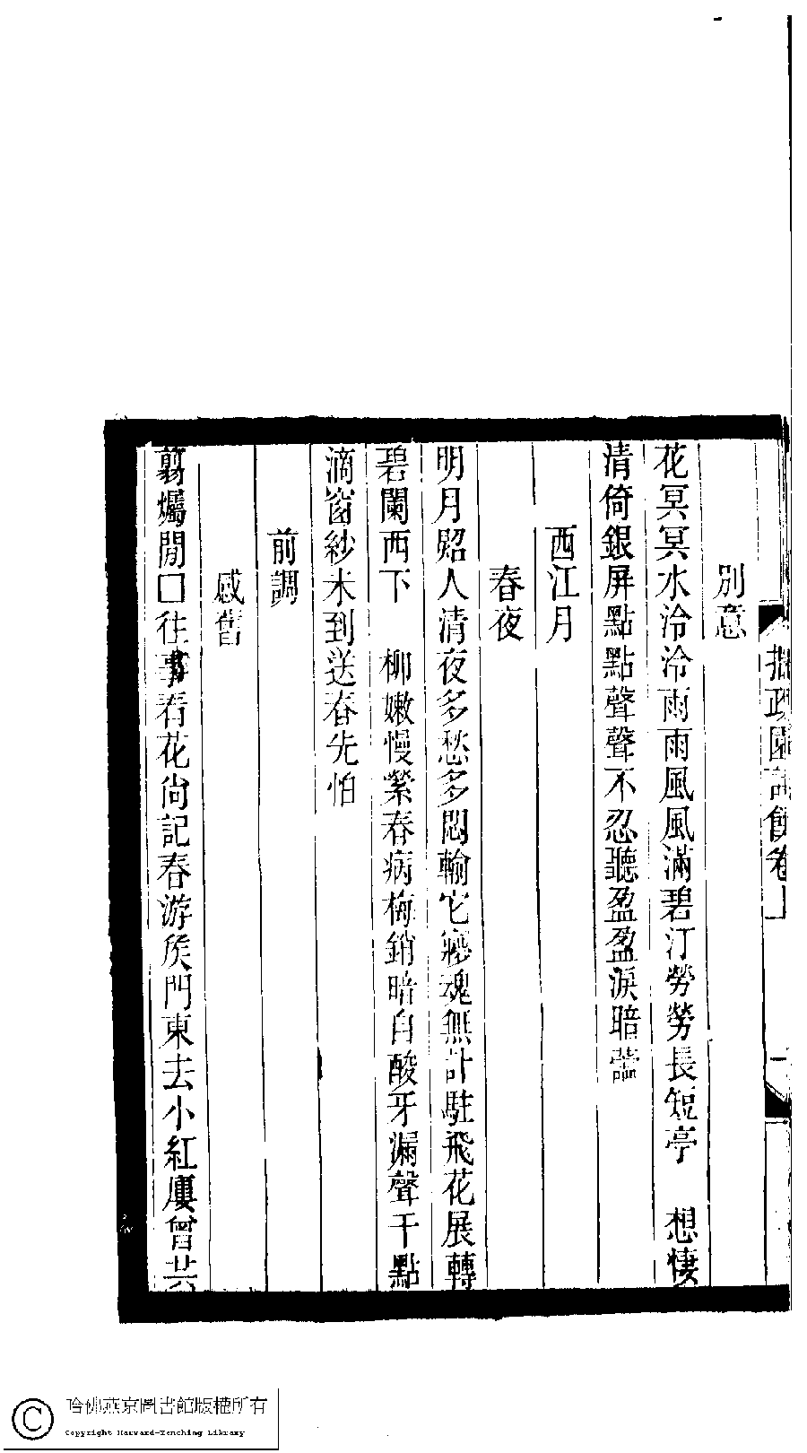 | 長相思 : 別意 Chang xiang si : Bie yi 詞 ci 徐燦﹐字湘蘋﹐又名明深,明霞,紫䇾 Xu Can, zi: Xiangping 小檀欒室彙刻閨秀詞﹕十集一百種一百卷(清徐乃昌輯) 拙政園詩餘﹕三卷 Xiao tan luan shi hui ke gui xiu ci: 10 ji 100 zhong 100 juan (edited by Xu Naichang, Qing dynasty) Zhuo zheng yuan shi yu: 1 juan, pp. 卷上.1a,卷上.1b. |