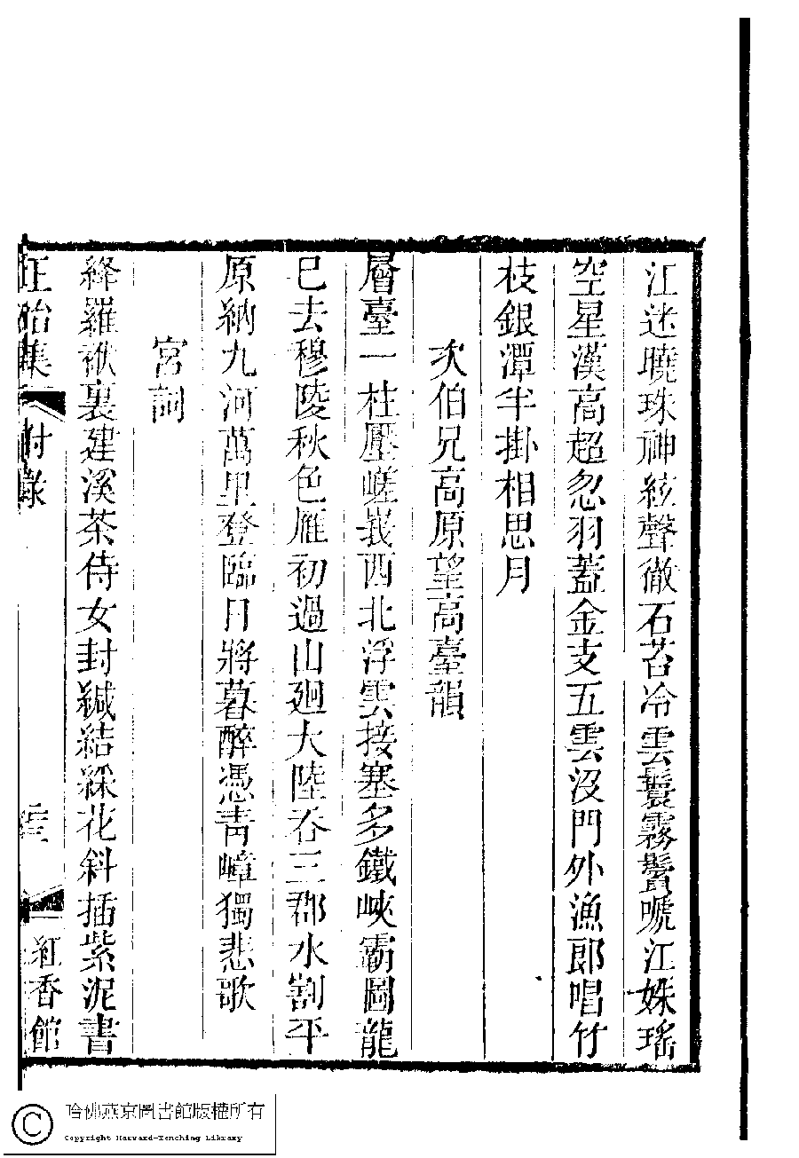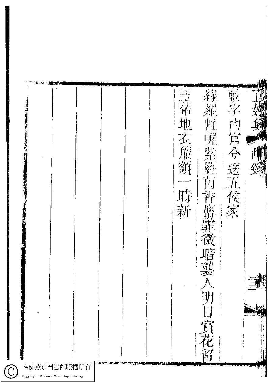 | 宮詞(二首) Gong ci 詩 - 七言絕句 shi - qiyanjueju 許景樊﹐字蘭雪﹐又名翠娥, Hŏ Nansŏrhŏn Xu Jingfan, zi: Lanxue 國朝閨秀正始集﹕二十卷﹐附錄﹕一卷﹐補遺﹕一卷﹐又附題詞﹕一卷(清惲珠輯) Guo chao gui xiu zheng shi ji: 20 juan, fu lu: 1 juan, bu yi: 1 juan, you fu ti ci: 1 juan (edited by Yun Zhu, Qing dynasty) , pp. 附錄.23a,附錄.23b. |