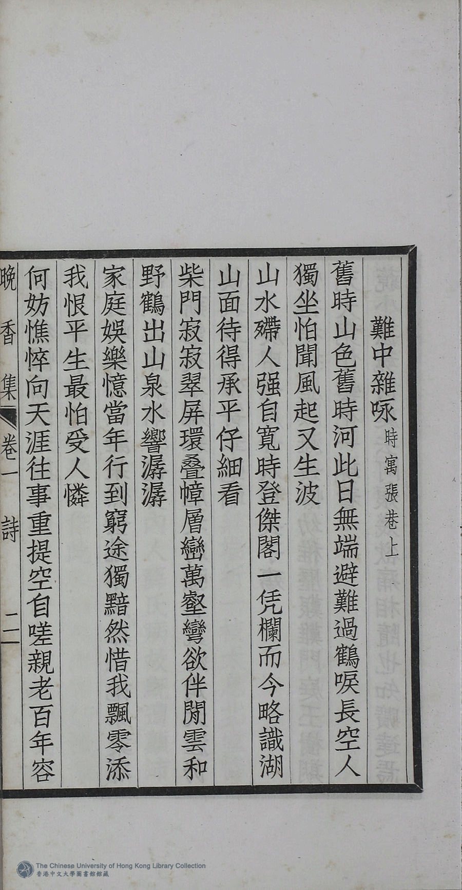 Nan zhong za yong (shi yu zhang xiang shang) (wu shou) 詩 - 七言絕句 shi - qiyanjueju 周曾鏞﹐字菊人 Zhou Zengyong, zi: Juren 晚香集:詩三卷,詞一卷,歌一卷(清周曾镛, 王南城, 周韞玉撰) Wan xiang ji: shi 3 juan, ci 1 juan, ge 1 juan (by Zhou Zengyong, Wang Nancheng, and Zhou Yunyu, Qing Dynasty) , pp. Page 33,Page 34. |