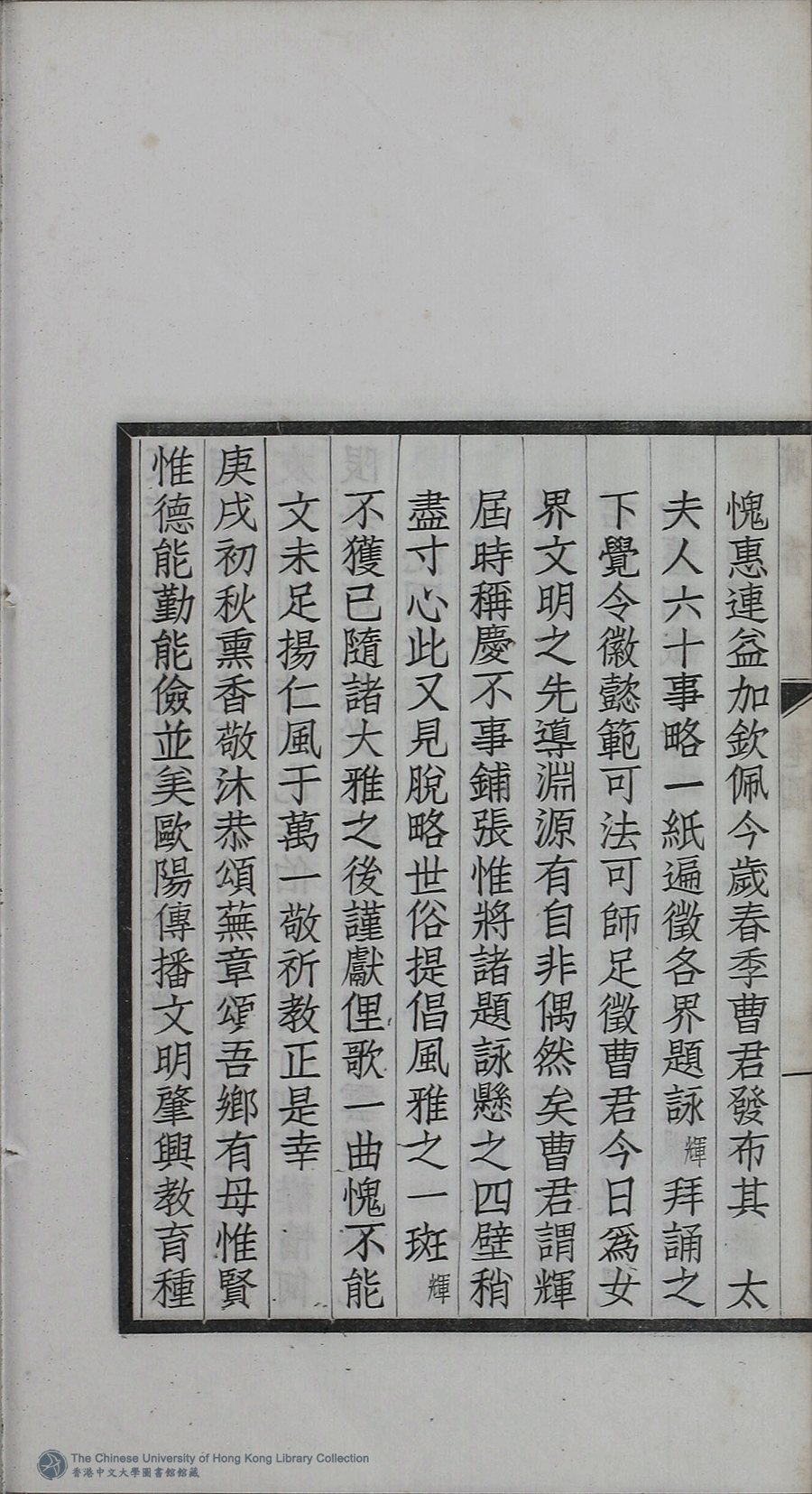 | 沁園春 : 祝曹太夫人壽並序 Qin yuan chun : Zhu Cao tai fu ren shou bing xu 詞 ci 周韞玉﹐字脩輝﹐又名胡周脩輝 Zhou Yunyu, zi: Xiuhui 晚香集:詩三卷,詞一卷,歌一卷(清周曾镛, 王南城, 周韞玉撰) Wan xiang ji: shi 3 juan, ci 1 juan, ge 1 juan (by Zhou Zengyong, Wang Nancheng, and Zhou Yunyu, Qing Dynasty) , pp. Page 153,Page 154,Page 155. |