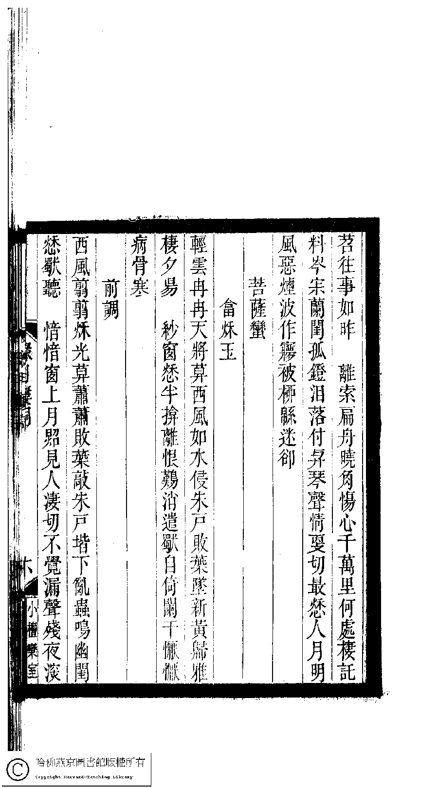 | 梅子黃時雨 : 寄許定生夫人 Mei zi huang shi yu : Ji Xu Dingsheng fu ren 詞 ci 江瑛﹐字蕋珊 Jiang Ying, zi: Ruishan 小檀欒室彙刻閨秀詞﹕十集一百種一百卷(清徐乃昌輯) 綠月樓詞﹕一卷 Xiao tan luan shi hui ke gui xiu ci: 10 ji 100 zhong 100 juan (edited by Xu Naichang, Qing dynasty) Lü yue lou ci: 1 juan, pp. 綠月樓詞.5b,綠月樓詞.6a. |