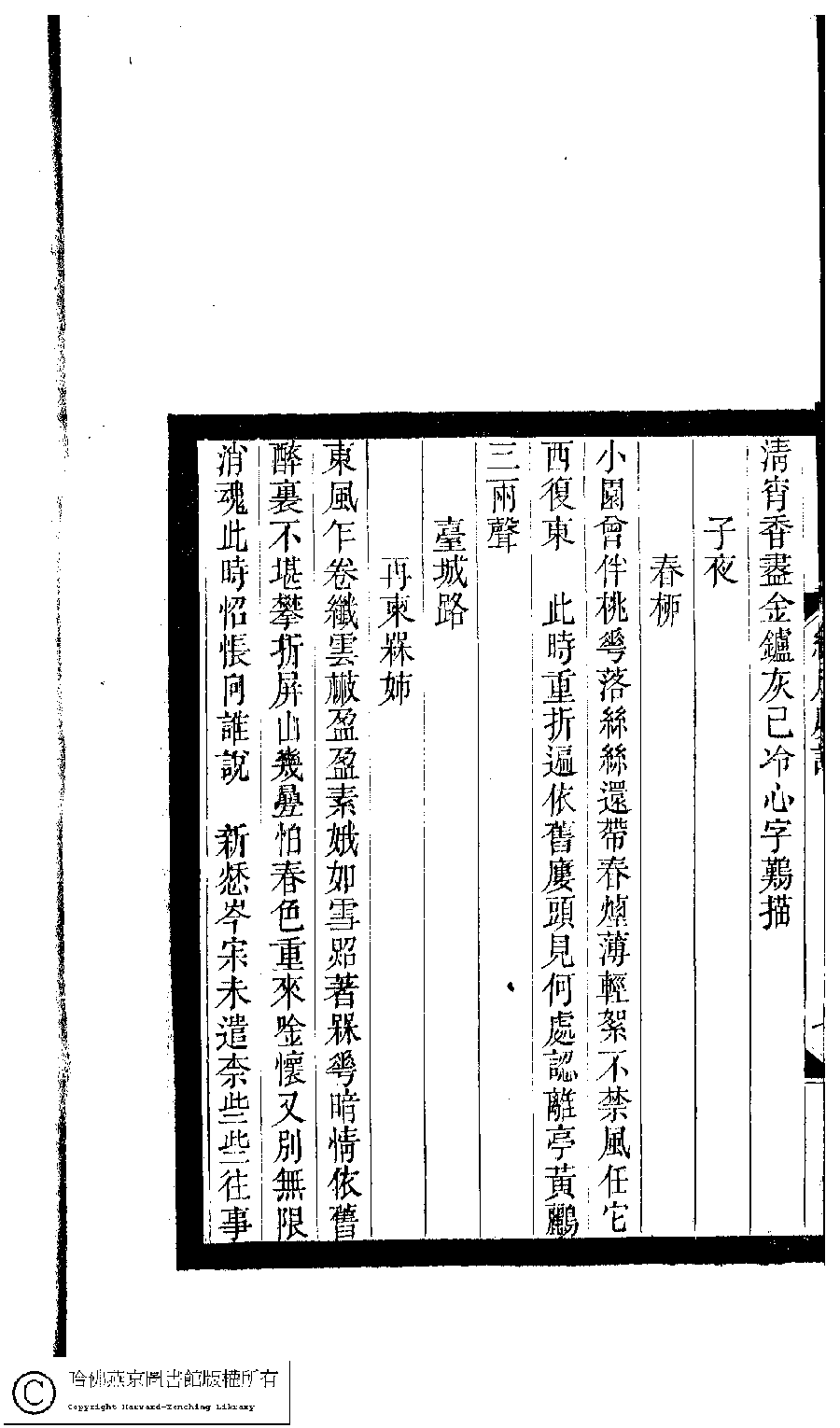 | 臺城路 : 再柬梅姉 Tai cheng lu : Zai jian Mei zi 詞 ci 江瑛﹐字蕋珊 Jiang Ying, zi: Ruishan 小檀欒室彙刻閨秀詞﹕十集一百種一百卷(清徐乃昌輯) 綠月樓詞﹕一卷 Xiao tan luan shi hui ke gui xiu ci: 10 ji 100 zhong 100 juan (edited by Xu Naichang, Qing dynasty) Lü yue lou ci: 1 juan, pp. 綠月樓詞.7b,綠月樓詞.8a. |