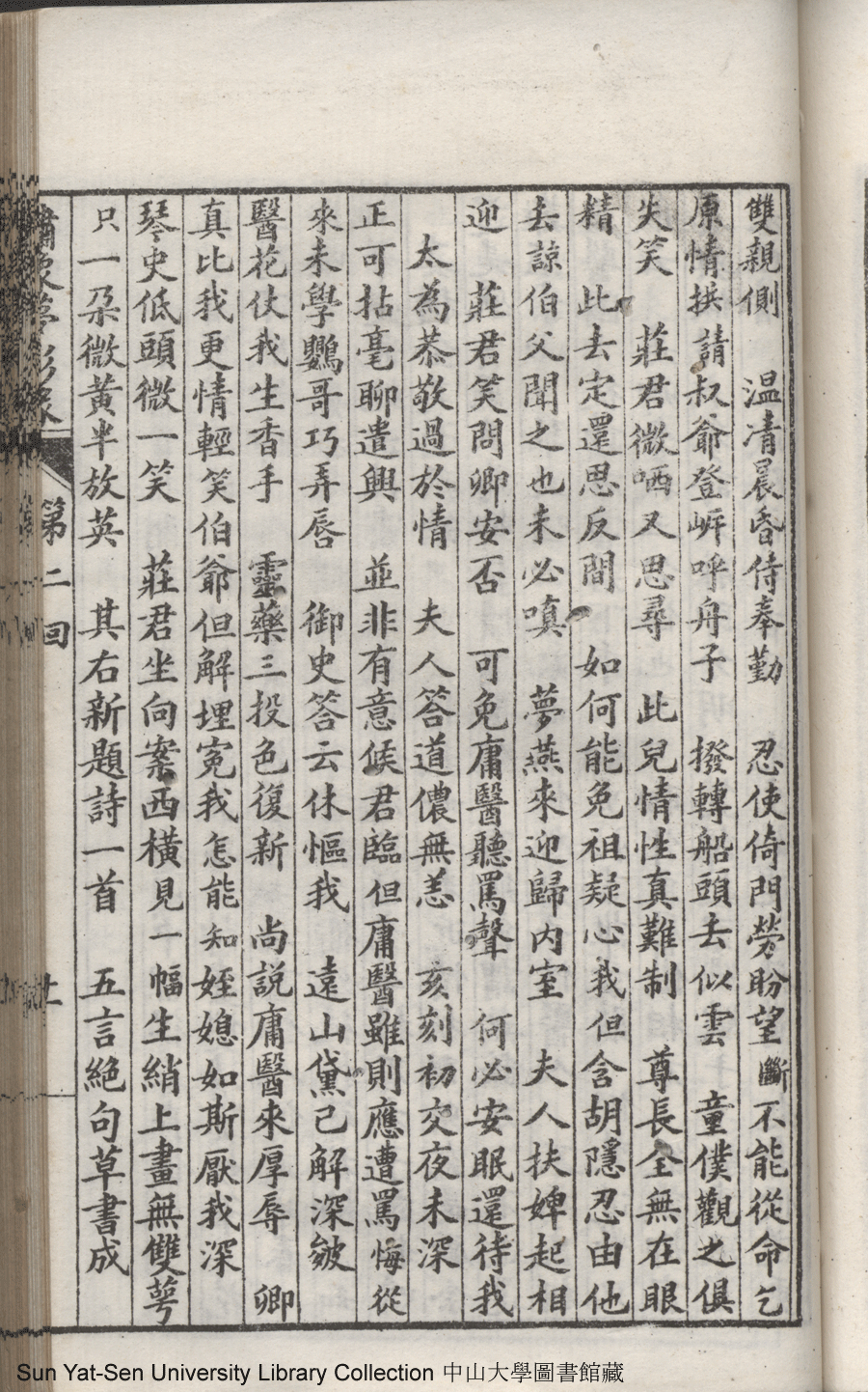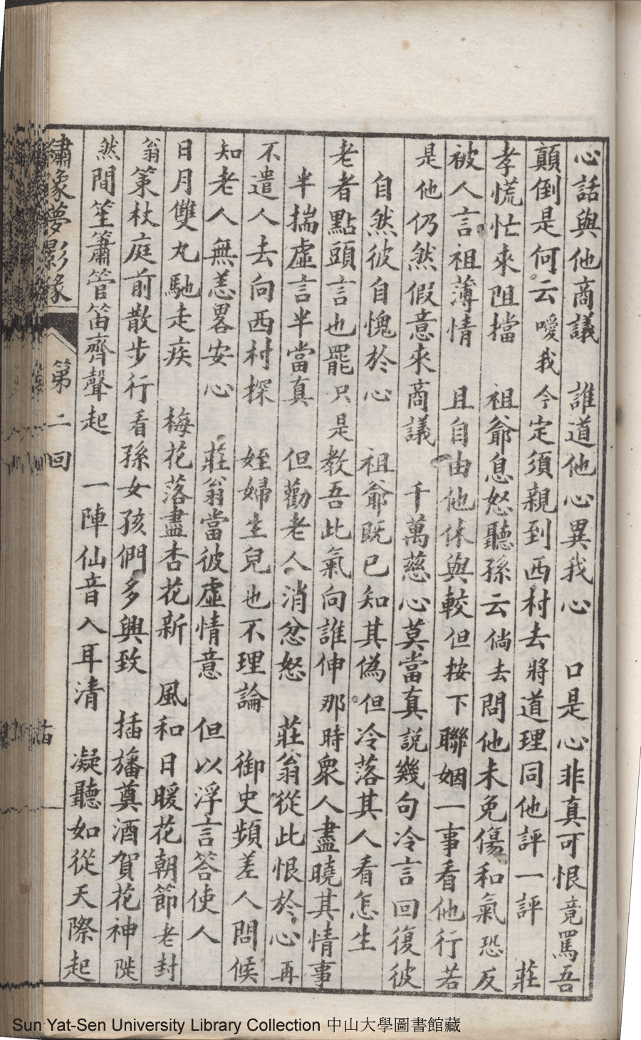 | 第二回 誕麒麟燕寢久凝香 鼓琴瑟蘭房同畫策 Di er hui Dan qi lin yan qin jiu ning xiang Gu qin se lan fang tong hua ce 文﹕彈詞 Wen: Tan ci 鄭貞華﹐號爨下生﹐字蕉卿﹐又名澹若 Zheng Zhenhua, hao: Cuanxiasheng, zi: Jiaoqing 繡像夢影緣:四十八回(清鄭貞華撰) Xiu xiang Meng ying yuan: si shi ba hui (by Zheng Zhenhua, Qing Dynasty) , pp. 第二回10a,第二回10b,第二回11a,第二回11b,第二回12a,第二回12b,第二回13a,第二回13b,第二回14a,第二回14b,第二回15a,第二回15b,第二回16a,第二回16b,第二回17a,第二回17b,第二回18a,第二回18b,第二回19a,第二回19b,第二回1a,第二回1b,第二回20a,第二回20b,第二回21a,第二回21b,第二回22a,第二回22b,第二回2a,第二回2b,第二回3a,第二回3b,第二回4a,第二回4b,第二回5a,第二回5b,第二回6a,第二回6b,第二回7a,第二回7b,第二回8a,第二回8b,第二回9a,第二回9b. |