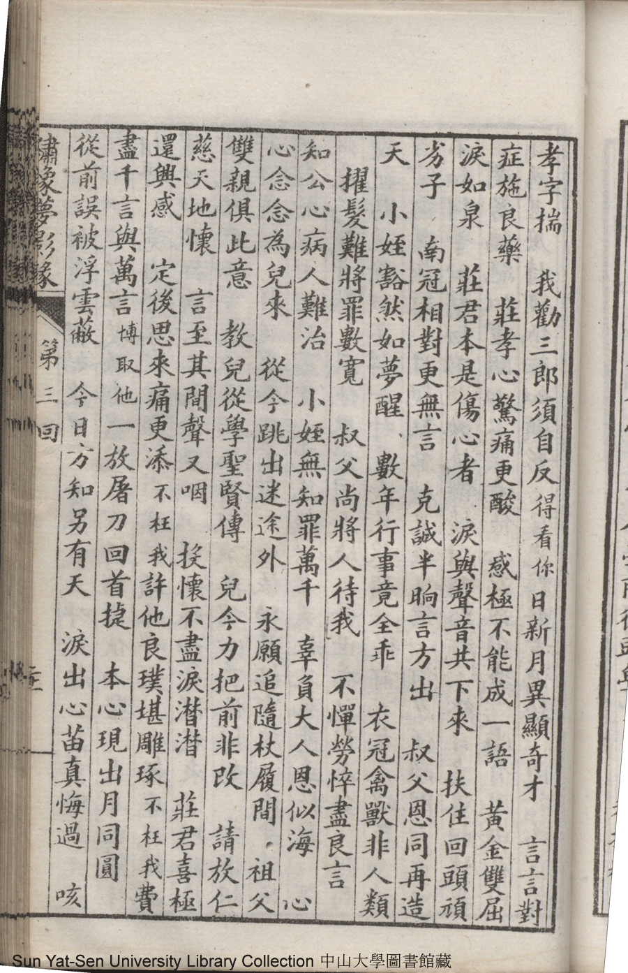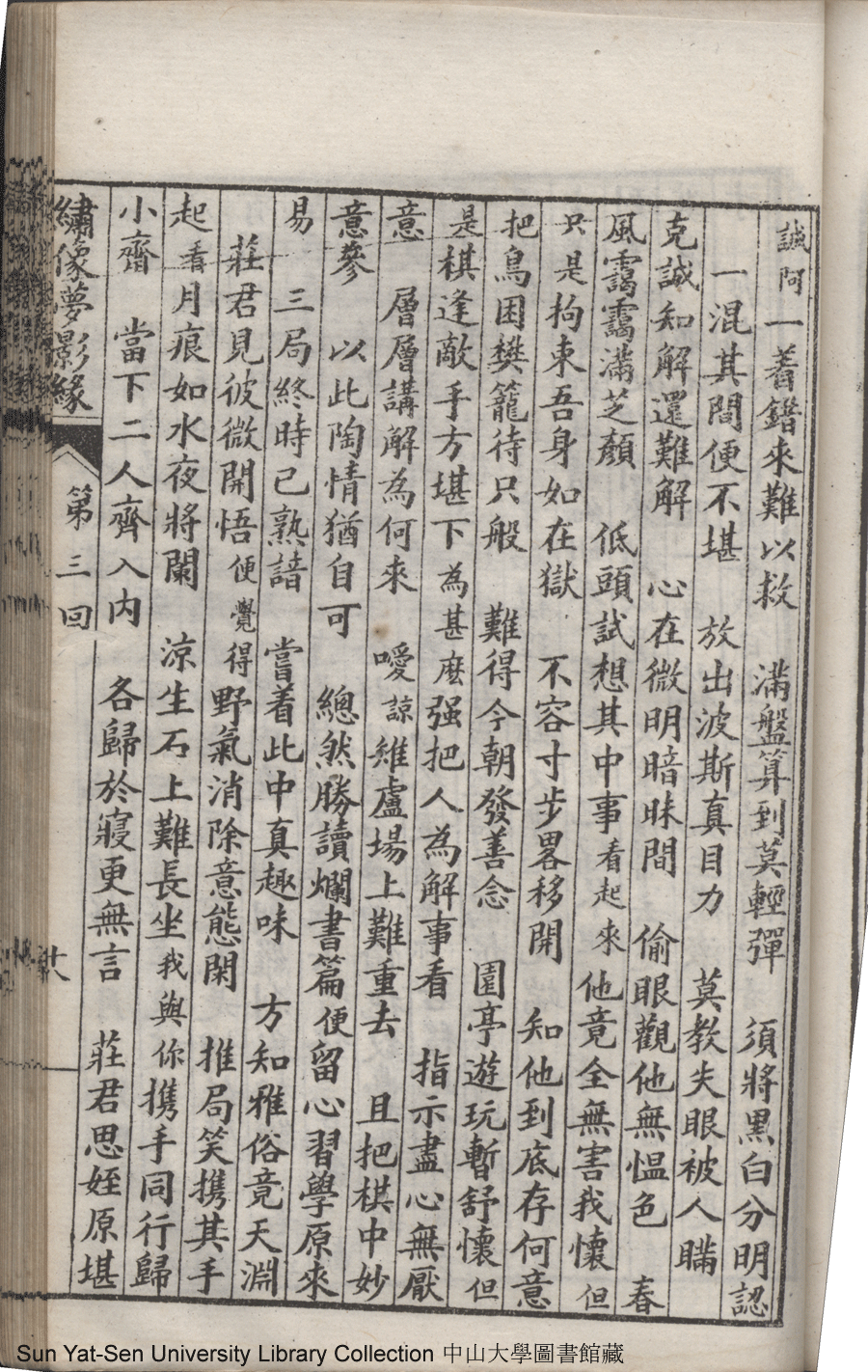 | 第三回 詠絮娘牙慧流芬拈花示旨 投簪客心機織錦雕琢成璋 Di san hui Yong xu niang ya hui liu fen nian hua shi zhi Tou zan ke xin ji zhi jin diao zhuo cheng zhang 文﹕彈詞 Wen: Tan ci 鄭貞華﹐號爨下生﹐字蕉卿﹐又名澹若 Zheng Zhenhua, hao: Cuanxiasheng, zi: Jiaoqing 繡像夢影緣:四十八回(清鄭貞華撰) Xiu xiang Meng ying yuan: si shi ba hui (by Zheng Zhenhua, Qing Dynasty) , pp. 第三回10a,第三回10b,第三回11a,第三回11b,第三回12a,第三回12b,第三回13a,第三回13b,第三回14a,第三回14b,第三回15a,第三回15b,第三回16a,第三回16b,第三回17a,第三回17b,第三回18a,第三回18b,第三回19a,第三回19b,第三回1a,第三回1b,第三回20a,第三回20b,第三回21a,第三回21b,第三回22a,第三回22b,第三回2a,第三回2b,第三回3a,第三回3b,第三回4a,第三回4b,第三回5a,第三回5b,第三回6a,第三回6b,第三回7a,第三回7b,第三回8a,第三回8b,第三回9a,第三回9b. |