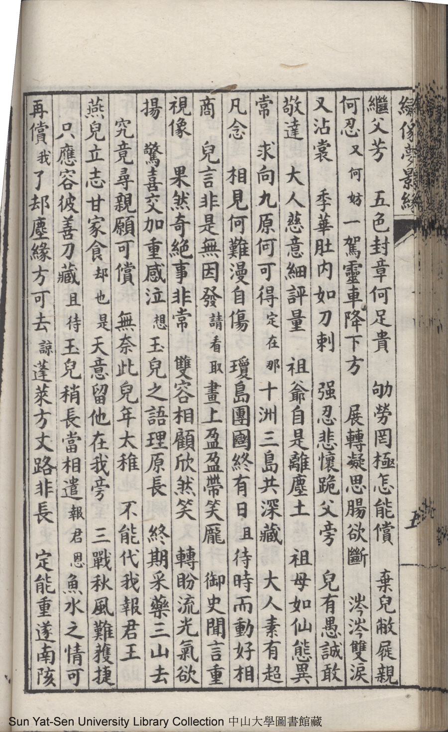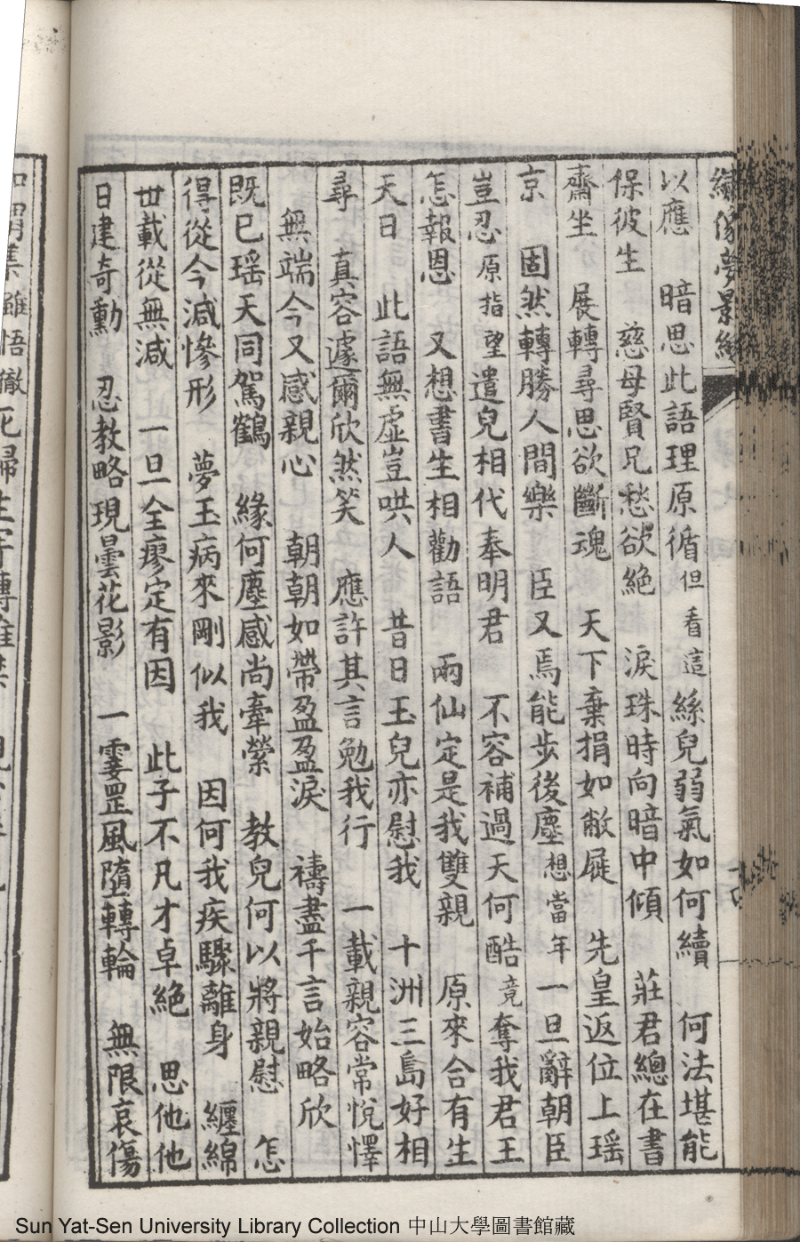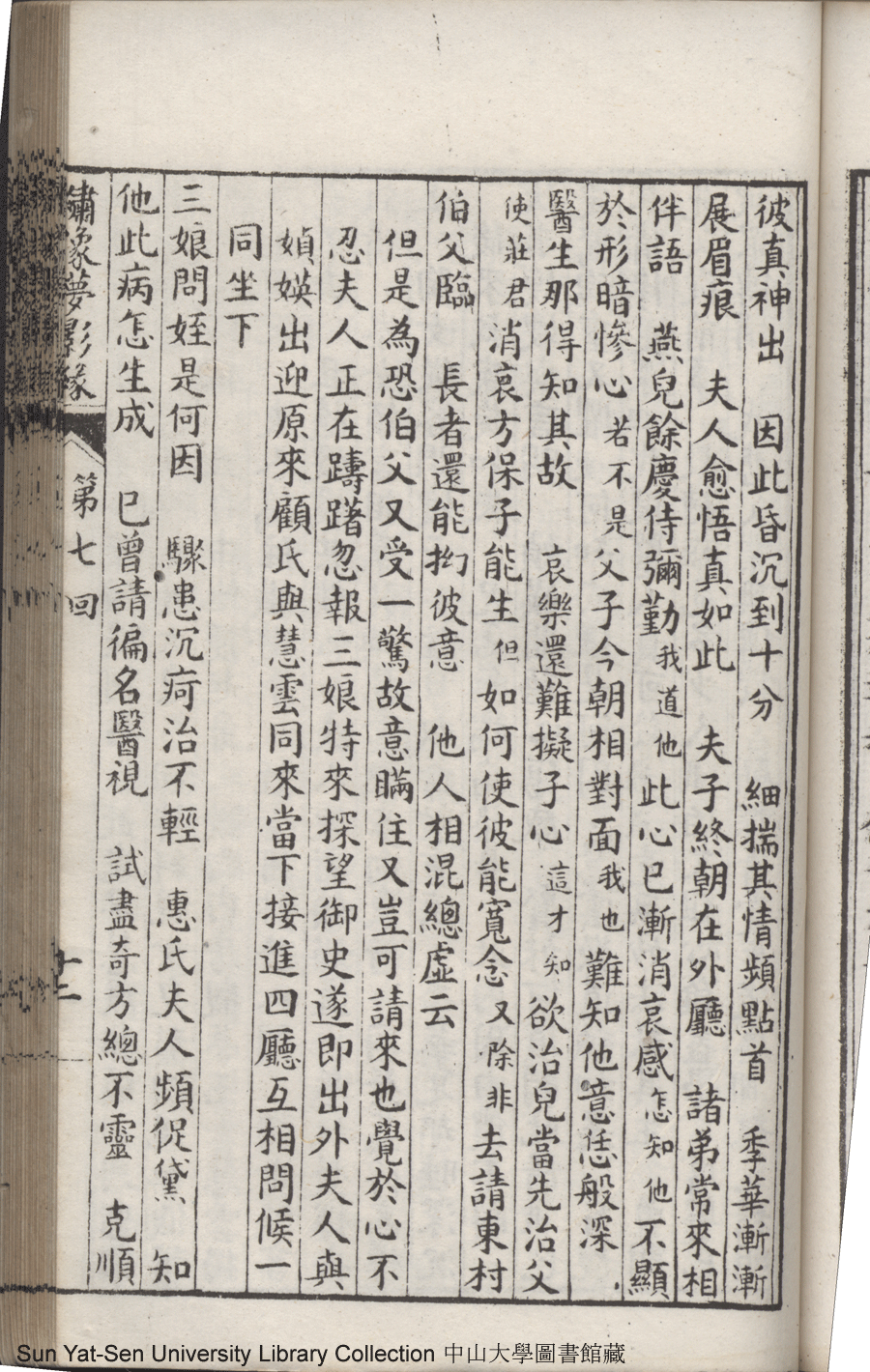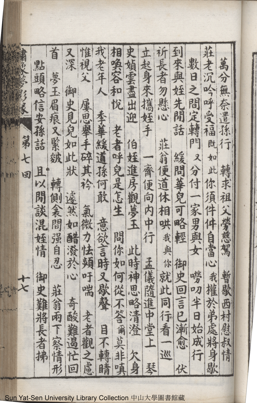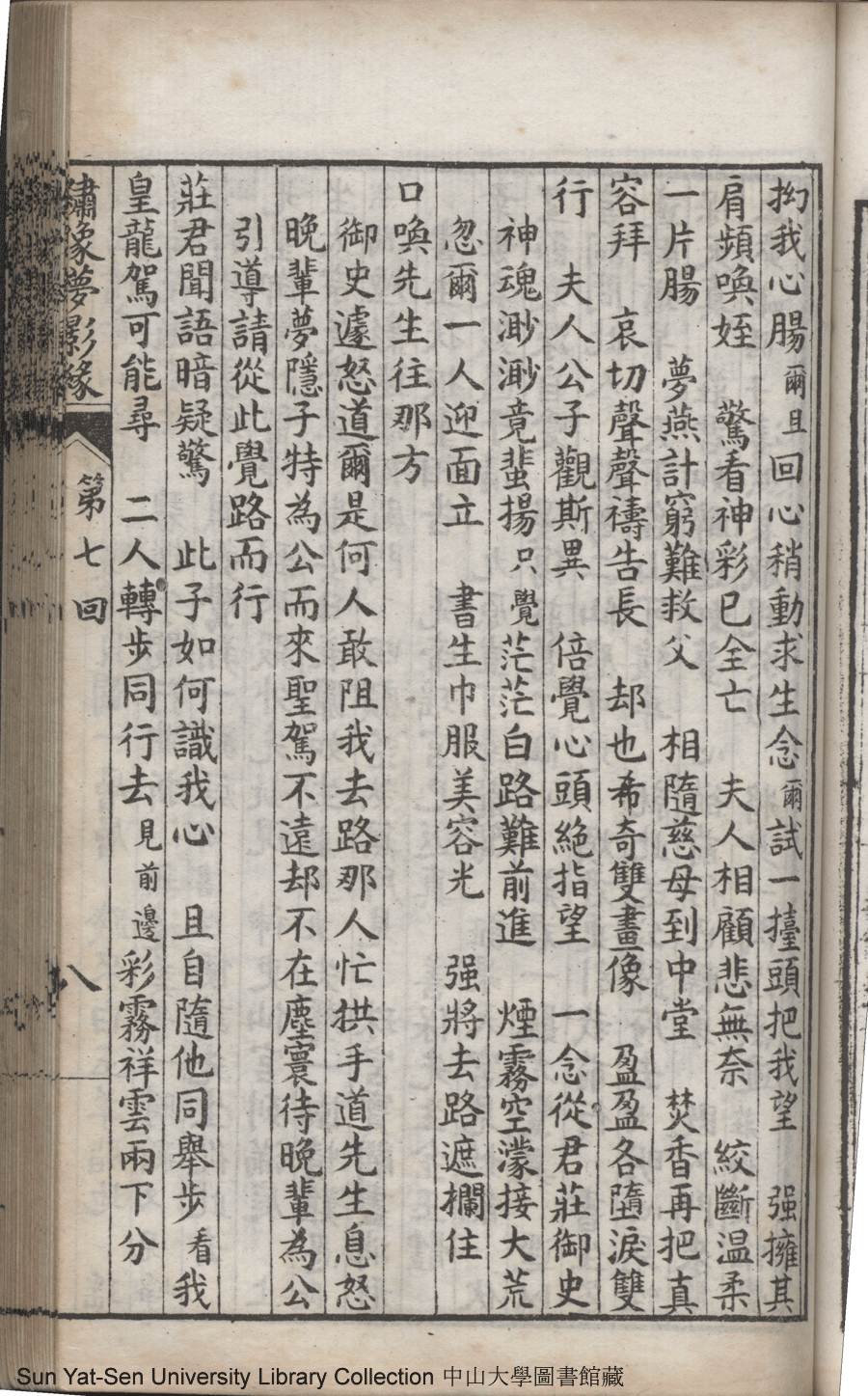 | 第七回 至情人殉主離魂悟到電光火石 夙慧子拯親移疾幾成幻影空花 Di qi hui Zhi qing ren xun zhu li hun wu dao dian guang huo shi Su hui zi zheng qin yi ji ji cheng huan ying kong hua 文﹕彈詞 Wen: Tan ci 鄭貞華﹐號爨下生﹐字蕉卿﹐又名澹若 Zheng Zhenhua, hao: Cuanxiasheng, zi: Jiaoqing 繡像夢影緣:四十八回(清鄭貞華撰) Xiu xiang Meng ying yuan: si shi ba hui (by Zheng Zhenhua, Qing Dynasty) , pp. 第七回10a,第七回10b,第七回11a,第七回11b,第七回12a,第七回12b,第七回13a,第七回13b,第七回14a,第七回14b,第七回15a,第七回15b,第七回16a,第七回16b,第七回17a,第七回17b,第七回1a,第七回1b,第七回2a,第七回2b,第七回3a,第七回3b,第七回4a,第七回4b,第七回5a,第七回5b,第七回6a,第七回6b,第七回7a,第七回7b,第七回8a,第七回8b,第七回9a,第七回9b. |