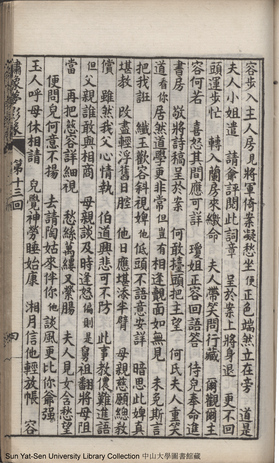 | 第十三回 探勝搜奇永慕子痴心尋幻境 移情換緒再生人妙手弄仙音 Di shi san hui Tan sheng sou qi Yongmuzi chi xin xun huan jing Yi qing huan xu zai sheng ren miao shou nong xian yin 文﹕彈詞 Wen: Tan ci 鄭貞華﹐號爨下生﹐字蕉卿﹐又名澹若 Zheng Zhenhua, hao: Cuanxiasheng, zi: Jiaoqing 繡像夢影緣:四十八回(清鄭貞華撰) Xiu xiang Meng ying yuan: si shi ba hui (by Zheng Zhenhua, Qing Dynasty) , pp. 第十三回10a,第十三回10b,第十三回11a,第十三回11b,第十三回12a,第十三回12b,第十三回13a,第十三回13b,第十三回1a,第十三回1b,第十三回2a,第十三回2b,第十三回3a,第十三回3b,第十三回4a,第十三回4b,第十三回5a,第十三回5b,第十三回6a,第十三回6b,第十三回7a,第十三回7b,第十三回8a,第十三回8b,第十三回9a,第十三回9b. |