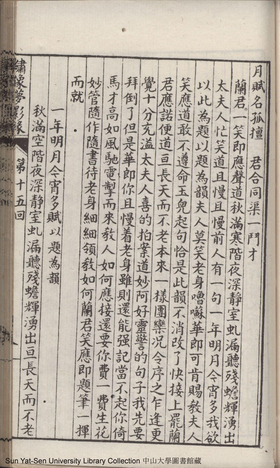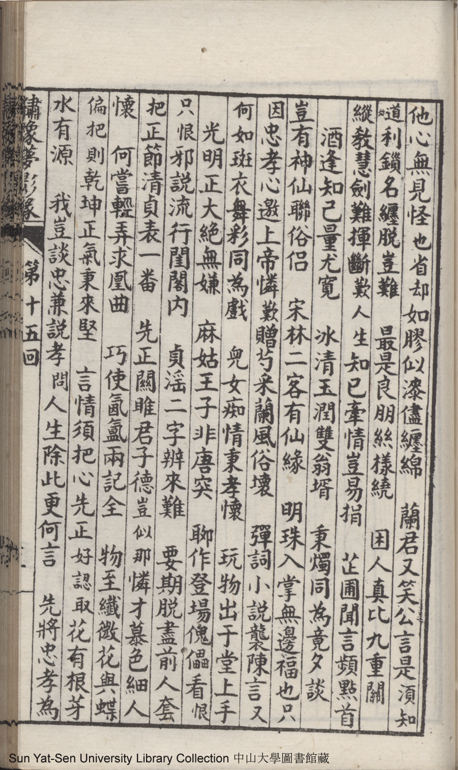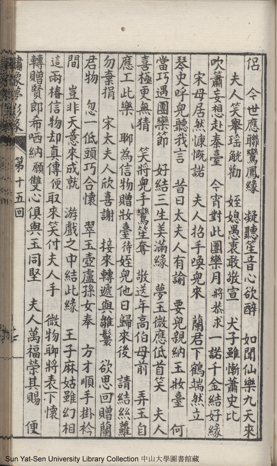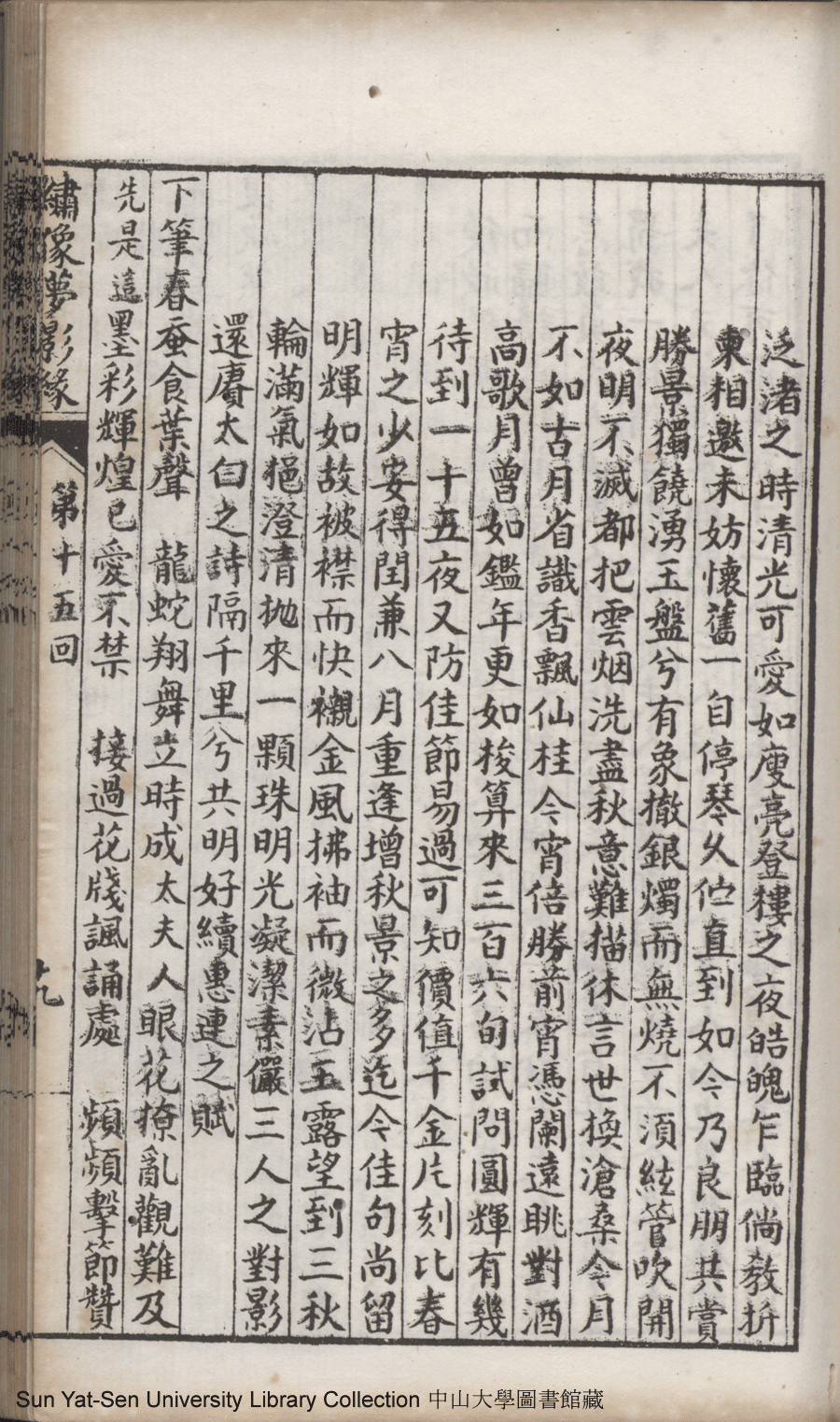 | 第十五回 參商憐兩友矢孤貞却有深情 遊戲訪雙仙藉微物巧成嘉禮 Di shi wu hui Shen shang lian liang you shi gu zhen que you shen qing You xi fang shuang xian jie wei wu qiao cheng jia li 文﹕彈詞 Wen: Tan ci 鄭貞華﹐號爨下生﹐字蕉卿﹐又名澹若 Zheng Zhenhua, hao: Cuanxiasheng, zi: Jiaoqing 繡像夢影緣:四十八回(清鄭貞華撰) Xiu xiang Meng ying yuan: si shi ba hui (by Zheng Zhenhua, Qing Dynasty) , pp. 第十五回10a,第十五回10b,第十五回11a,第十五回11b,第十五回12a,第十五回12b,第十五回13a,第十五回13b,第十五回14a,第十五回14b,第十五回15a,第十五回15b,第十五回16a,第十五回16b,第十五回17a,第十五回17b,第十五回18a,第十五回18b,第十五回19a,第十五回19b,第十五回1a,第十五回1b,第十五回20a,第十五回20b,第十五回21a,第十五回21b,第十五回22a,第十五回22b,第十五回2a,第十五回2b,第十五回3a,第十五回3b,第十五回4a,第十五回4b,第十五回5a,第十五回5b,第十五回6a,第十五回6b,第十五回7a,第十五回7b,第十五回8a,第十五回8b,第十五回9a,第十五回9b. |