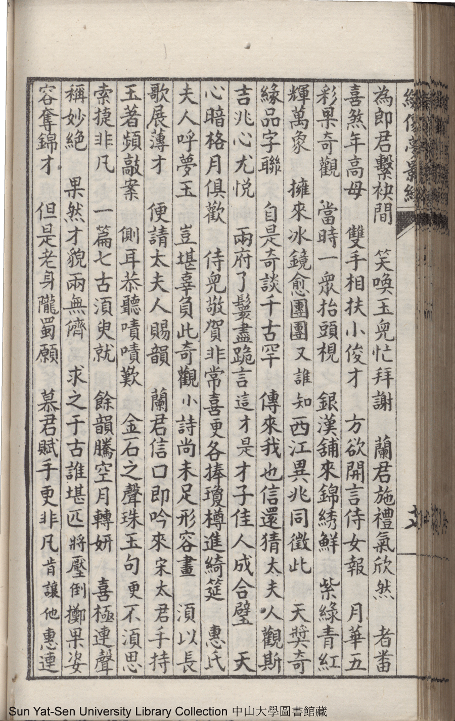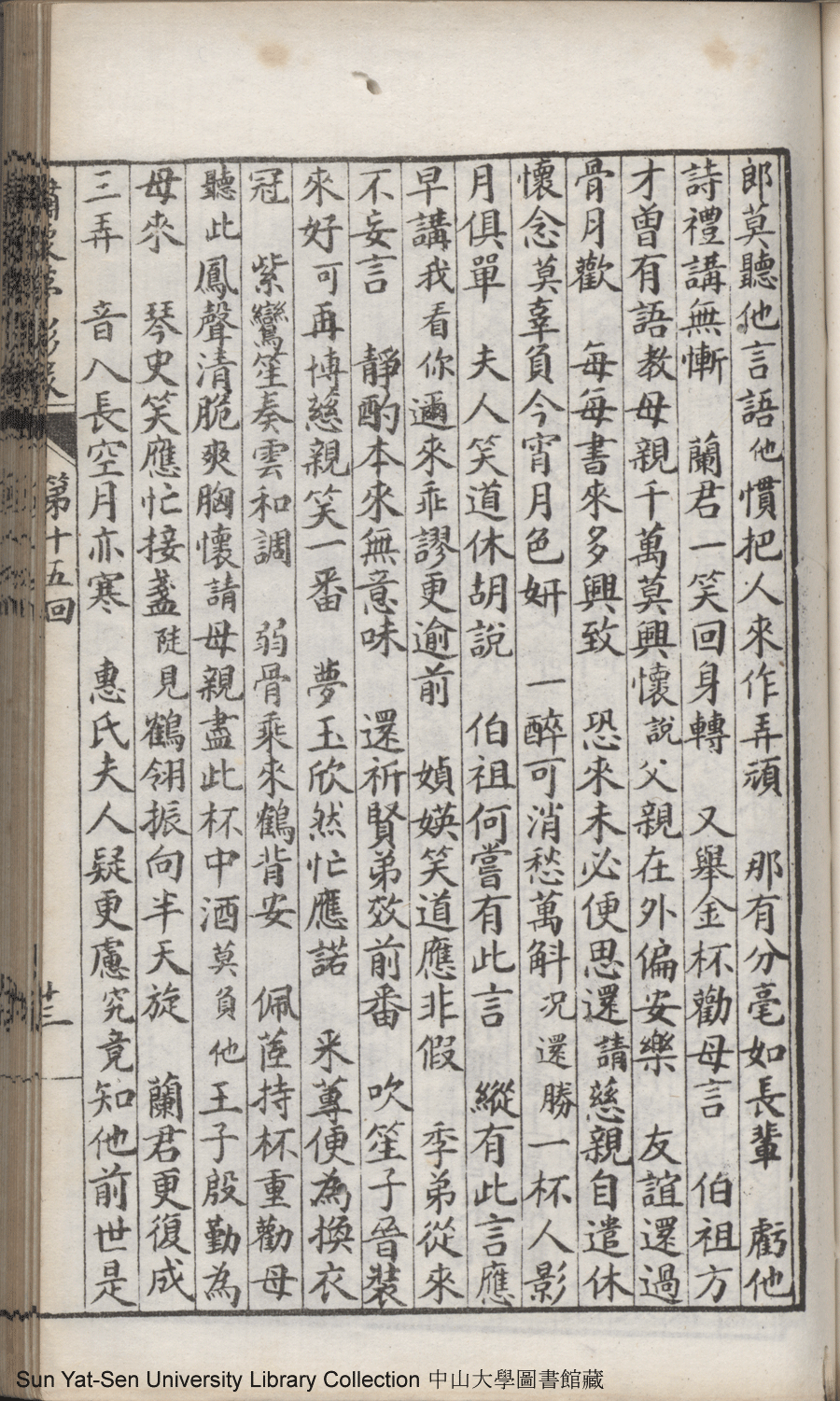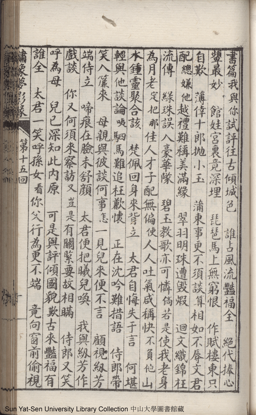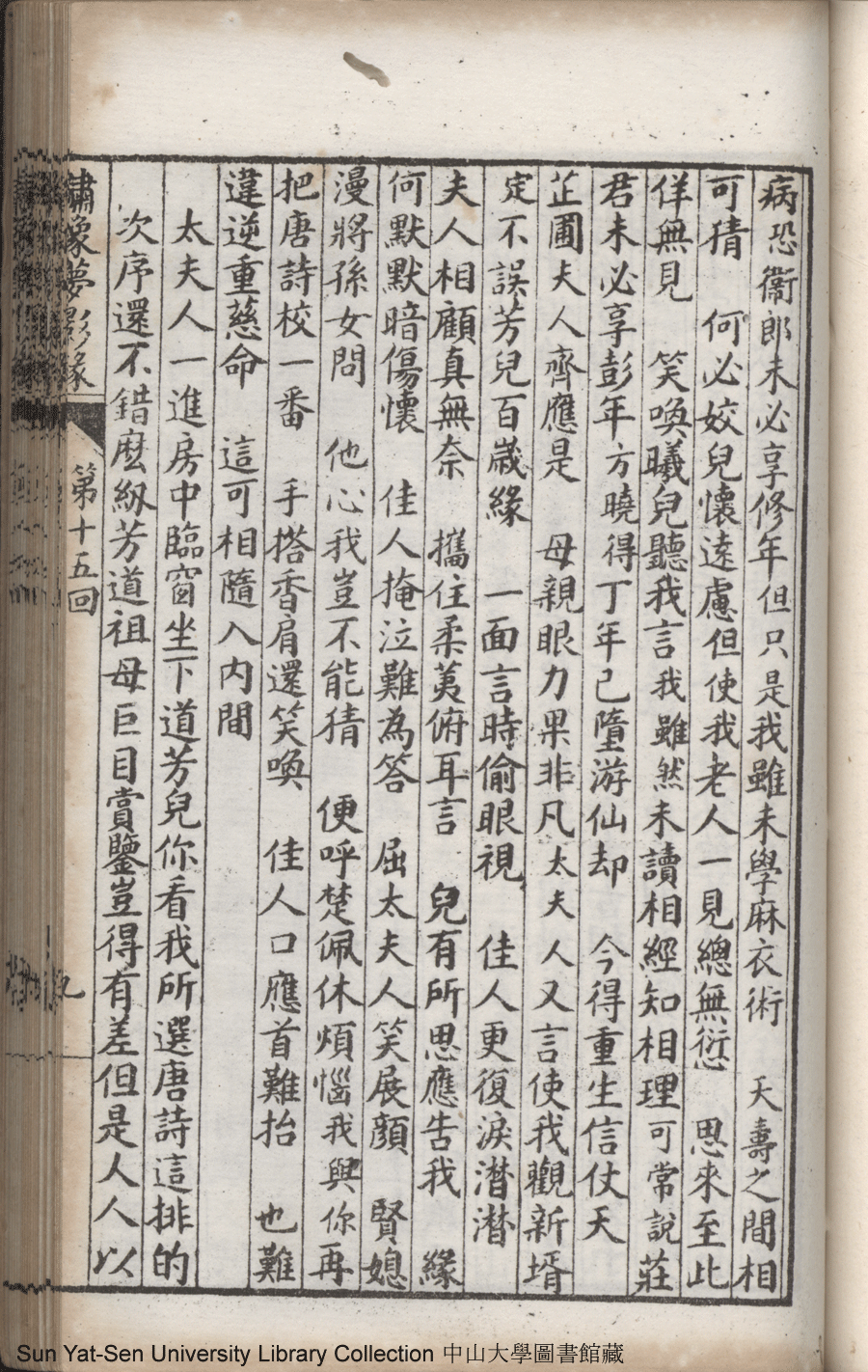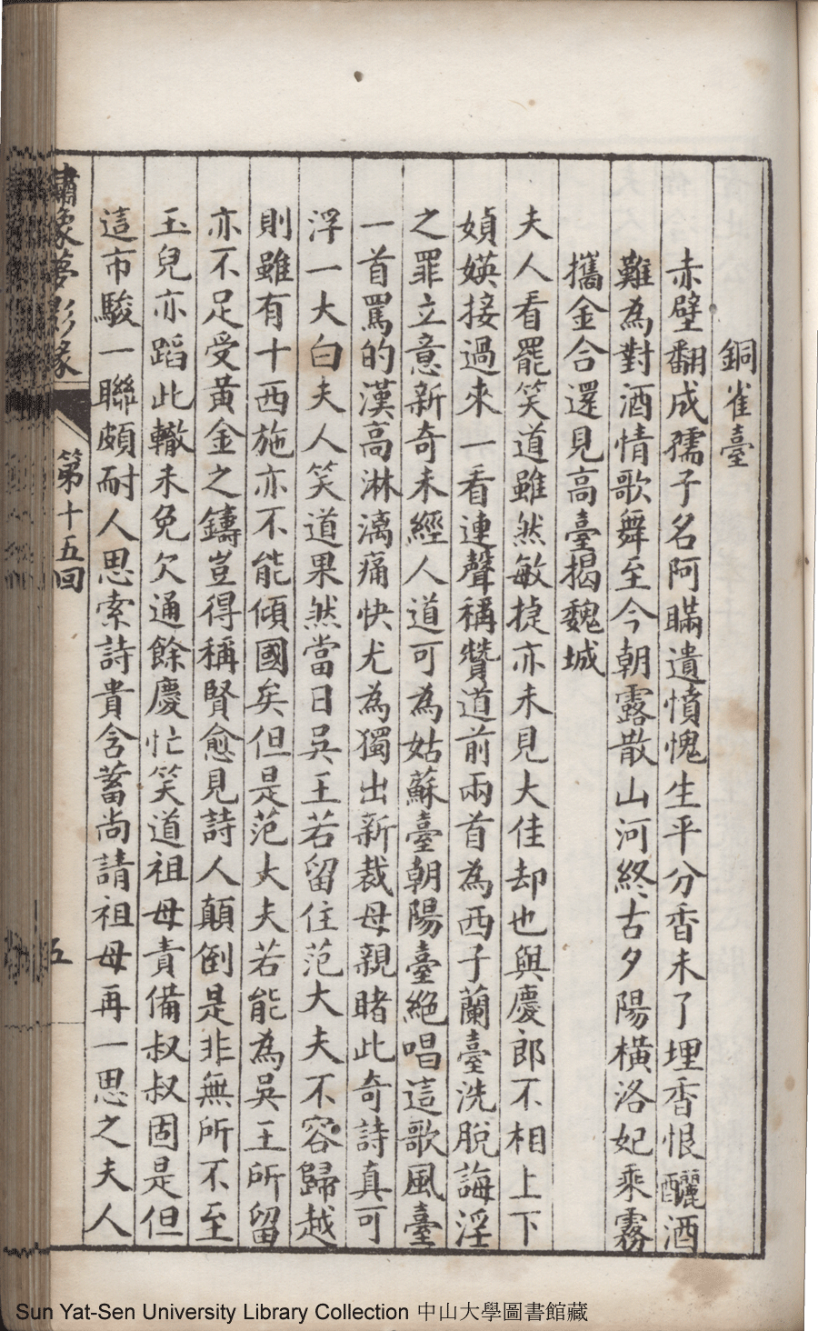 | 第十五回 參商憐兩友矢孤貞却有深情 遊戲訪雙仙藉微物巧成嘉禮 Di shi wu hui Shen shang lian liang you shi gu zhen que you shen qing You xi fang shuang xian jie wei wu qiao cheng jia li 文﹕彈詞 Wen: Tan ci 鄭貞華﹐號爨下生﹐字蕉卿﹐又名澹若 Zheng Zhenhua, hao: Cuanxiasheng, zi: Jiaoqing 繡像夢影緣:四十八回(清鄭貞華撰) Xiu xiang Meng ying yuan: si shi ba hui (by Zheng Zhenhua, Qing Dynasty) , pp. 第十五回10a,第十五回10b,第十五回11a,第十五回11b,第十五回12a,第十五回12b,第十五回13a,第十五回13b,第十五回14a,第十五回14b,第十五回15a,第十五回15b,第十五回16a,第十五回16b,第十五回17a,第十五回17b,第十五回18a,第十五回18b,第十五回19a,第十五回19b,第十五回1a,第十五回1b,第十五回20a,第十五回20b,第十五回21a,第十五回21b,第十五回22a,第十五回22b,第十五回2a,第十五回2b,第十五回3a,第十五回3b,第十五回4a,第十五回4b,第十五回5a,第十五回5b,第十五回6a,第十五回6b,第十五回7a,第十五回7b,第十五回8a,第十五回8b,第十五回9a,第十五回9b. |