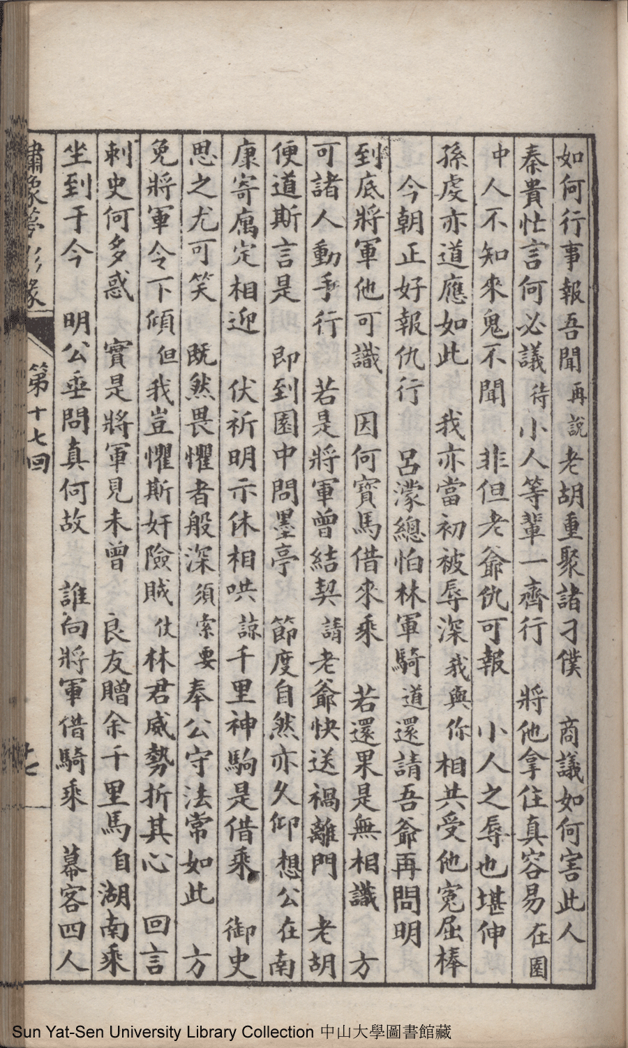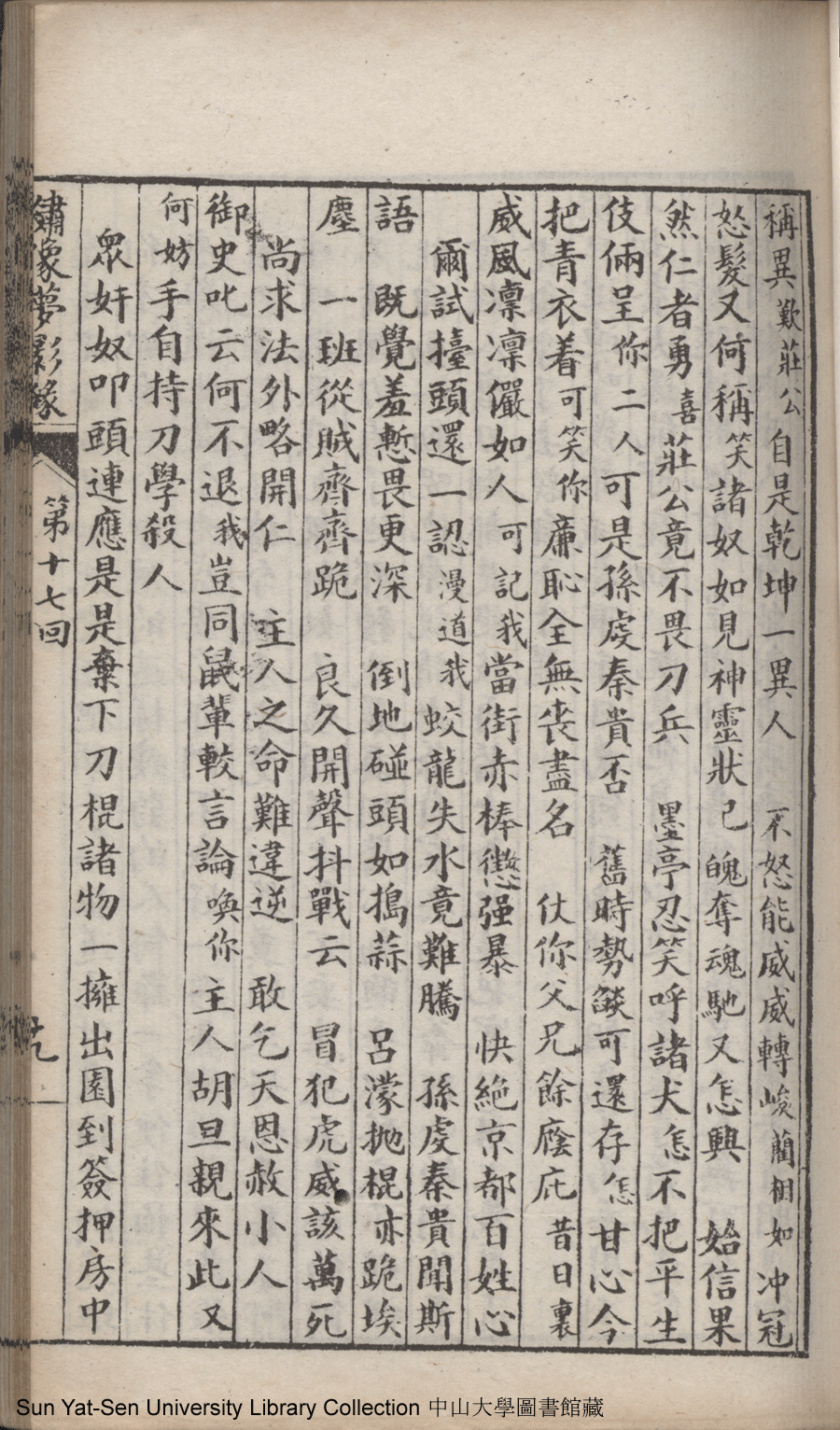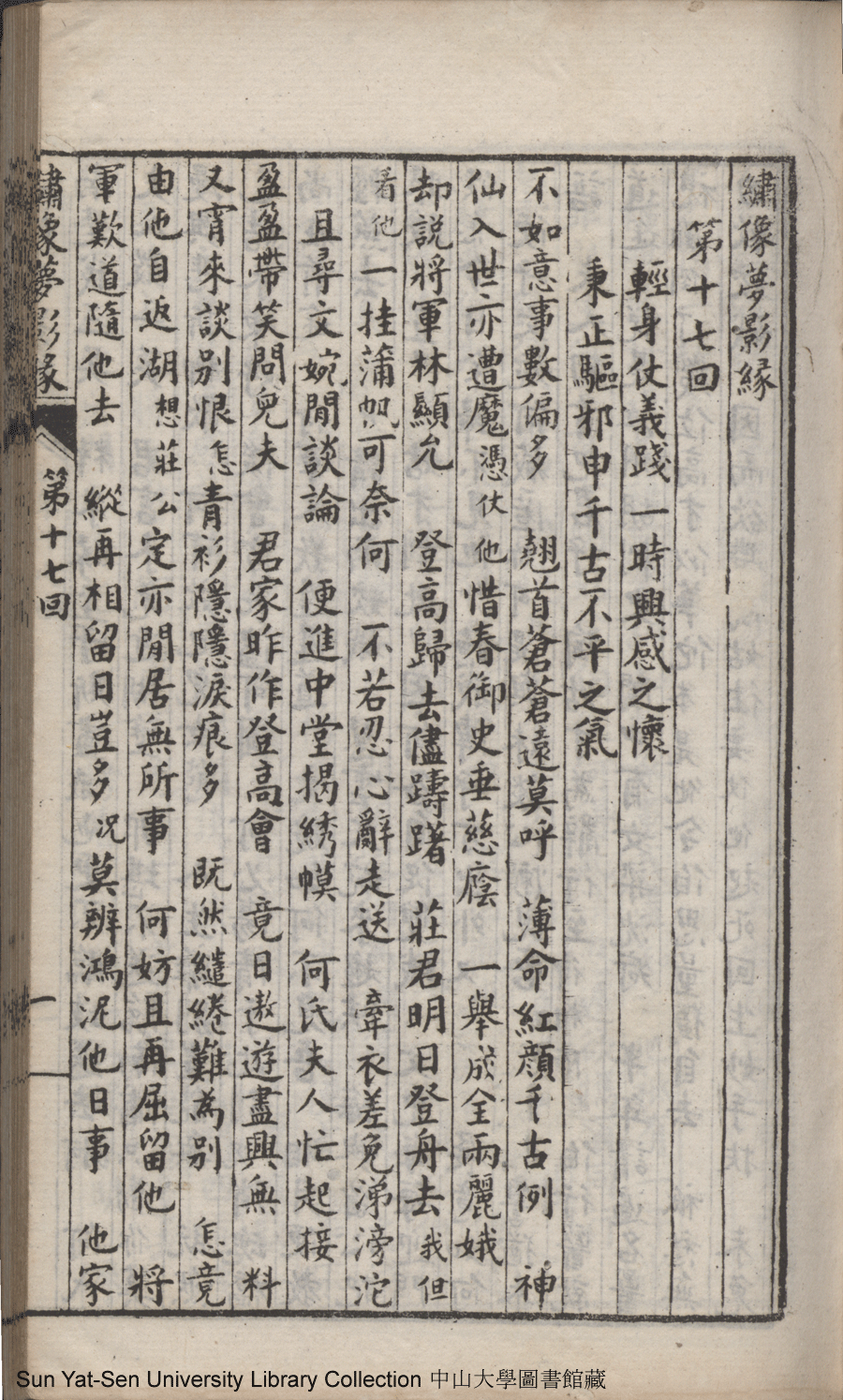 | 第十七回 輕身仗義踐一時興感之懷 秉正驅邪申千古不平之氣 Di shi qi hui Qing shen zhang yi jian yi shi xing gan zhi huai Bing zheng qu xie shen qian gu bu ping zhi qi 文﹕彈詞 Wen: Tan ci 鄭貞華﹐號爨下生﹐字蕉卿﹐又名澹若 Zheng Zhenhua, hao: Cuanxiasheng, zi: Jiaoqing 繡像夢影緣:四十八回(清鄭貞華撰) Xiu xiang Meng ying yuan: si shi ba hui (by Zheng Zhenhua, Qing Dynasty) , pp. 第十七回10a,第十七回10b,第十七回11a,第十七回11b,第十七回12a,第十七回12b,第十七回13a,第十七回13b,第十七回14a,第十七回14b,第十七回15a,第十七回15b,第十七回16a,第十七回16b,第十七回17a,第十七回17b,第十七回18a,第十七回18b,第十七回19a,第十七回19b,第十七回1a,第十七回1b,第十七回20a,第十七回20b,第十七回2a,第十七回2b,第十七回3a,第十七回3b,第十七回4a,第十七回4b,第十七回5a,第十七回5b,第十七回6a,第十七回6b,第十七回7a,第十七回7b,第十七回8a,第十七回8b,第十七回9a,第十七回9b. |