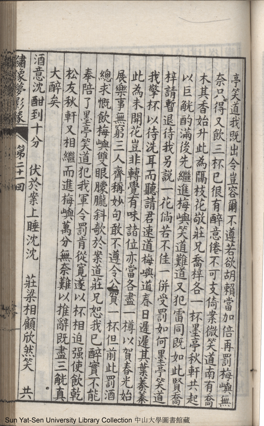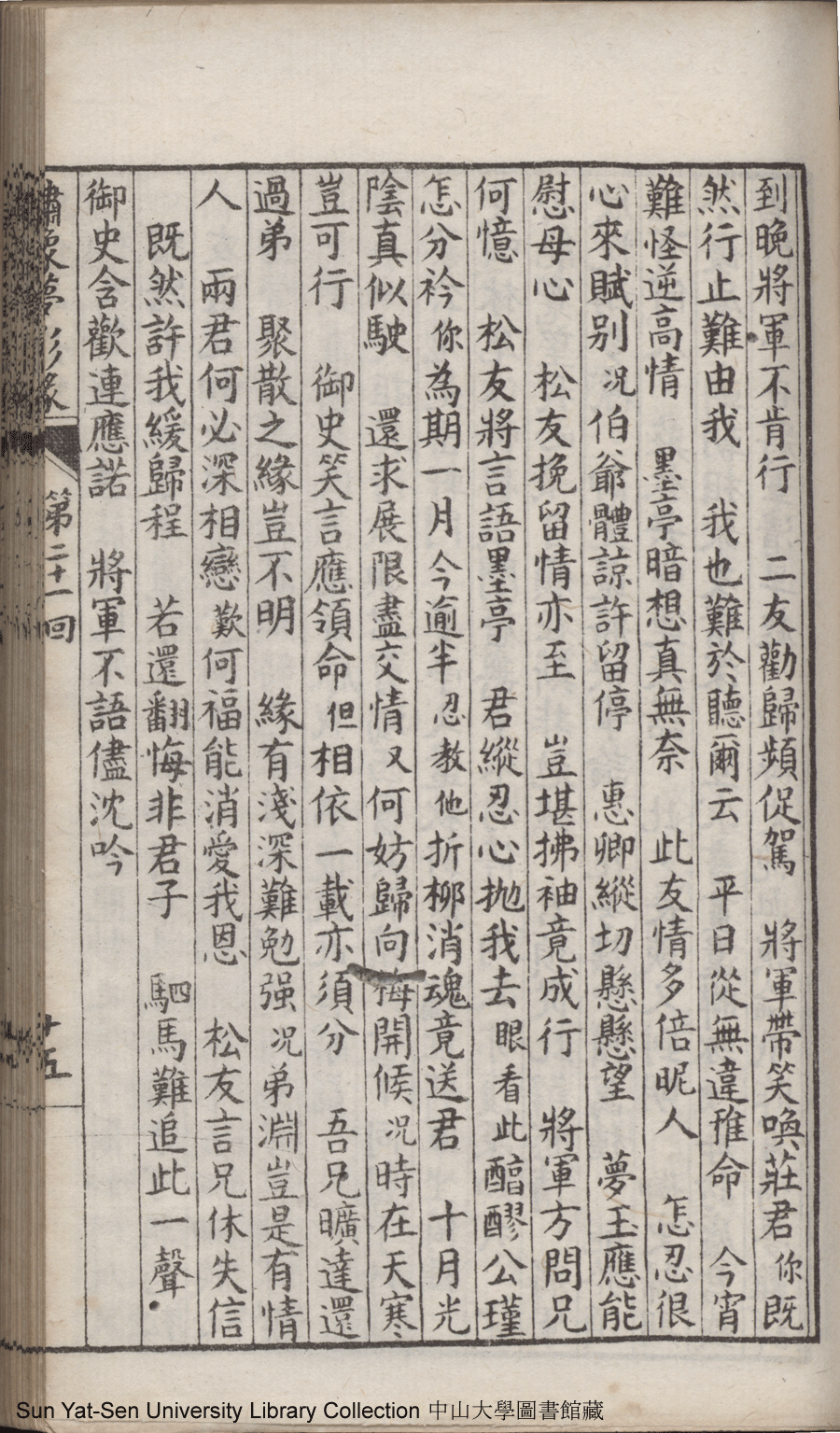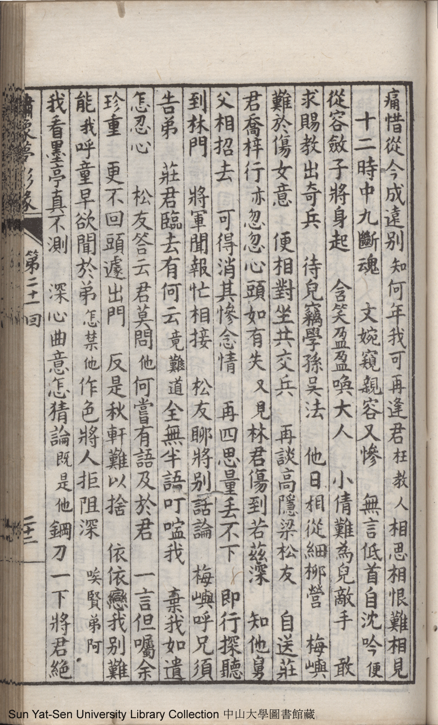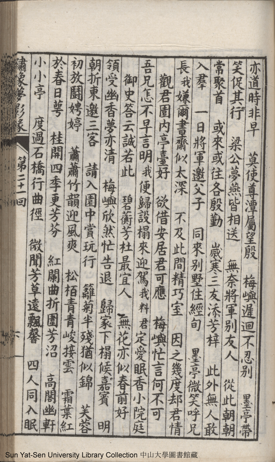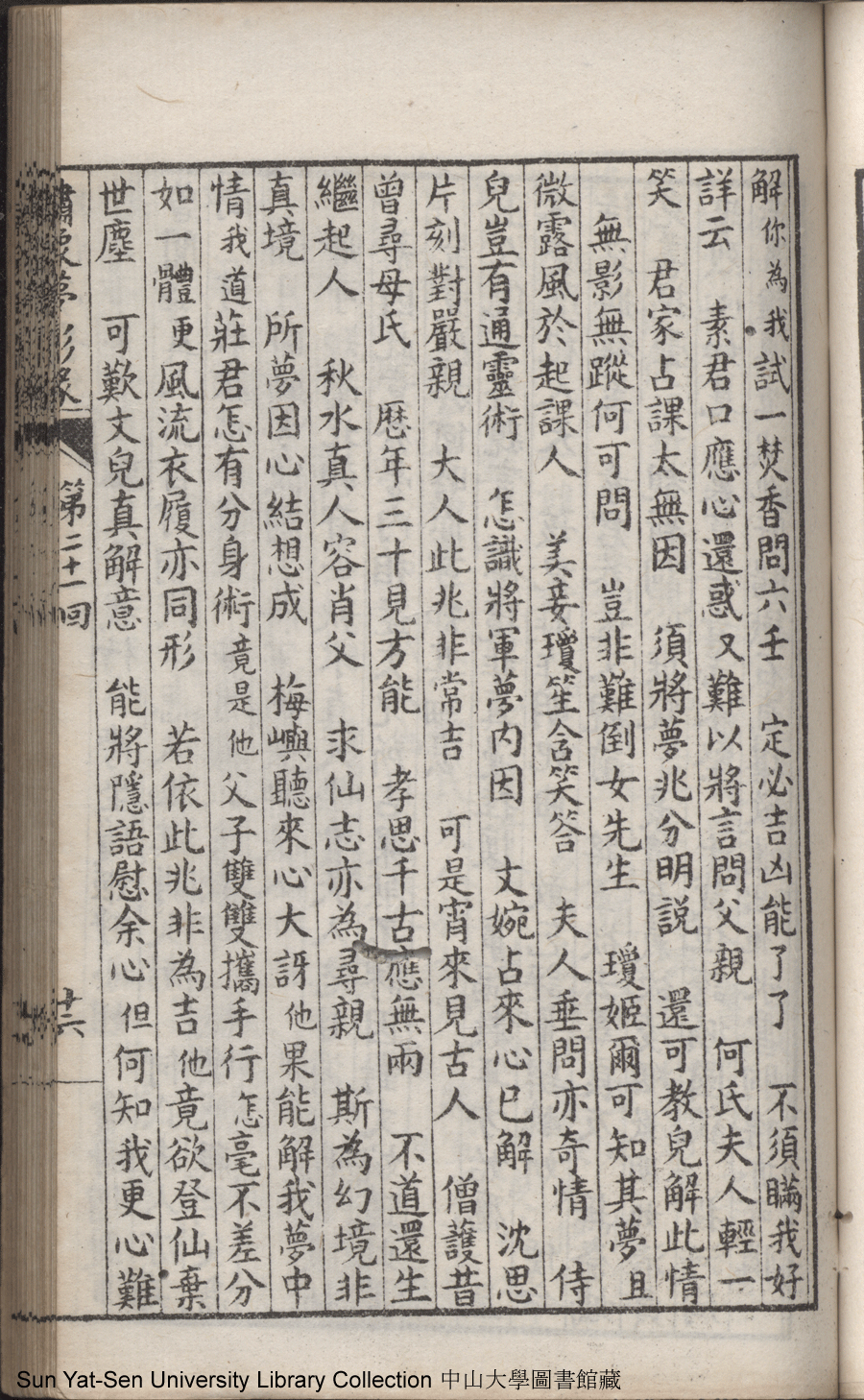| 第二十一回 杯酒交歡流水桃花互賺多情劉阮 片帆歸速浮雲楊柳思深高誼陳雷 Di er shi yi hui Bei jiu jiao huan liu shui tao hua hu zhuan duo qing Liu Ruan Pian fan gui su fu yun yang liu si shen gao yi Chen Lei 文﹕彈詞 Wen: Tan ci 鄭貞華﹐號爨下生﹐字蕉卿﹐又名澹若 Zheng Zhenhua, hao: Cuanxiasheng, zi: Jiaoqing 繡像夢影緣:四十八回(清鄭貞華撰) Xiu xiang Meng ying yuan: si shi ba hui (by Zheng Zhenhua, Qing Dynasty) , pp. 第二十一回10a,第二十一回10b,第二十一回11a,第二十一回11b,第二十一回12a,第二十一回12b,第二十一回13a,第二十一回13b,第二十一回14a,第二十一回14b,第二十一回15a,第二十一回15b,第二十一回16a,第二十一回16b,第二十一回17a,第二十一回17b,第二十一回18a,第二十一回18b,第二十一回19a,第二十一回19b,第二十一回1a,第二十一回1b,第二十一回20a,第二十一回20b,第二十一回21a,第二十一回21b,第二十一回22a,第二十一回22b,第二十一回23a,第二十一回23b,第二十一回2a,第二十一回2b,第二十一回3a,第二十一回3b,第二十一回4a,第二十一回4b,第二十一回5a,第二十一回5b,第二十一回6a,第二十一回6b,第二十一回7a,第二十一回7b,第二十一回8a,第二十一回8b,第二十一回9a,第二十一回9b. |